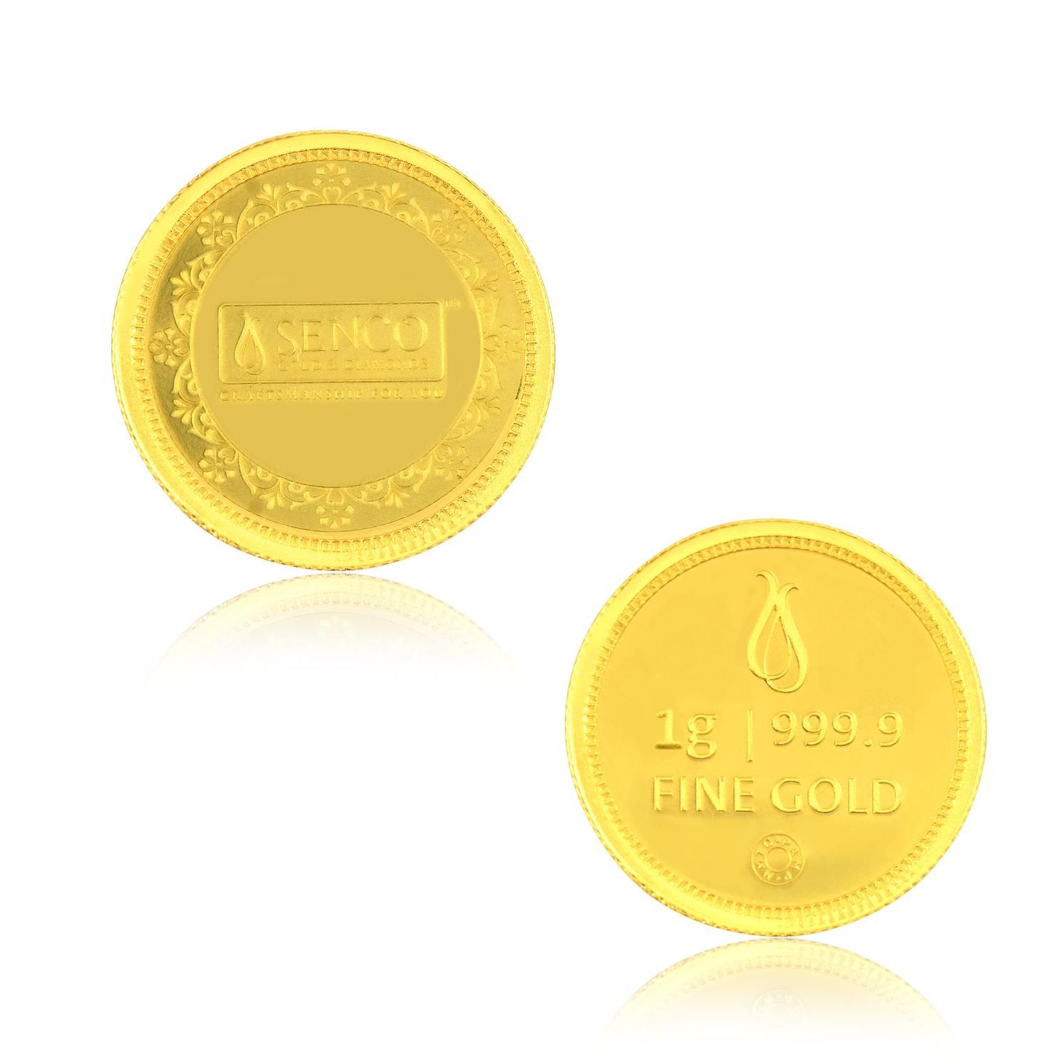 Fall in love with the sheen of this 24K gold coin, crafted with Senco's logo so you can have better peace of mind. Step into the world of numismatic elegance with this gold coin.