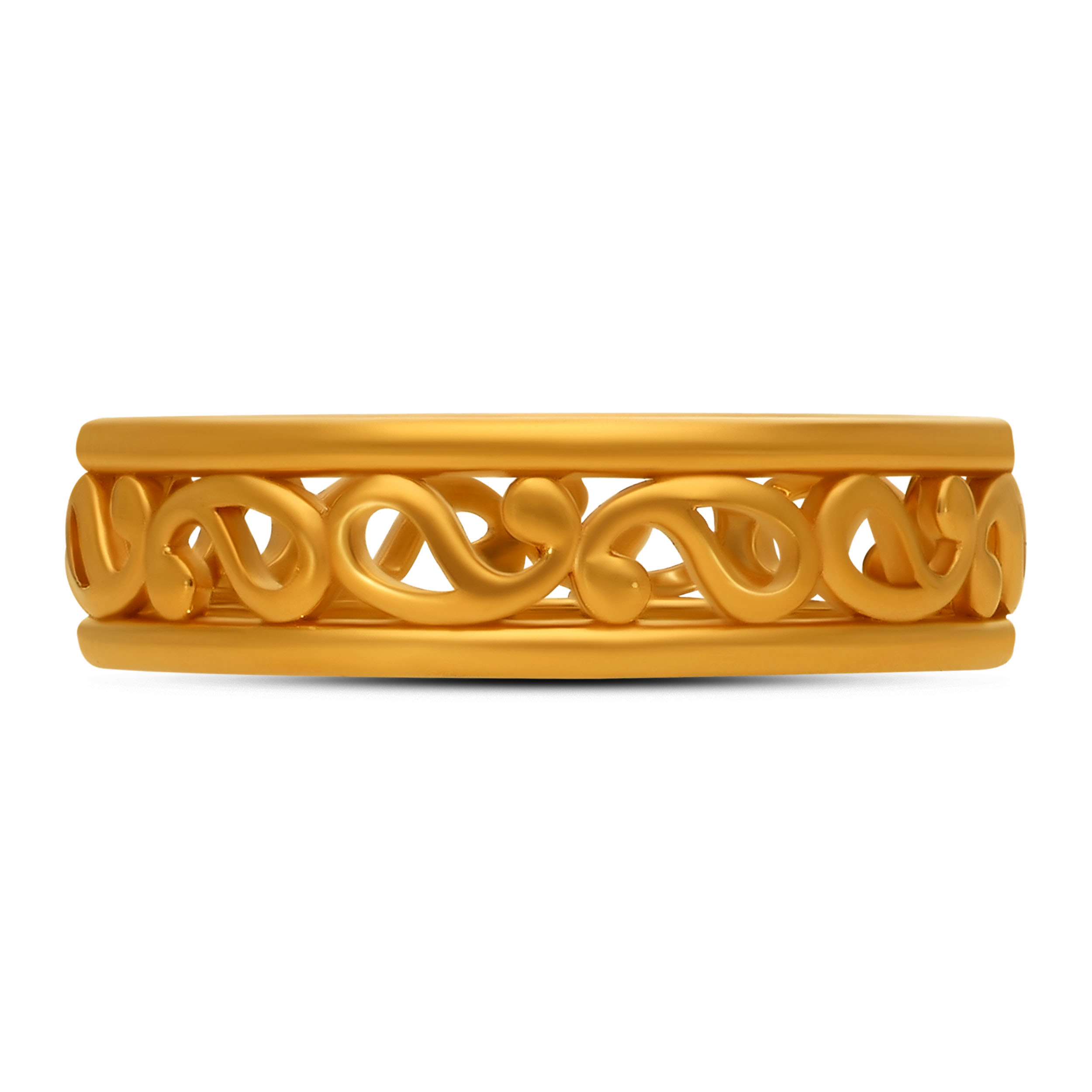 Fluid ornamental curves and an open design give this gold ring a light, airy feel with rich detailing. Elegant and breathable in form, it reflects understated class and sophistication.