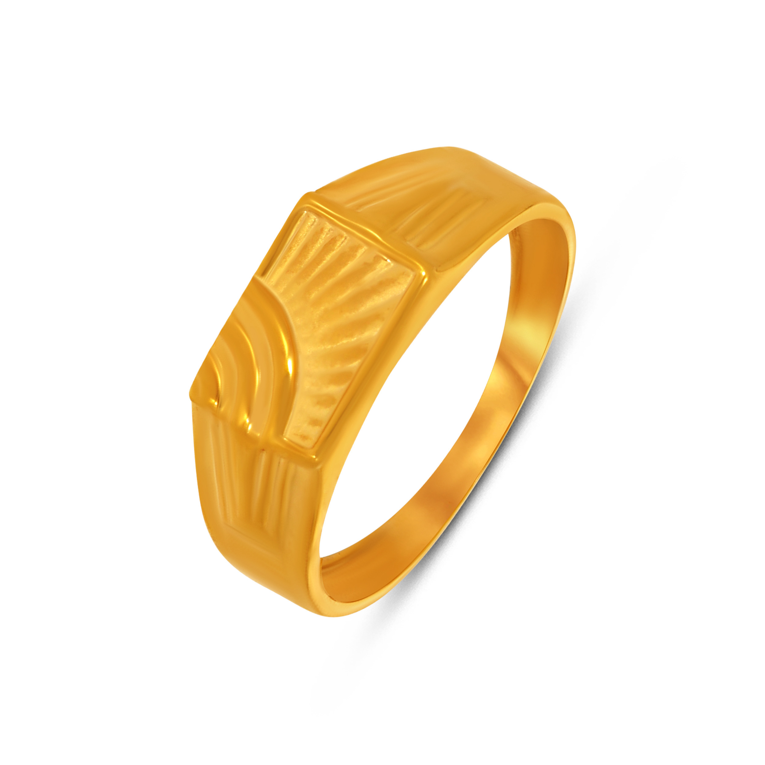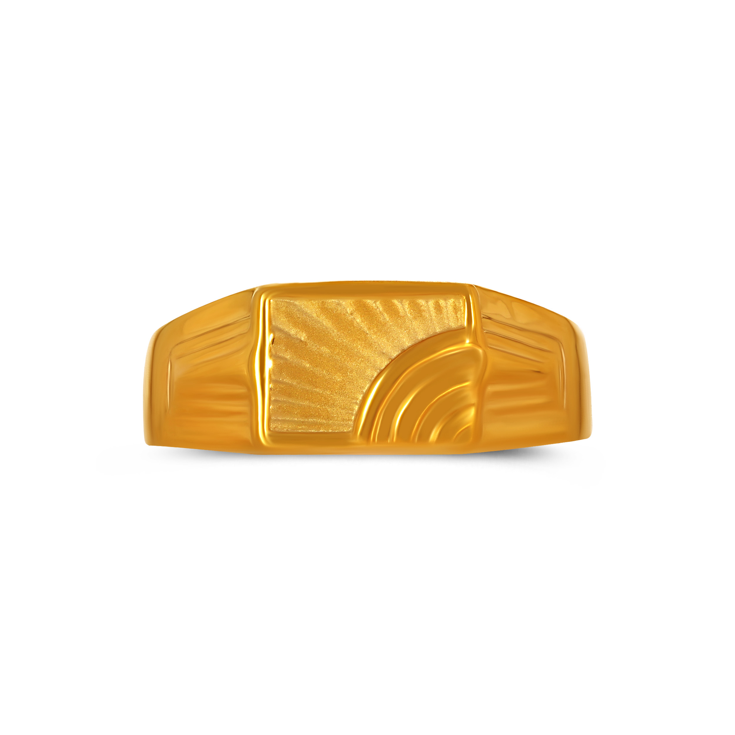 Made for the man who values defined craftsmanship, this ring pairs a bold arc engraving with a sturdy gold band. Its sculpted detailing offers a confident, grounded presence. A fitting companion for both workdays and important occasions. PLEASE NOTE:- The dimensions of the actual product might vary.