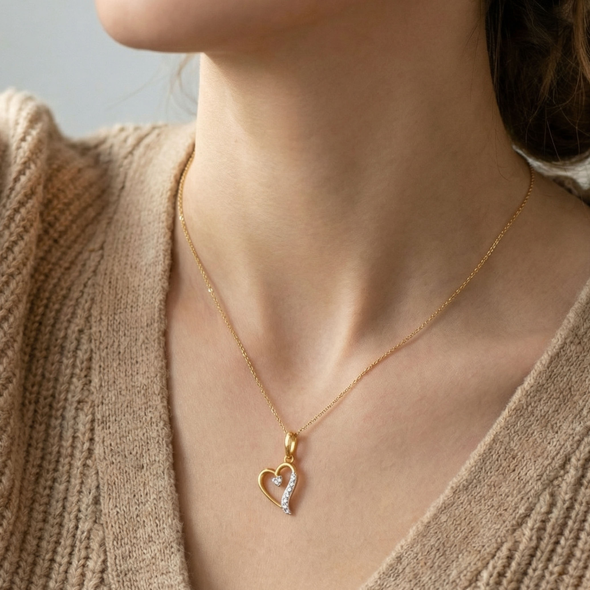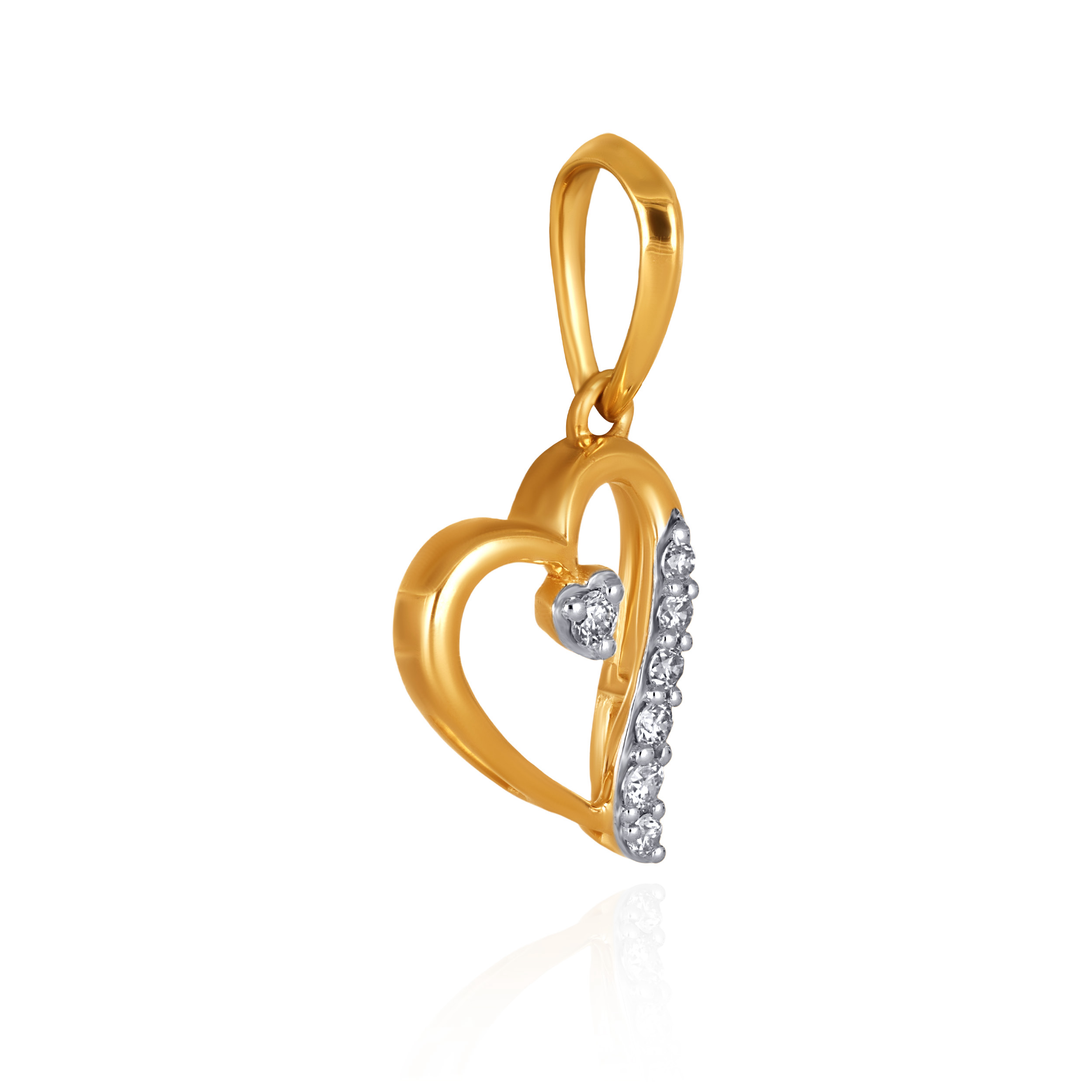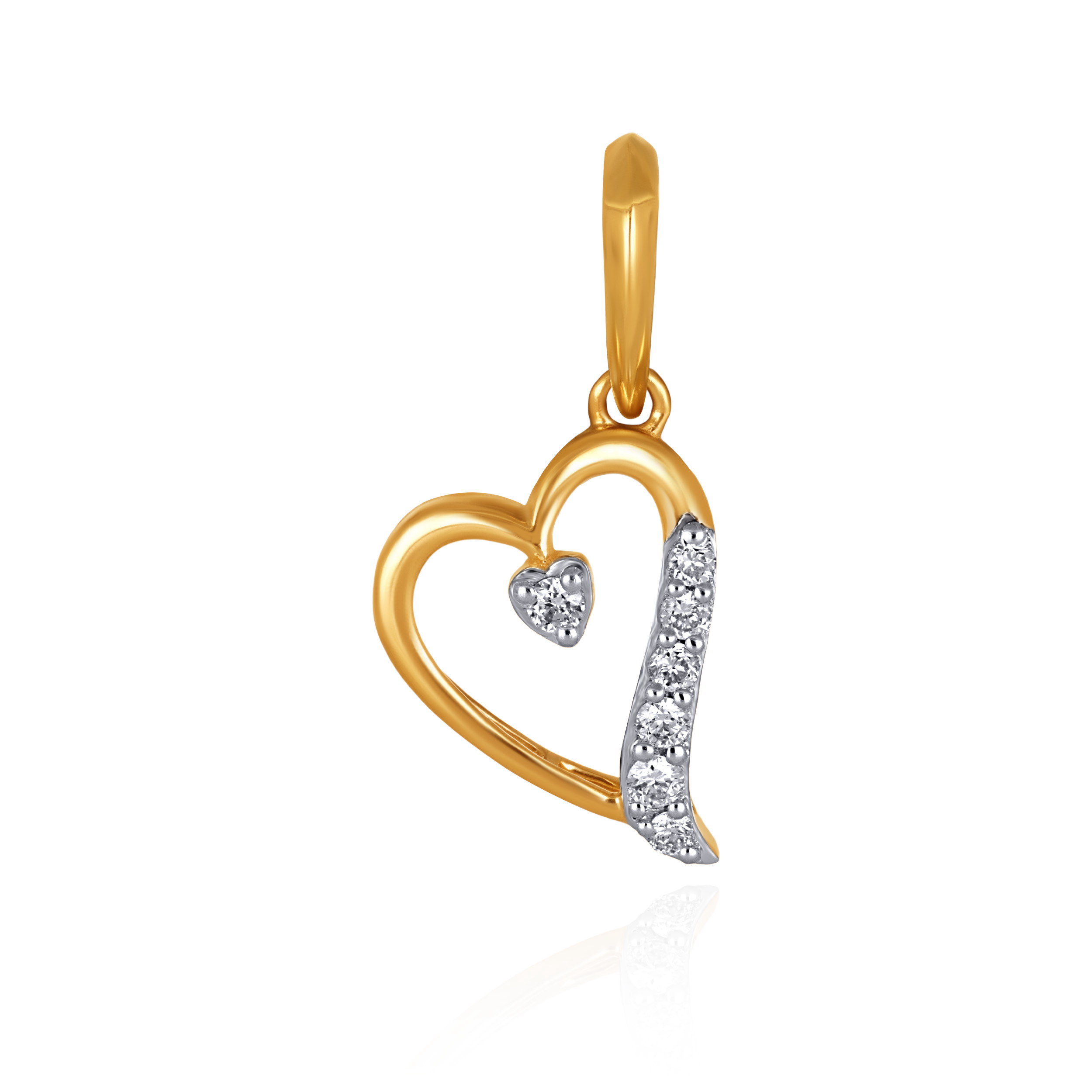 This diamond pendant lends a soft, expressive romanticism to modern dressing. Shaped in a fluid heart silhouette, it features a graceful open-gold frame highlighted by a contrasting arc of diamonds. A versatile essential that carries a quiet sentiment of love.