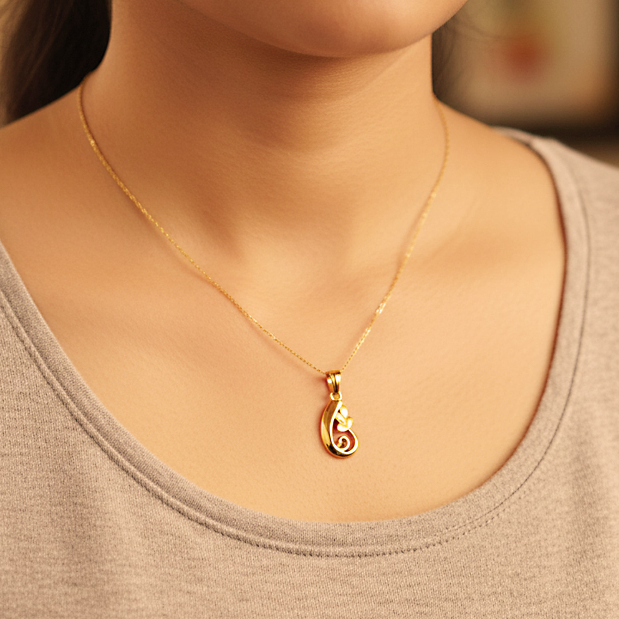 Add effortless elegance to your everyday look with this beautifully crafted gold pendant. Designed with a perfect balance of modern minimalism and classic charm, this piece features a fluid, teardrop-inspired silhouette that gracefully curves into a delicate swirl.