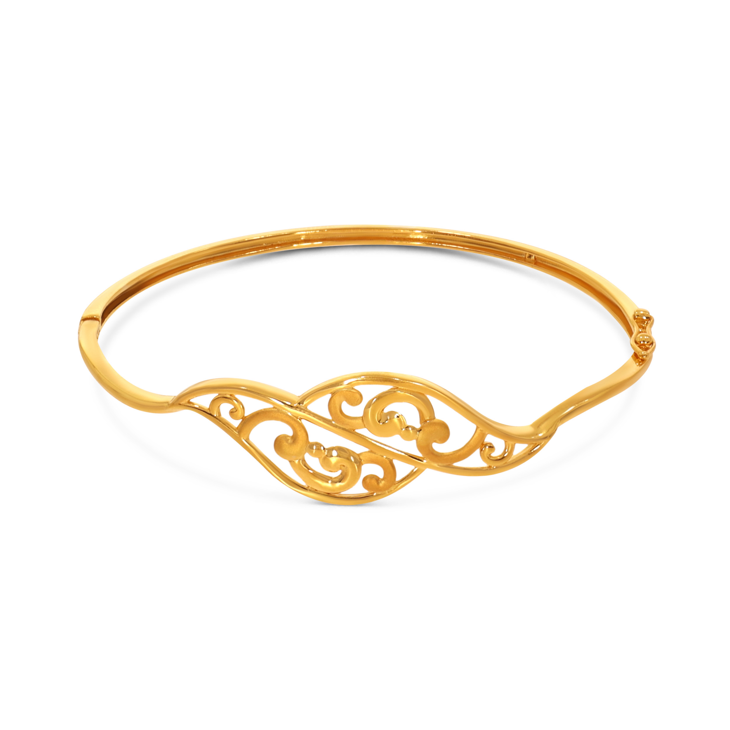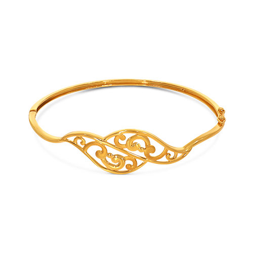 Capture the beauty of fluid movement with this elegantly crafted gold chur, defined by graceful curves and an airy open-work design. Lightweight yet expressive, it blends traditional artistry with a contemporary sensibility, perfect for both festive moments and refined everyday wear.