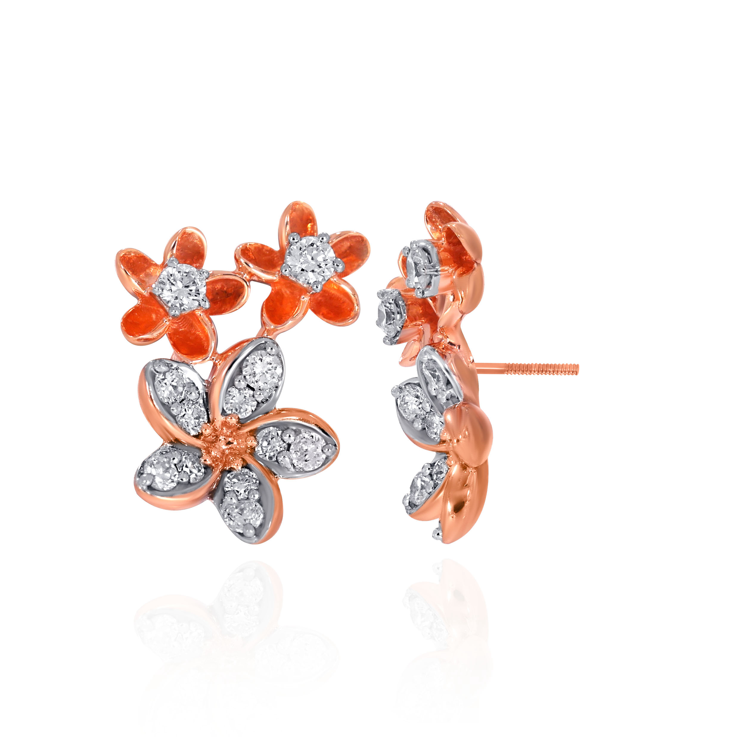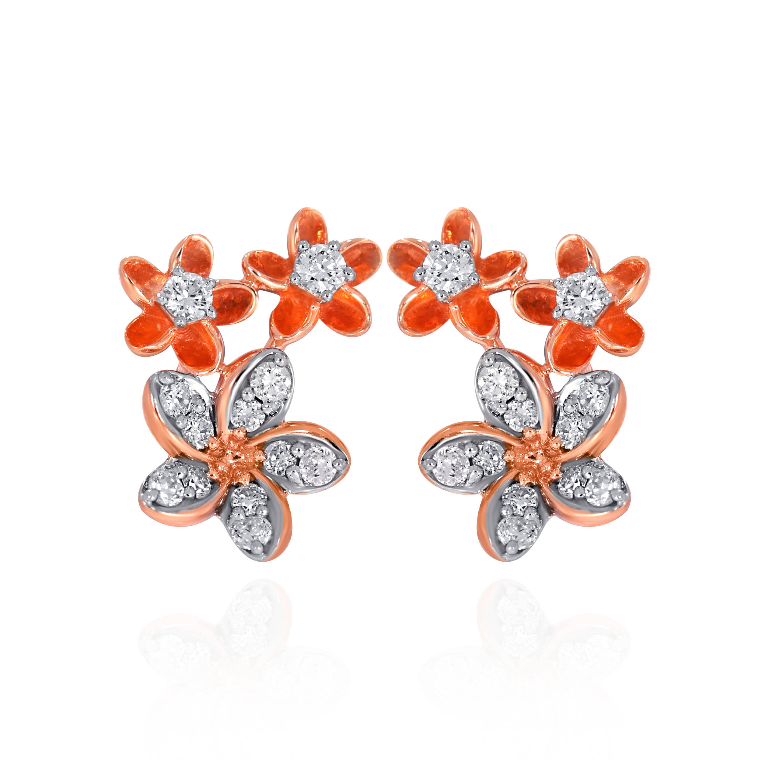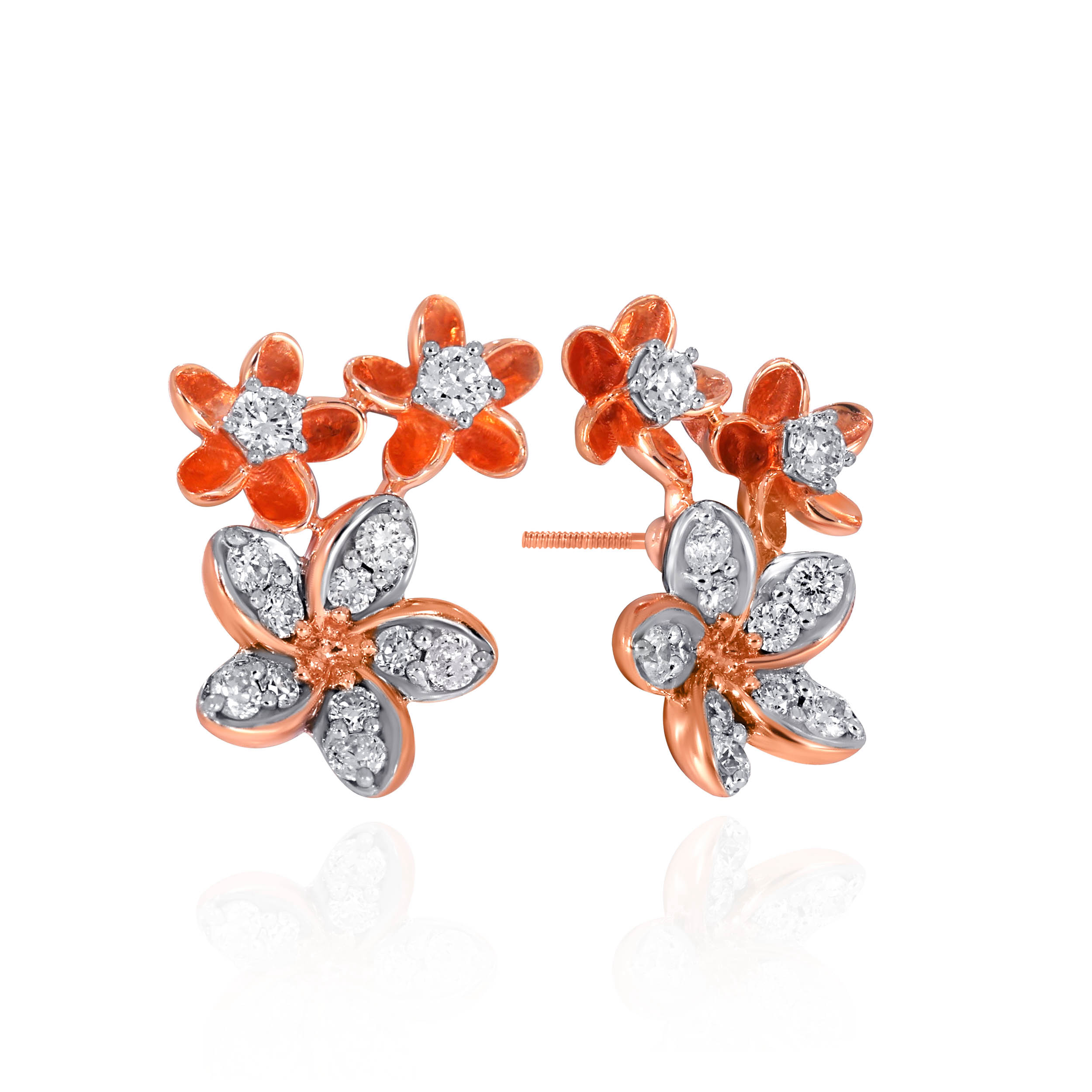 Designed for the modern muse, these earrings offer a fresh perspective on floral elegance. Layered blossoms create a luminous interplay of texture and sparkle, blending texture and brilliance for a look that feels refined, contemporary, and naturally poised, effortlessly styled with tailored Western silhouettes or sophisticated Indian ensembles.