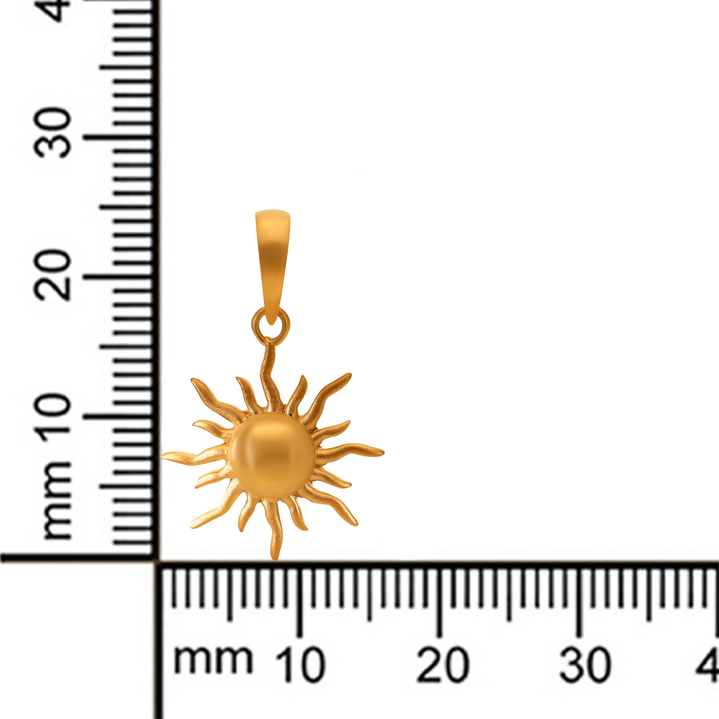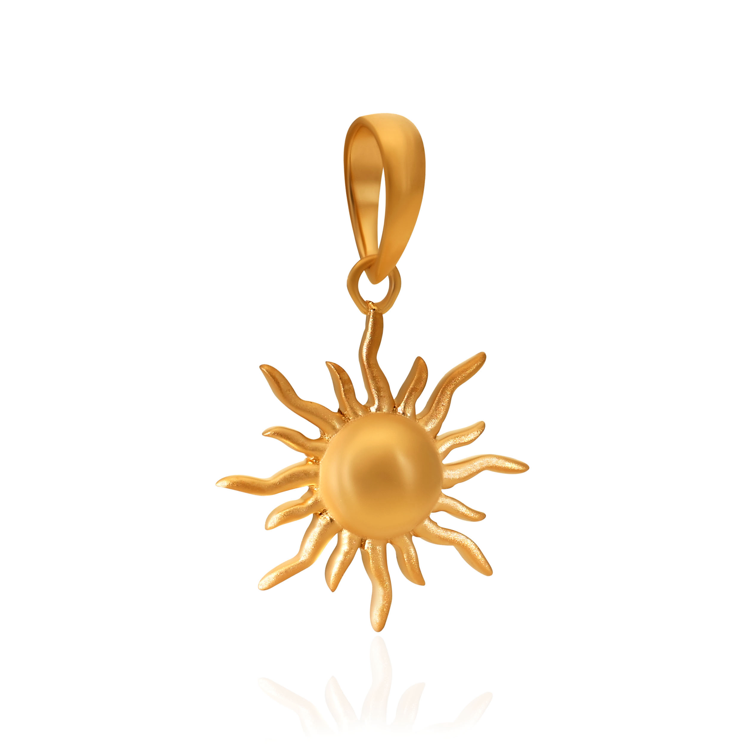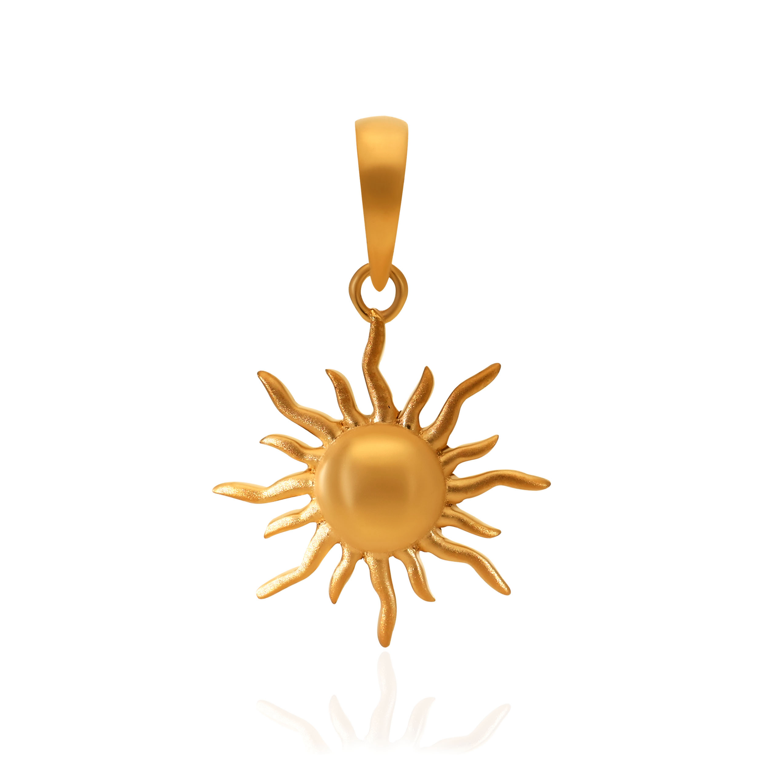 Capture the warmth of the sun in this radiant gold pendant. A smooth central sphere is framed by fluid, organically shaped rays inspired by solar flares, finished in soft satin gold. A timeless symbol of vitality, designed to shine effortlessly through every season.