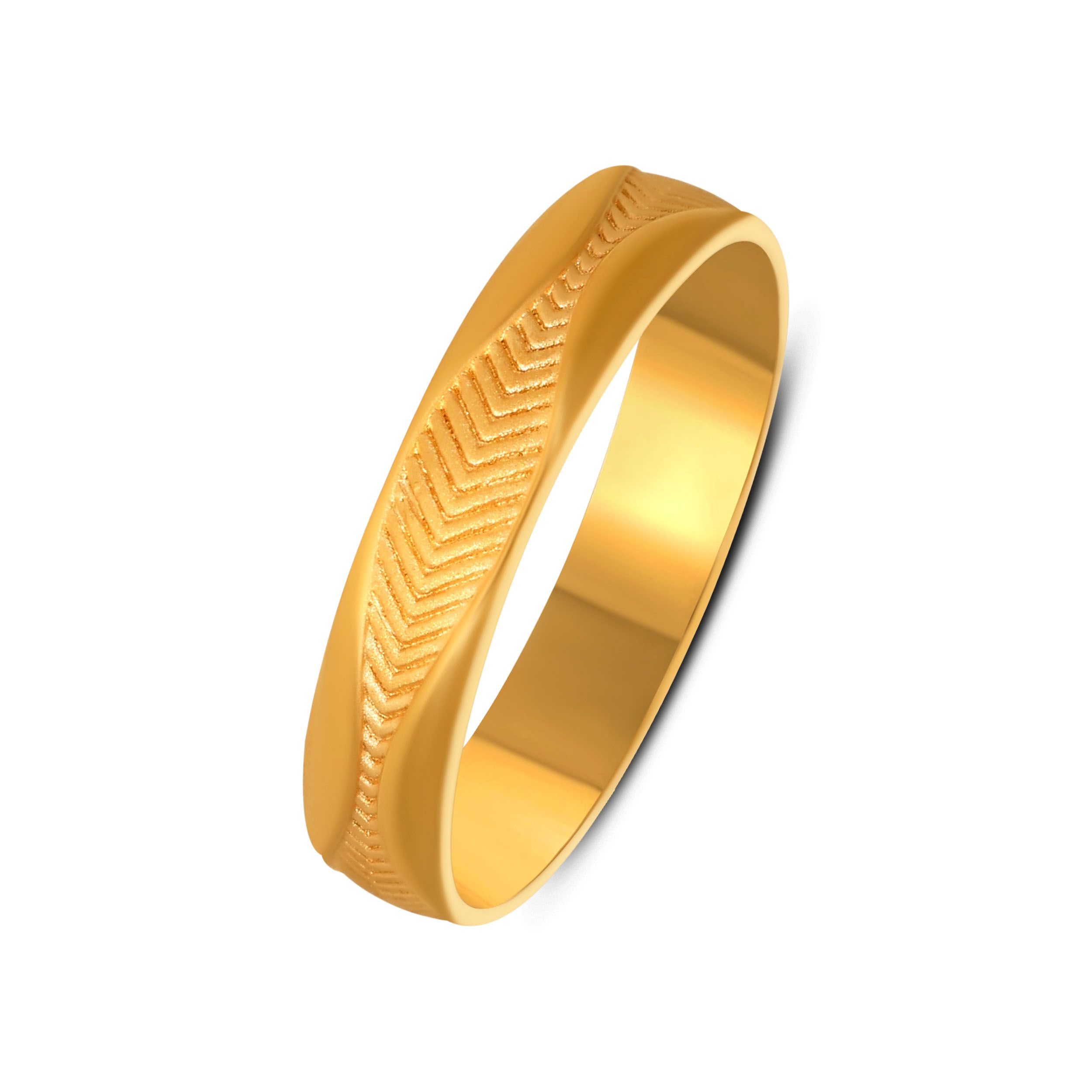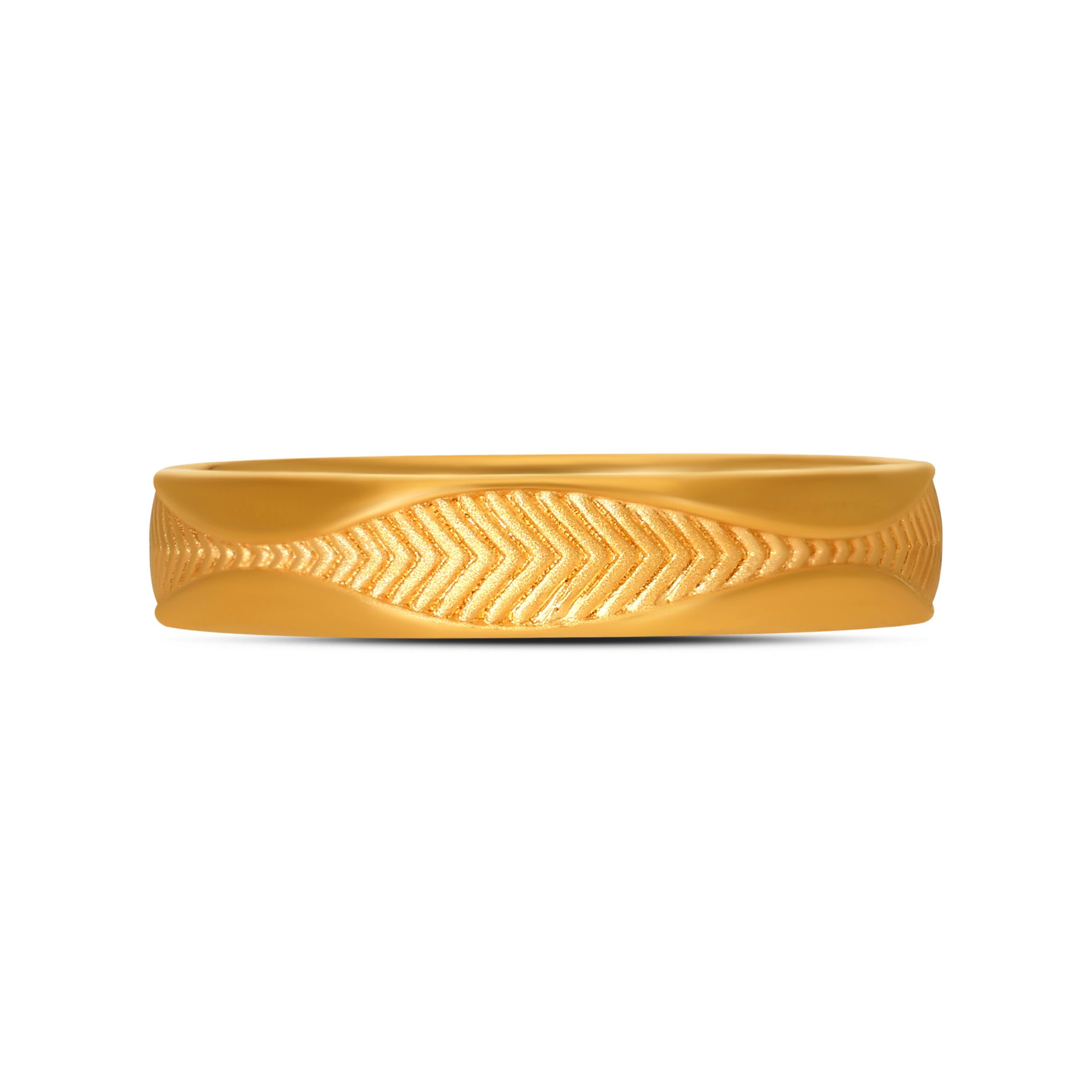 Clean lines meet soft elegance in this chevron-inspired gold ring. The finely etched texture creates a delicate shimmer that moves beautifully with light. A graceful piece that adds subtle character to everyday style. Pair it with a linen dress, gold studs, and stacked bangles for an effortless daytime look.