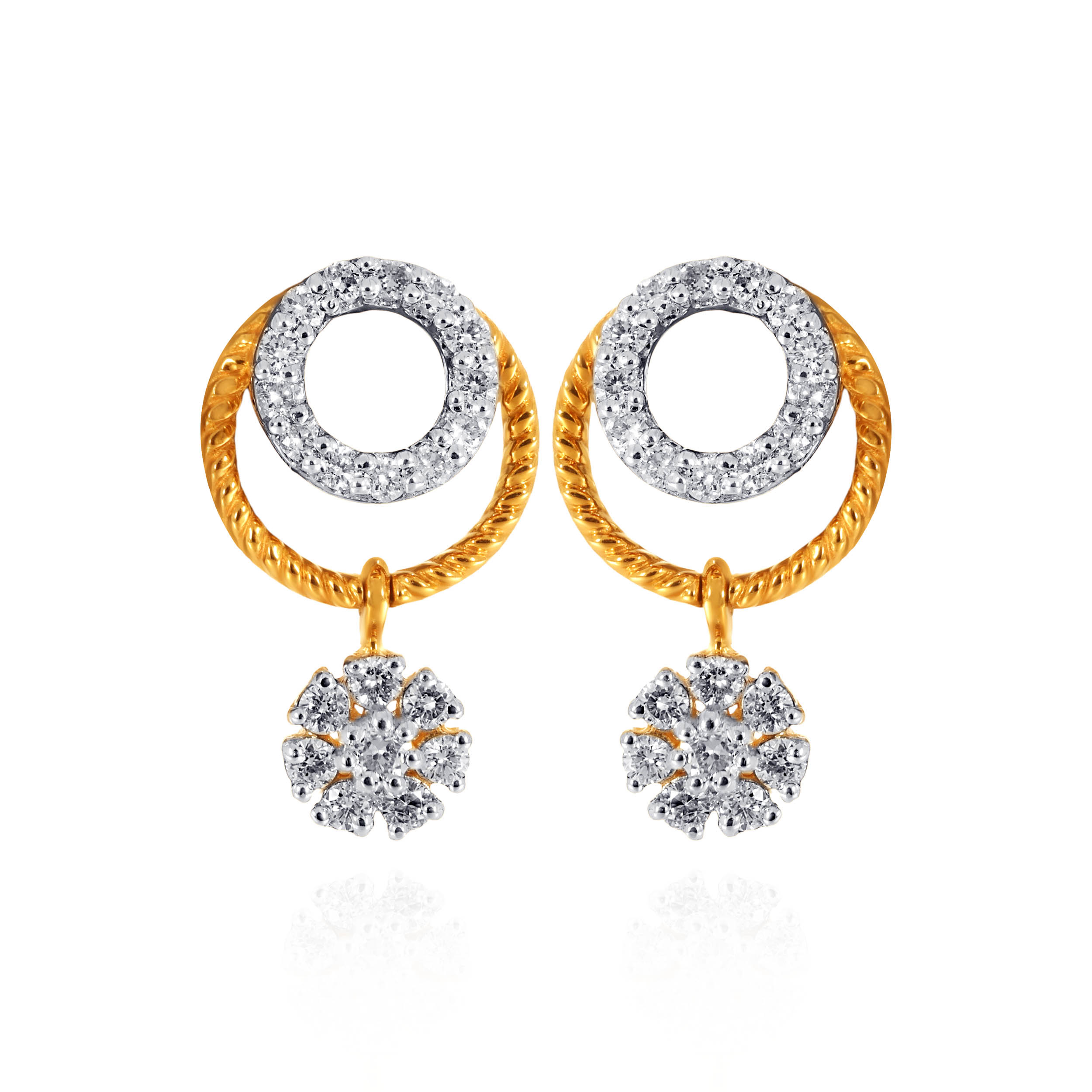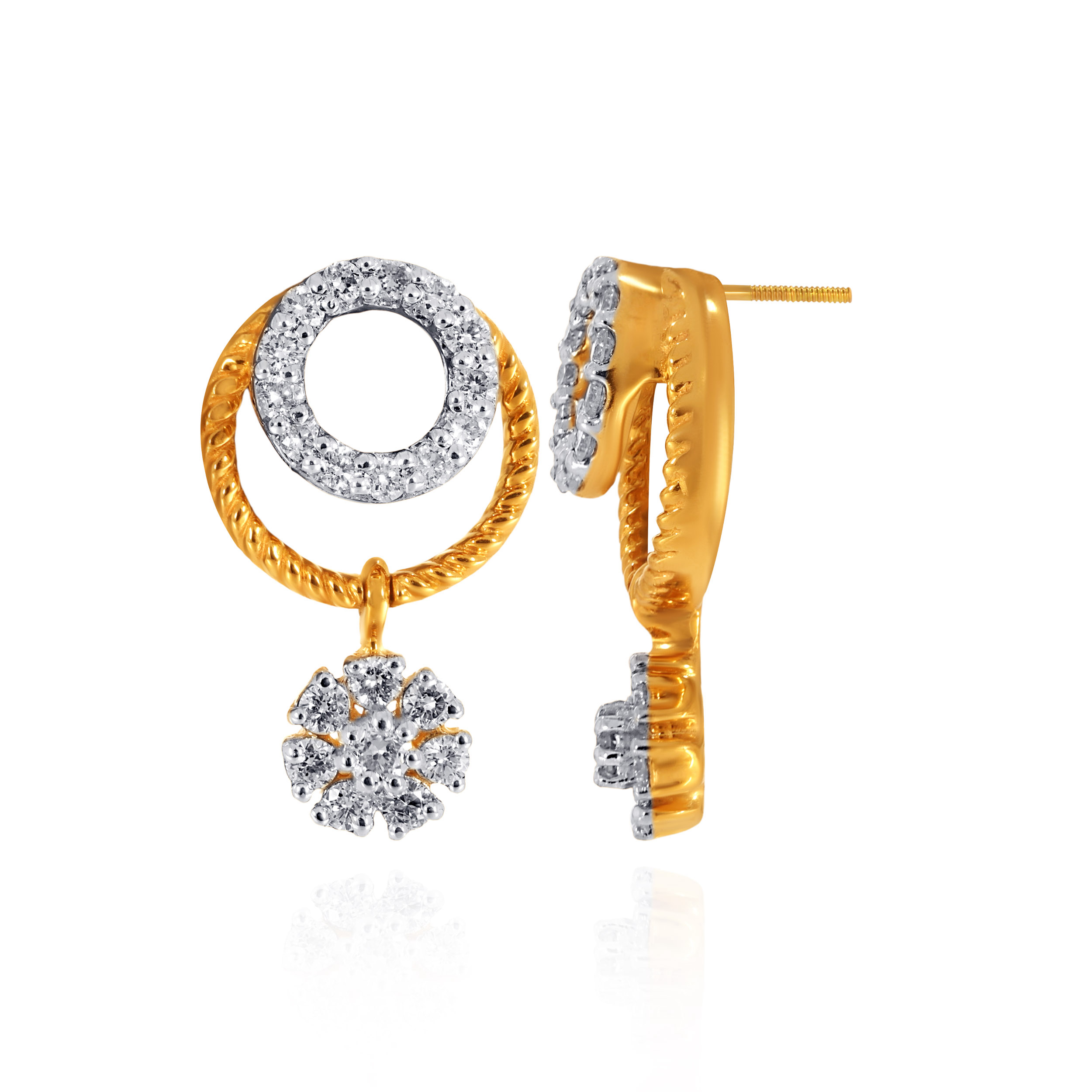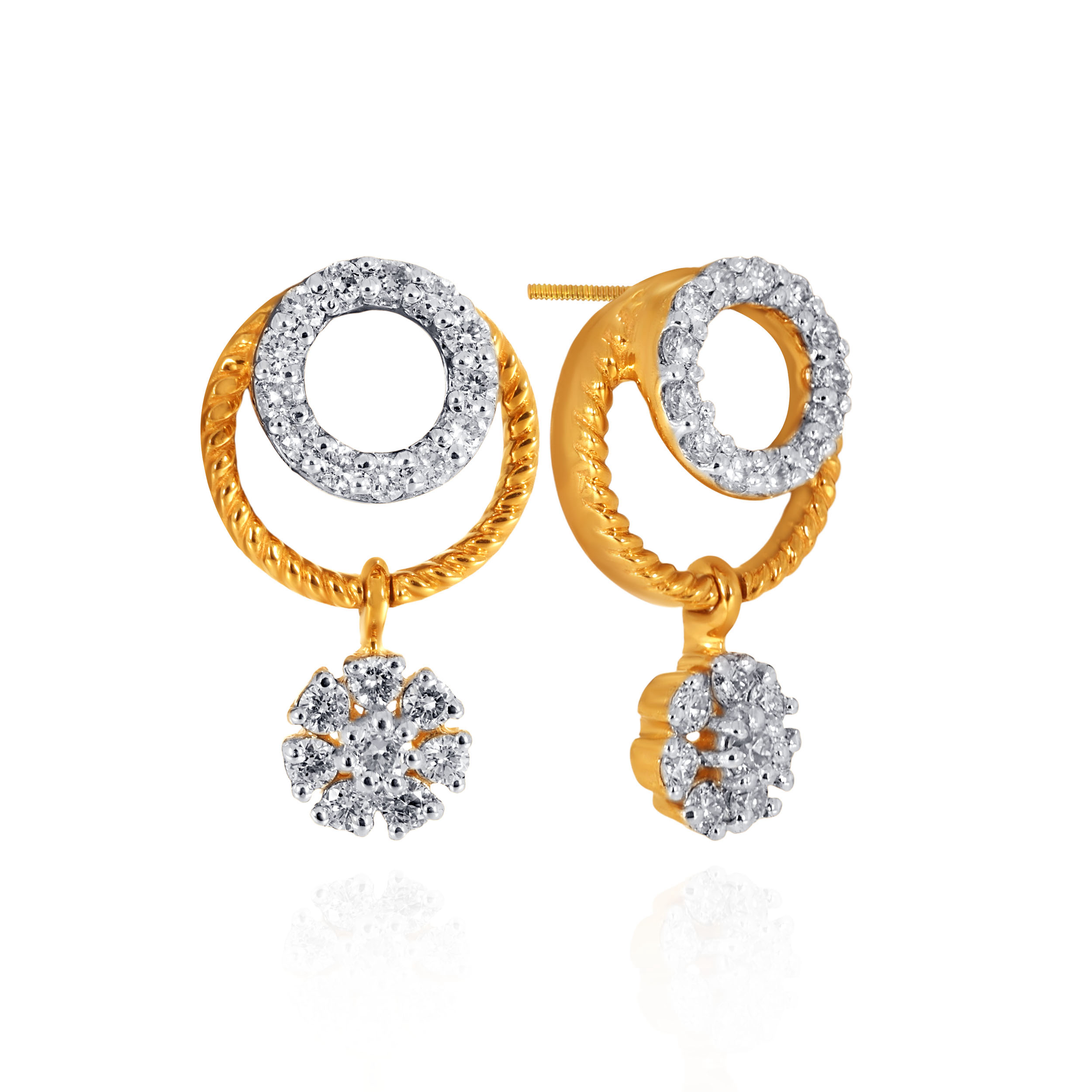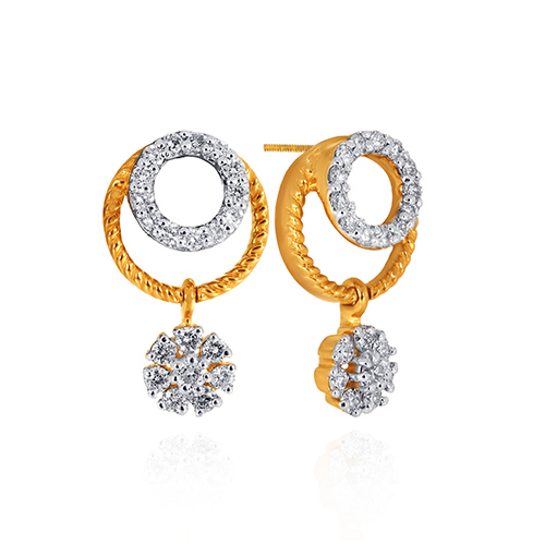 These dual-tone diamond drops feature interlinked circular forms and a softly dangling accent that catches the light with ease. Balanced, refined, and versatile, they pair effortlessly with workwear, fluid sarees, or evening dresses, perfect for everyday and elevated looks alike.