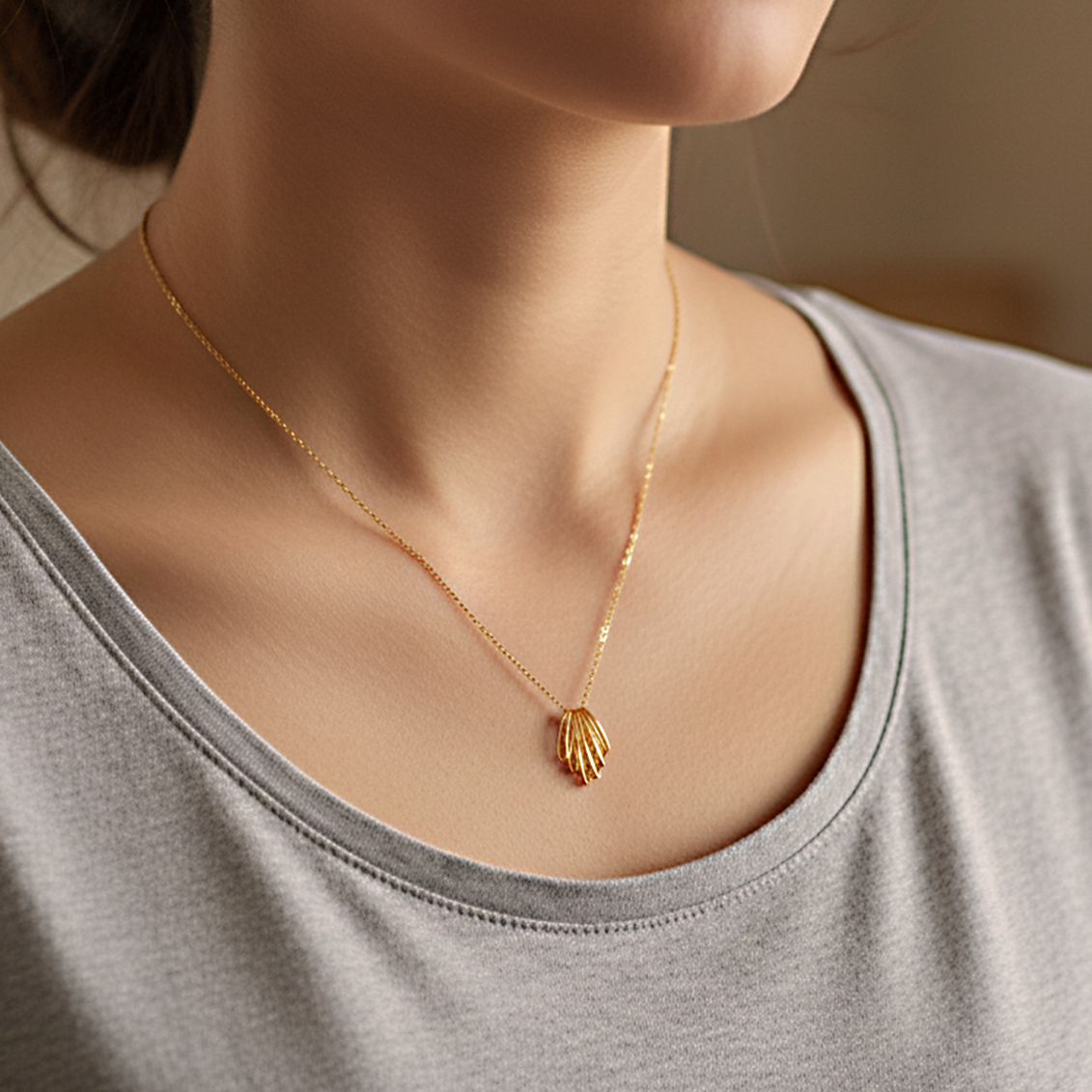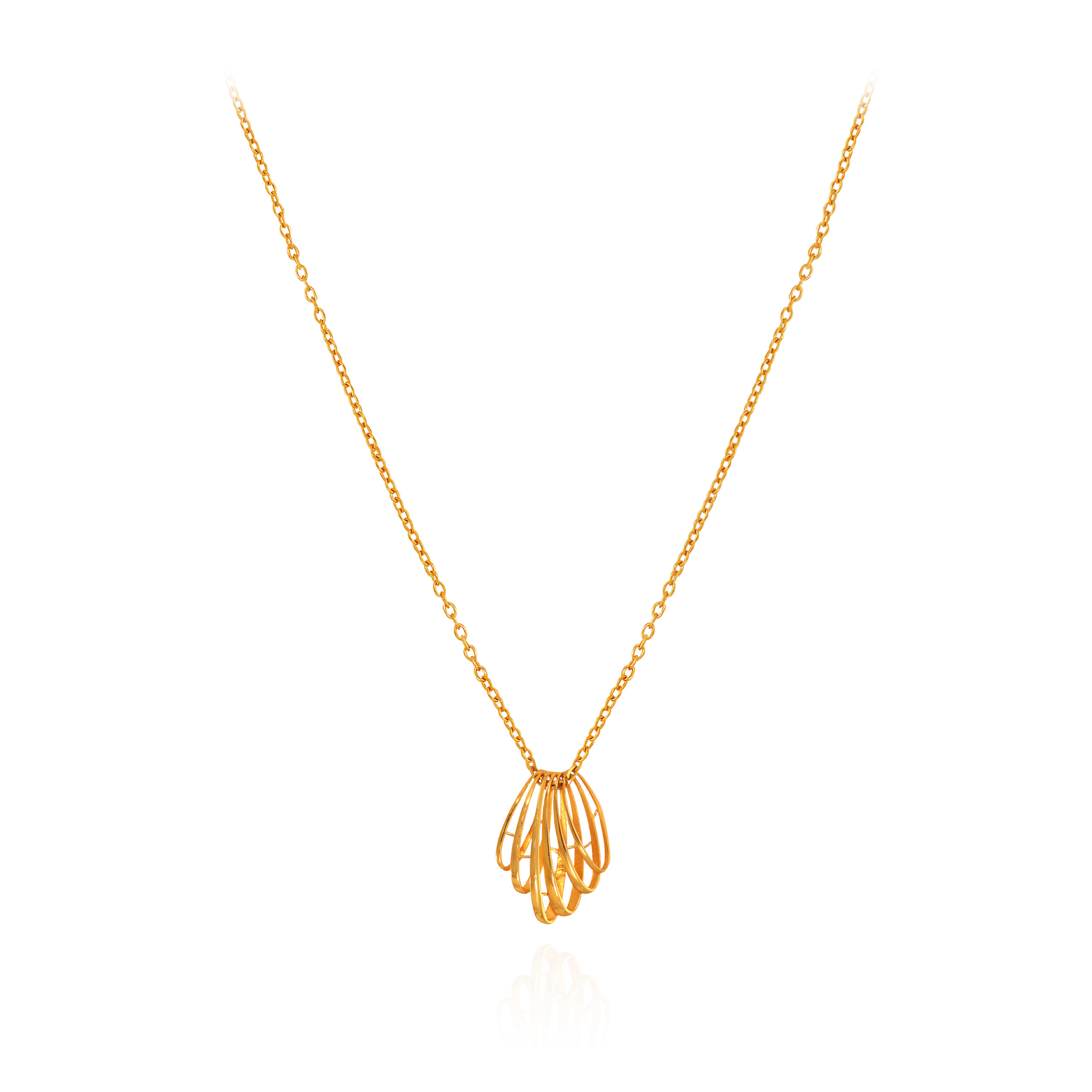 Embrace understated luxury with this gold pendant, featuring a sculptural, multi-layered silhouette inspired by a blooming flower. The open-cage design highlights concentric golden arcs that catch the light beautifully. Style it with Western outfits for a touch of modern elegance.