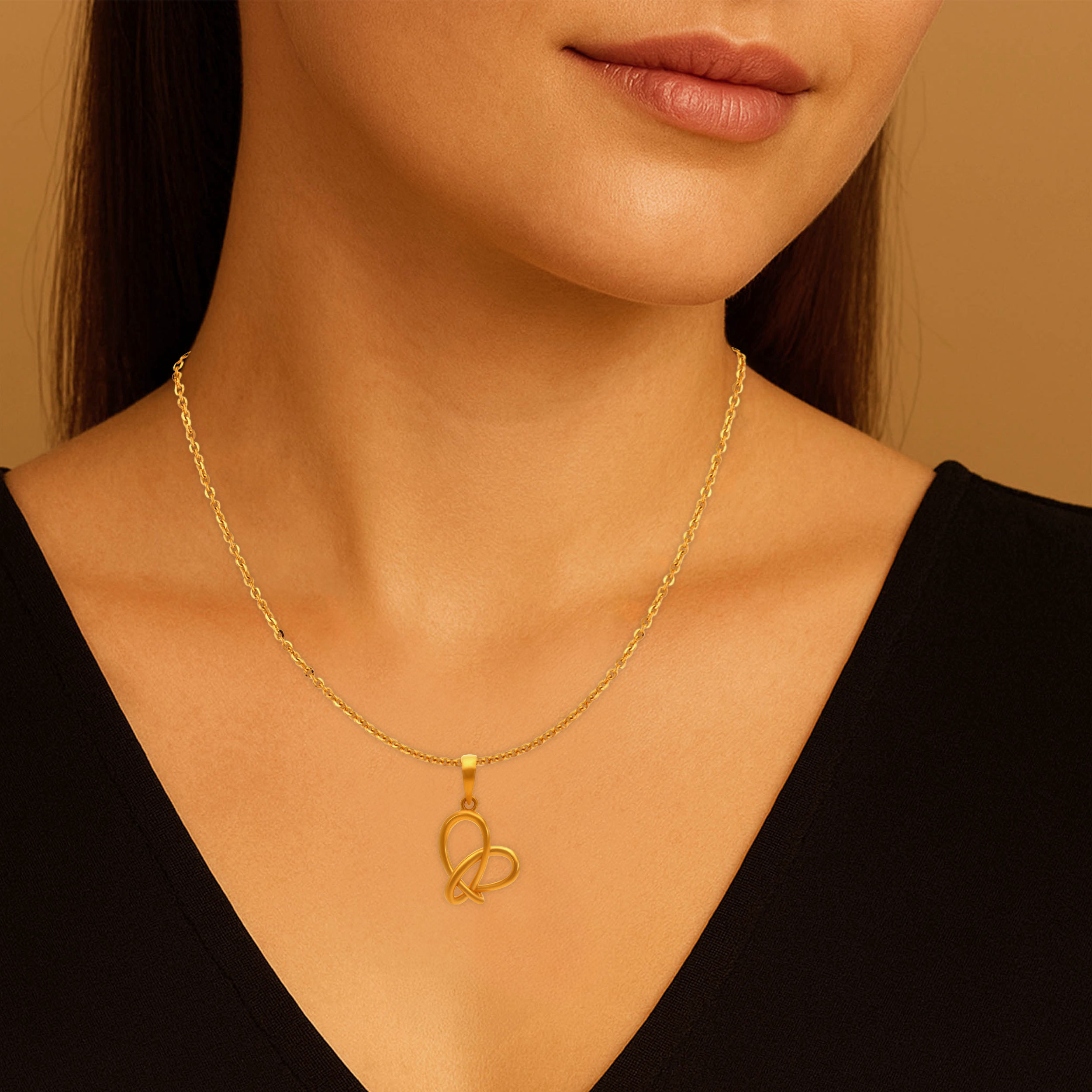 Crafted with intersecting heart forms, this gold pendant captures motion and connection through fluid design. The interplay of smooth and matte finishes brings depth while keeping the piece contemporary. Let it elevate your Western wear and minimalist evening looks.