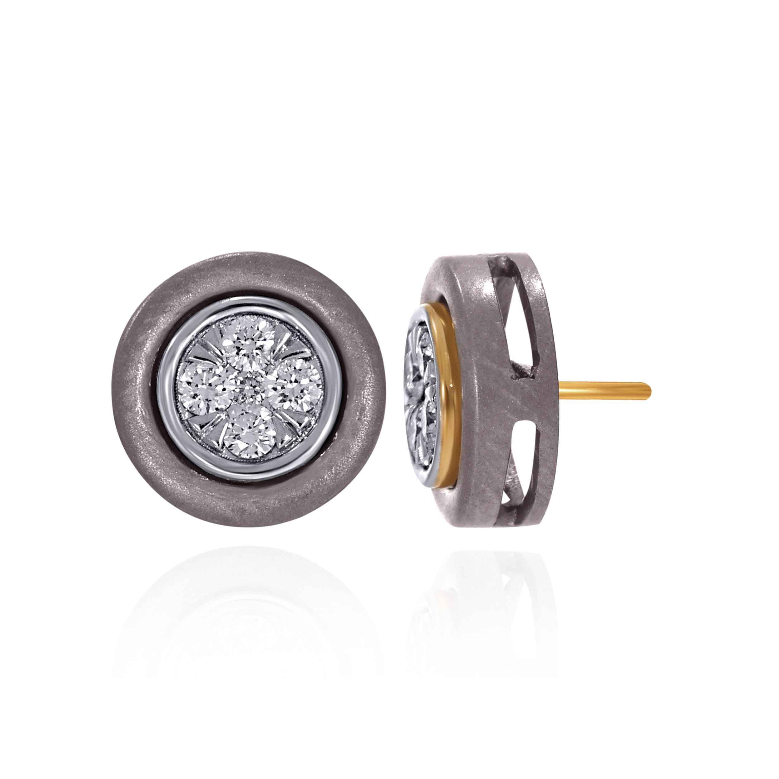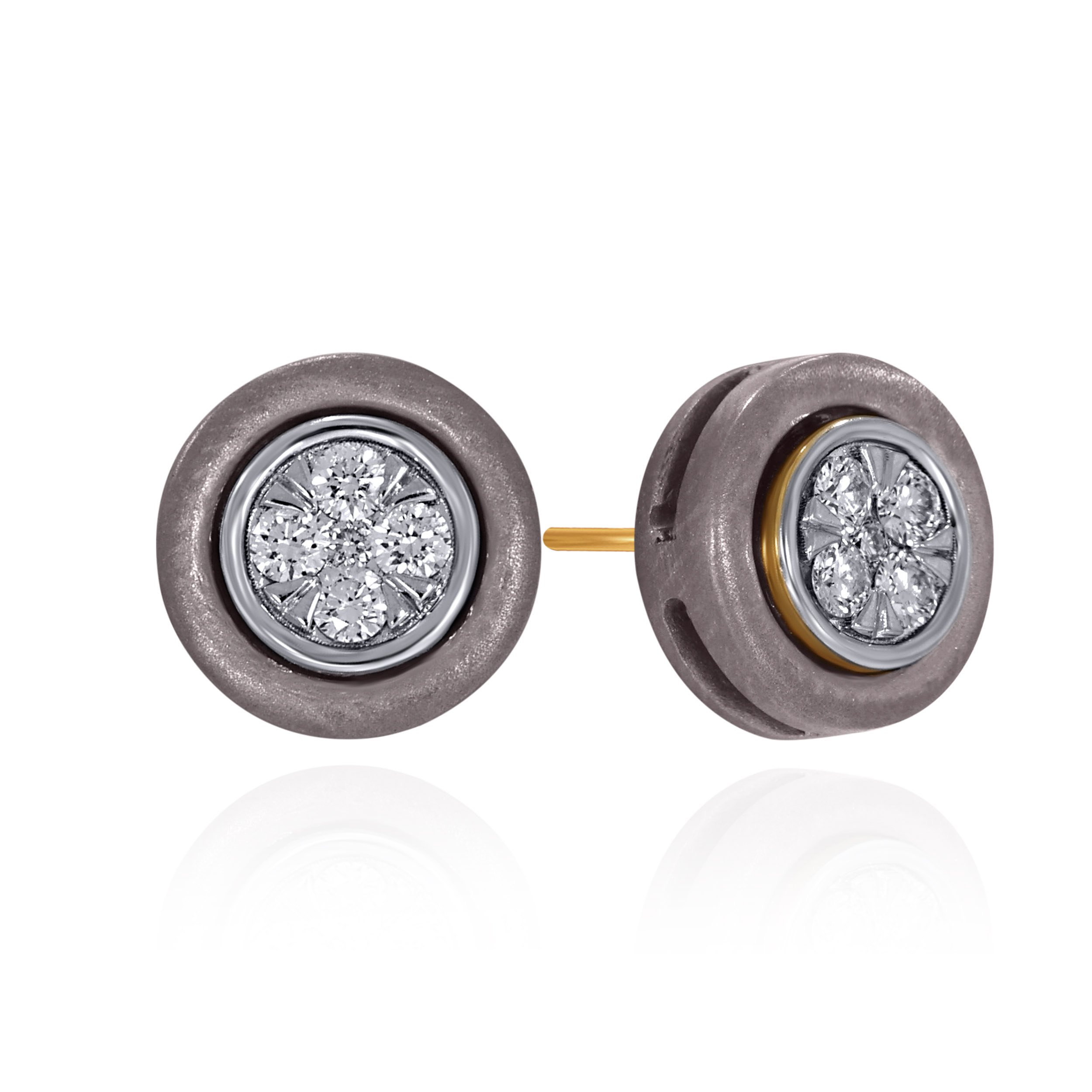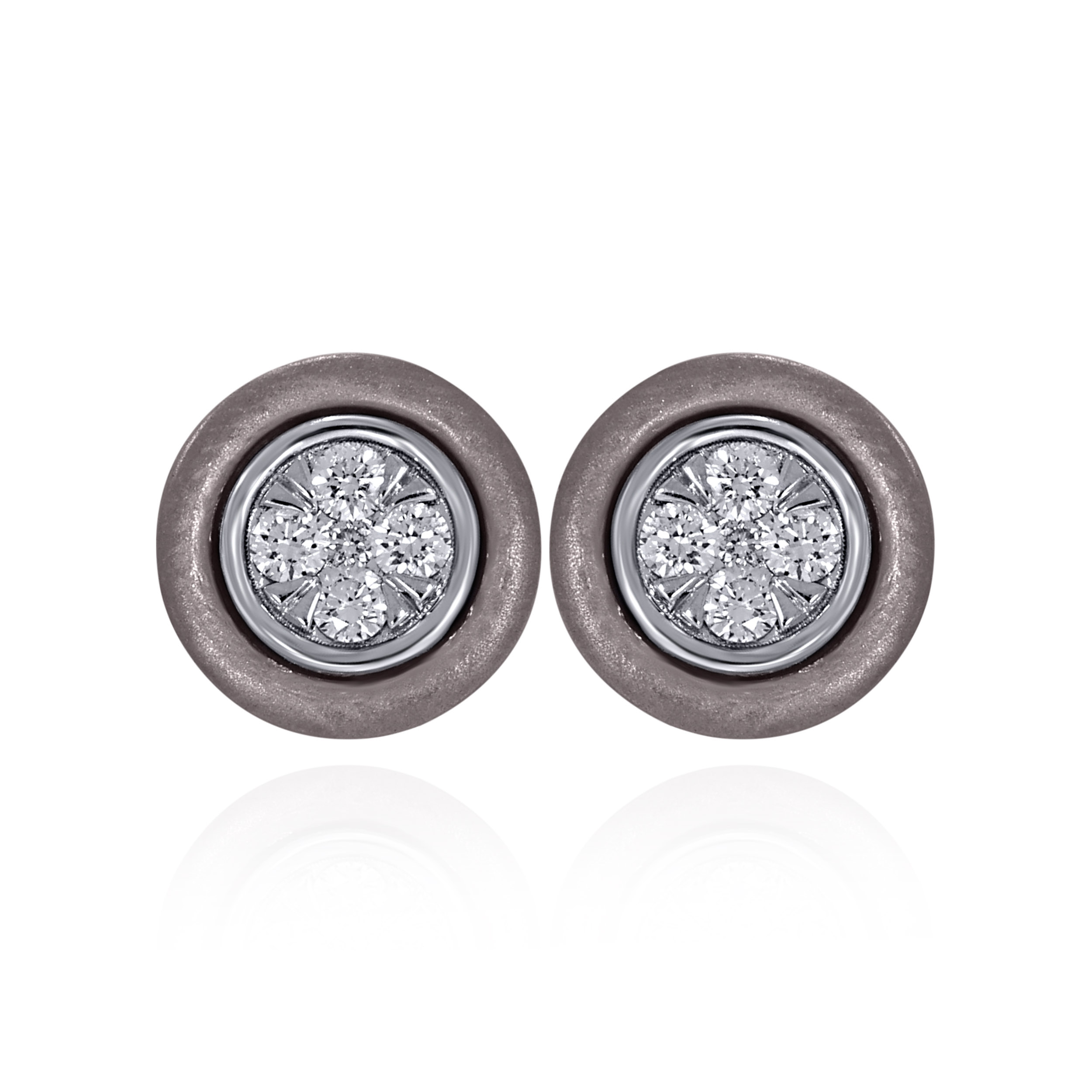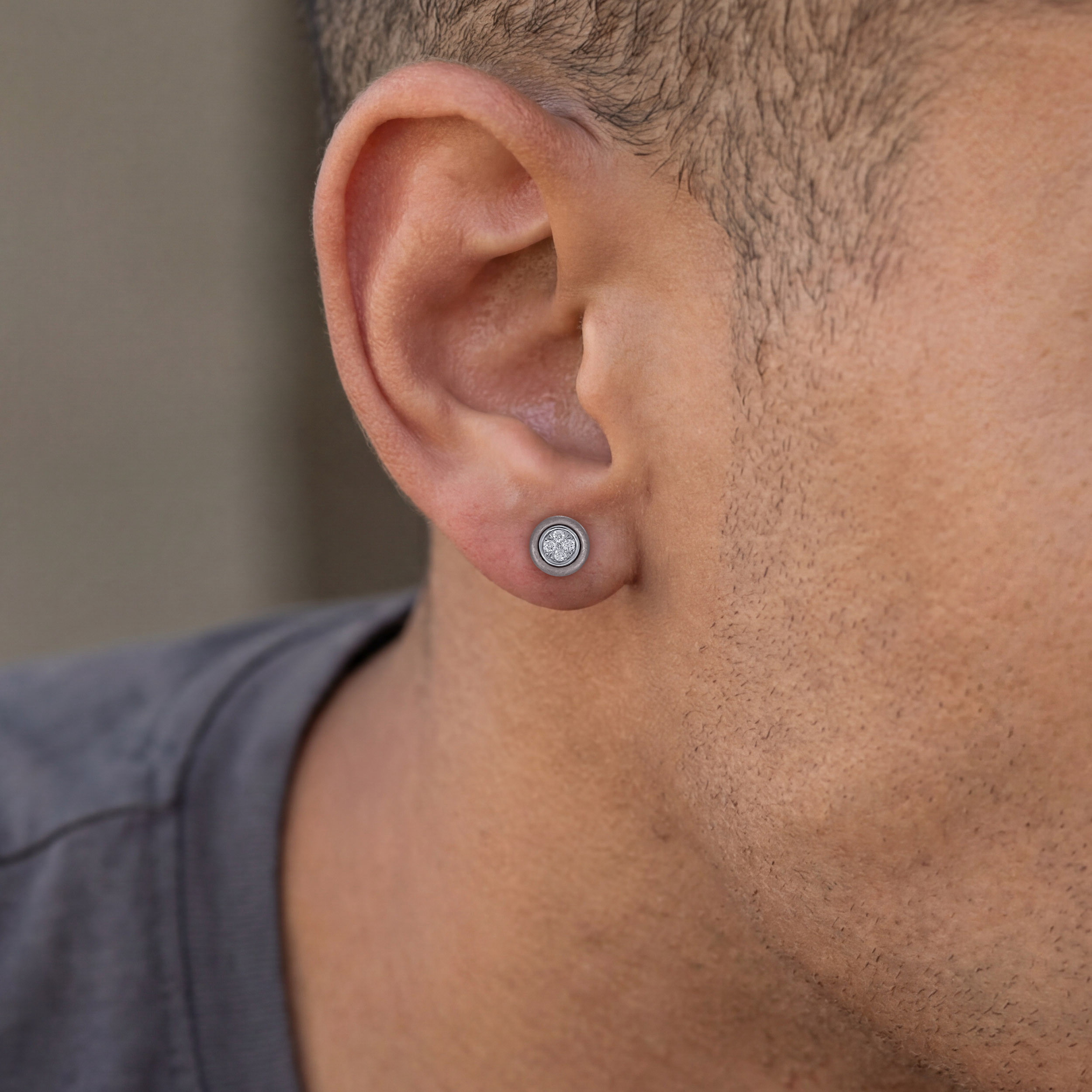Designed for men who appreciate understated precision, these titanium diamond studs feature a circular form with a strong industrial edge. A diamond cluster sits confidently at the centre, framed by matte titanium for a balanced, modern look. Compact yet impactful, they deliver everyday sophistication with ease.