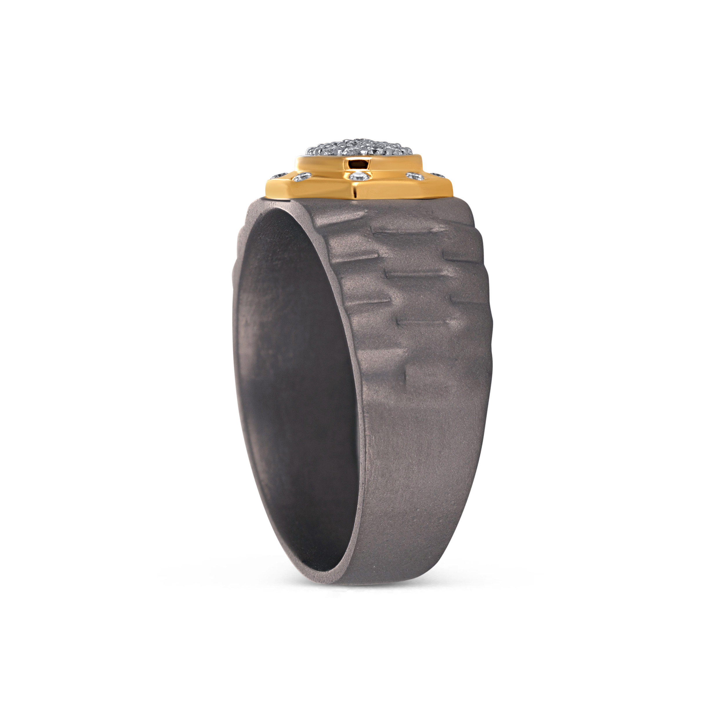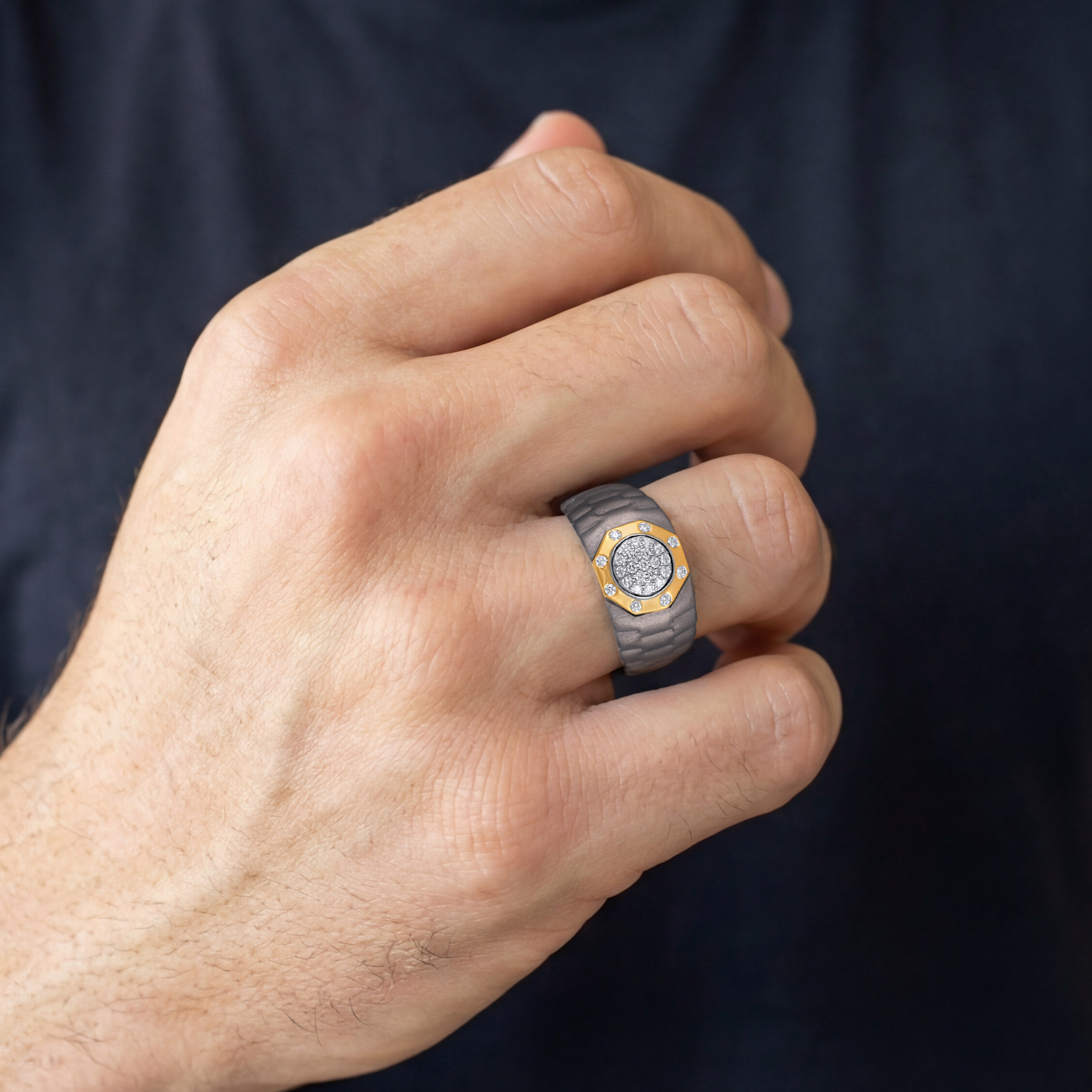 Born from the same metal that powers galactic exploration, this titanium ring features a bold, interstellar-inspired design. Hand-finished with premium diamonds, it is the ultimate symbol of strength and stellar elegance for the fearless man. Style it with monochrome outfits, sharp tailoring, or minimalist evening looks for an edgy look.