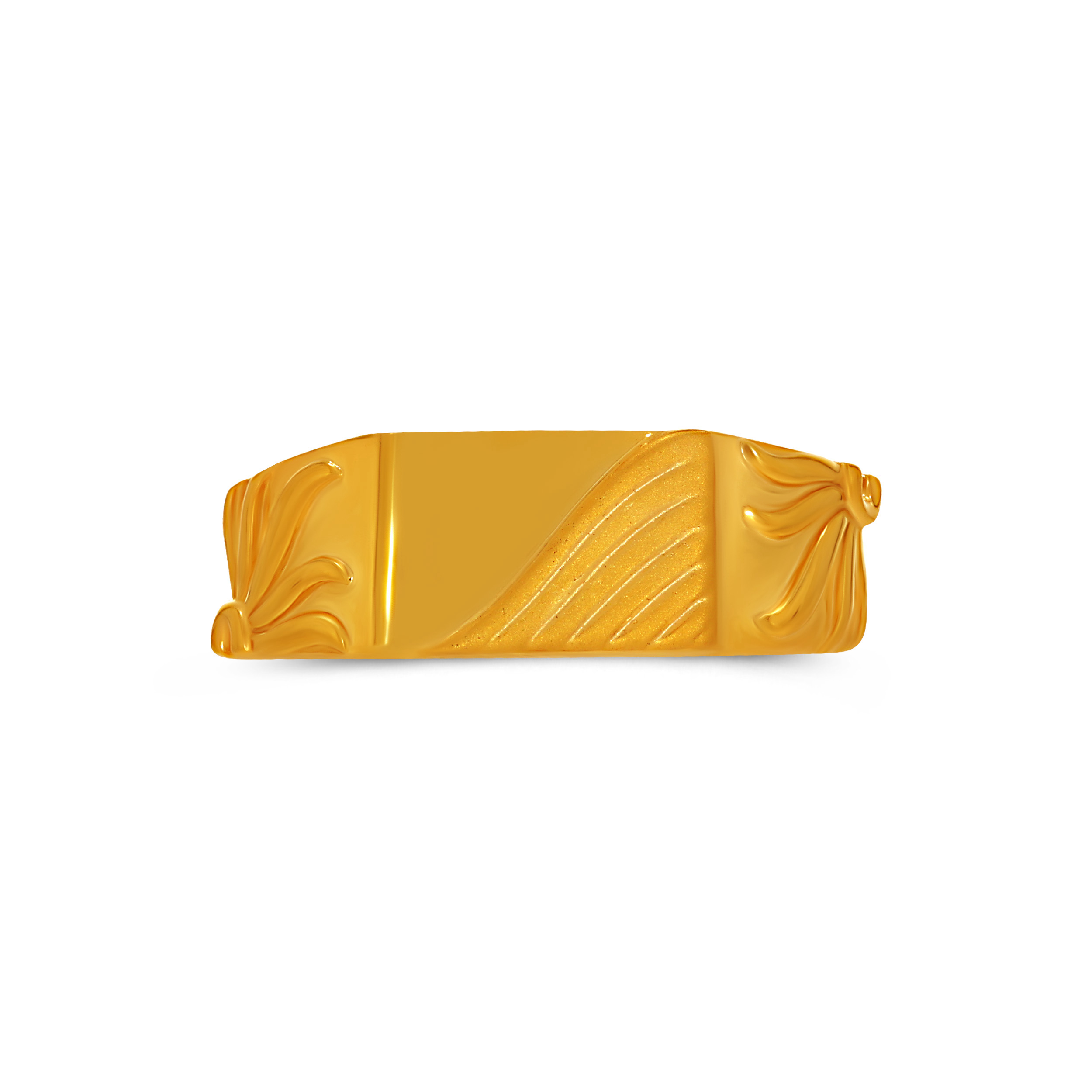 Shaped with smooth, flowing lines and a defined central panel, this men’s gold ring carries a modern, understated charm. Pair it with crisp shirts, muted polos, or festive ethnic wear for a clean, elevated finish. PLEASE NOTE:- The dimensions of the actual product might vary.
