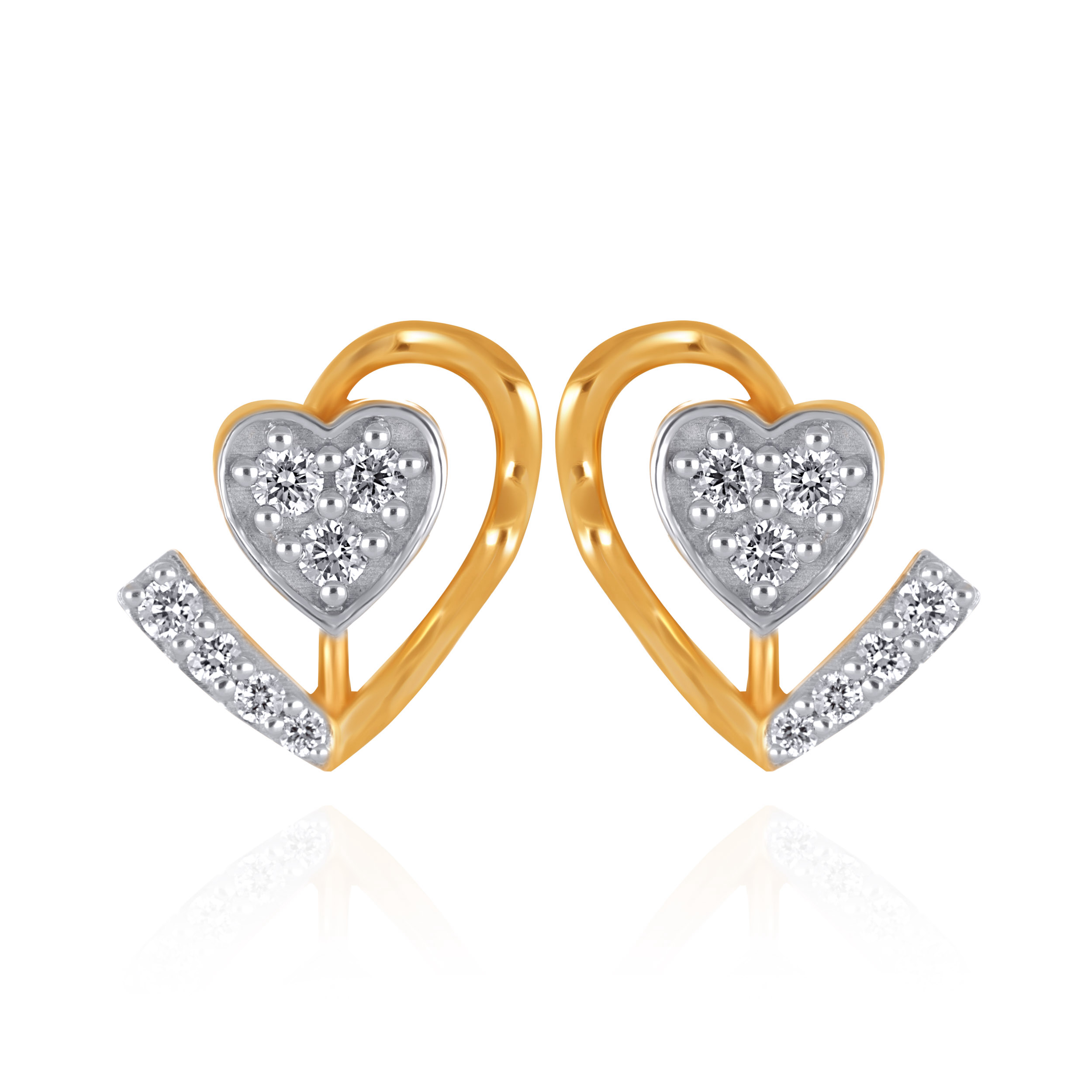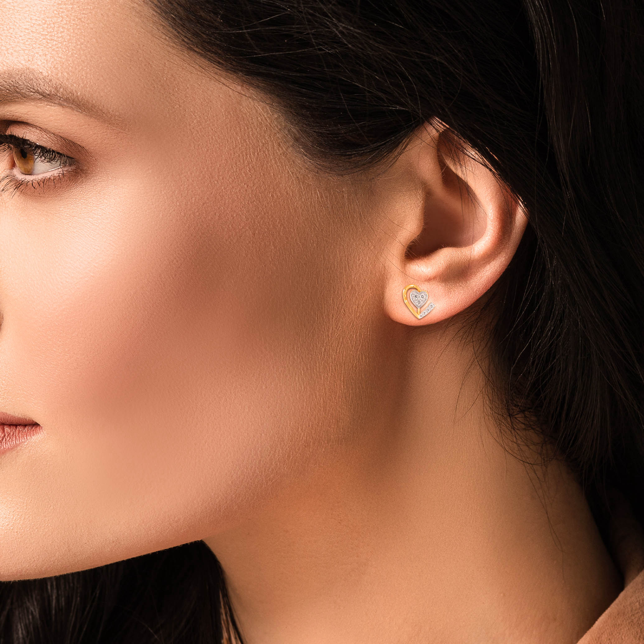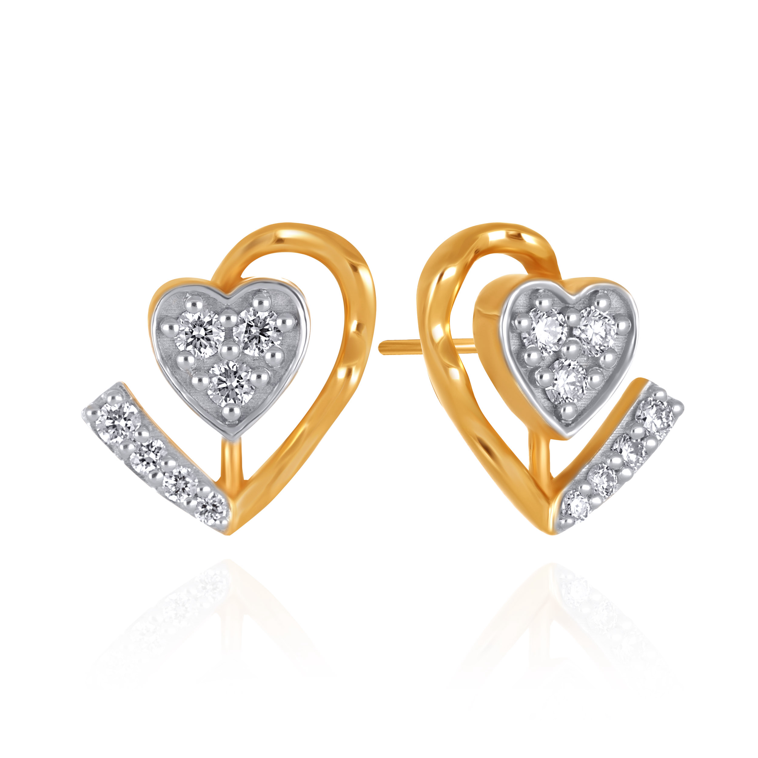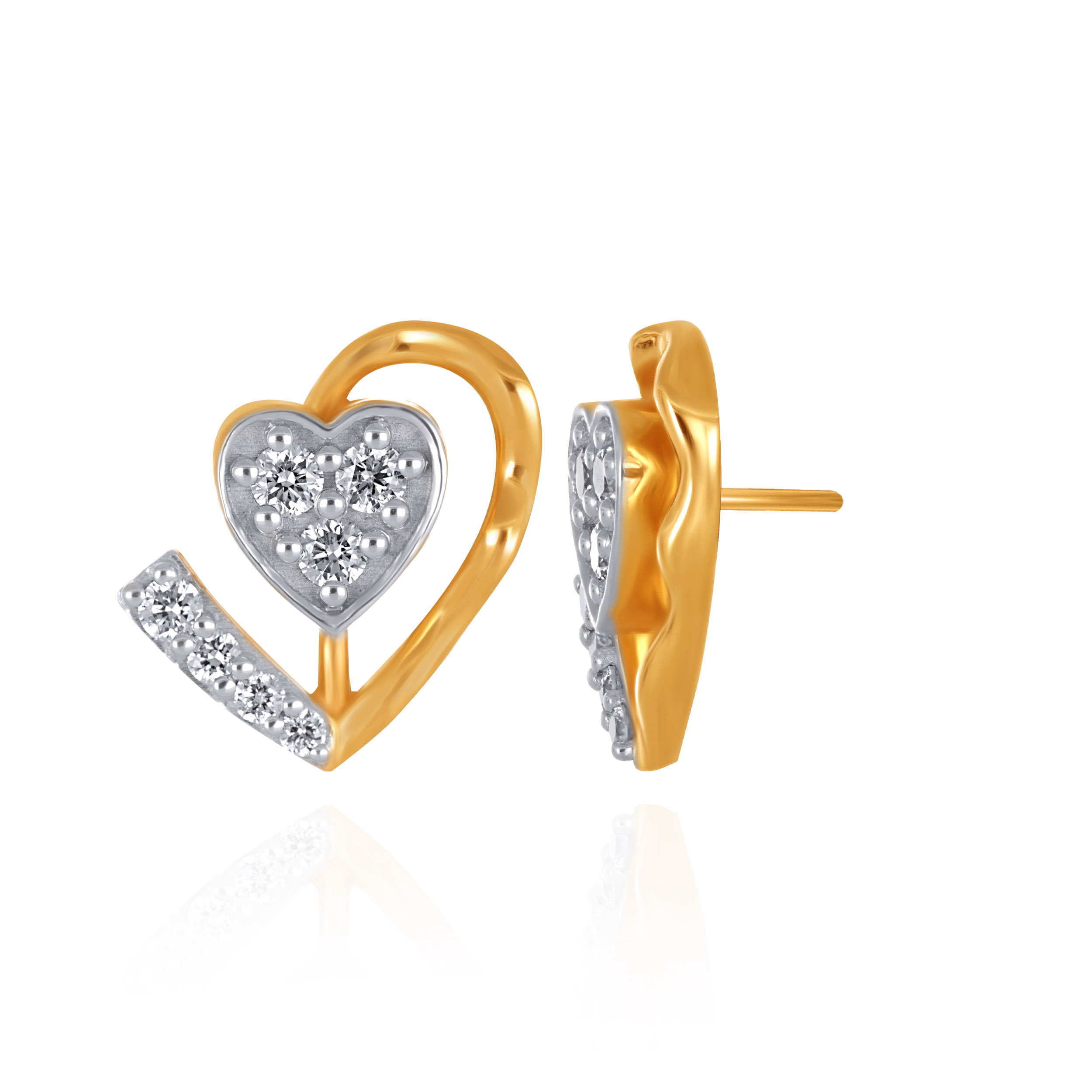 Crafted with a strong geometric sensibility, these stud earrings feature a polished gold heart set with a diamond accent in a diagonal pattern. Layered and architectural, they offer a modern take on a timeless symbol.
