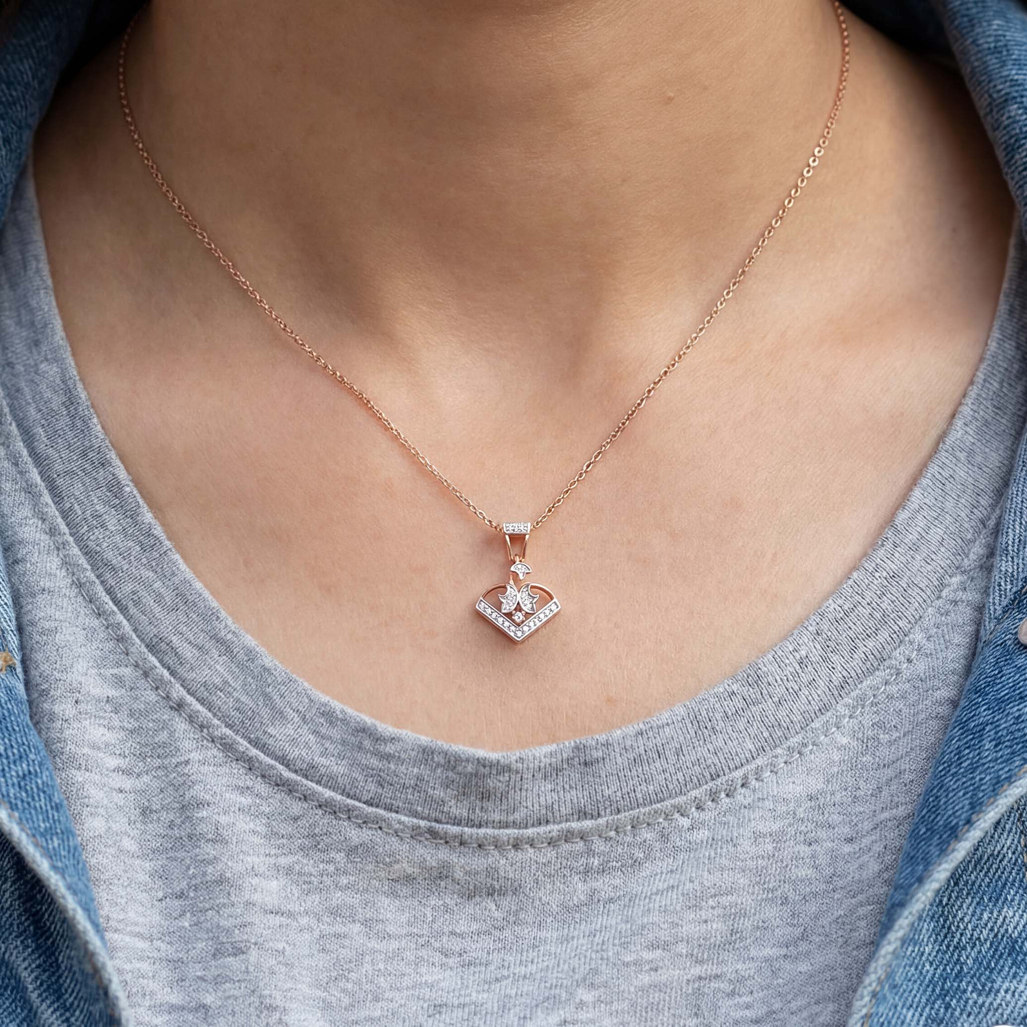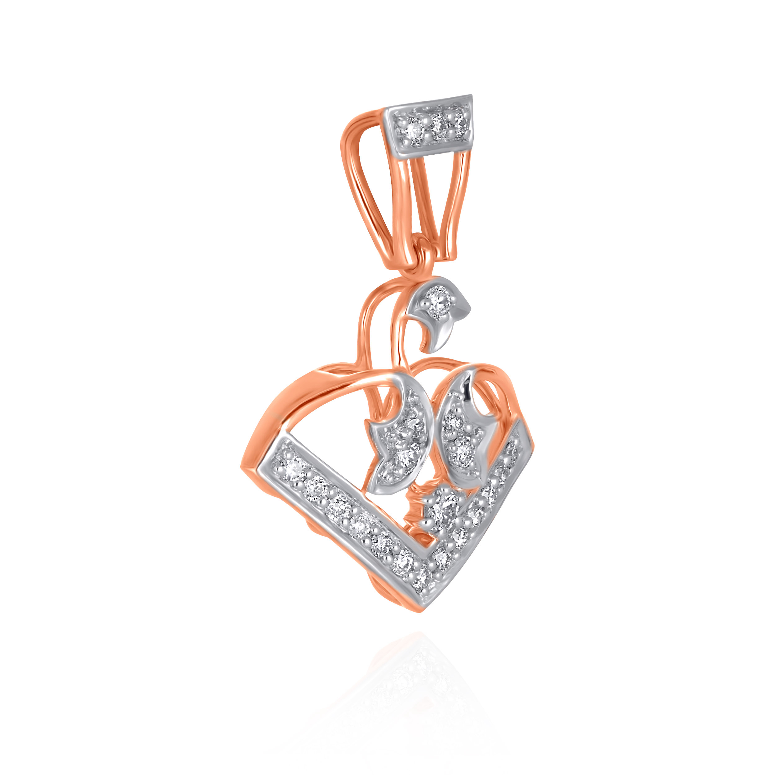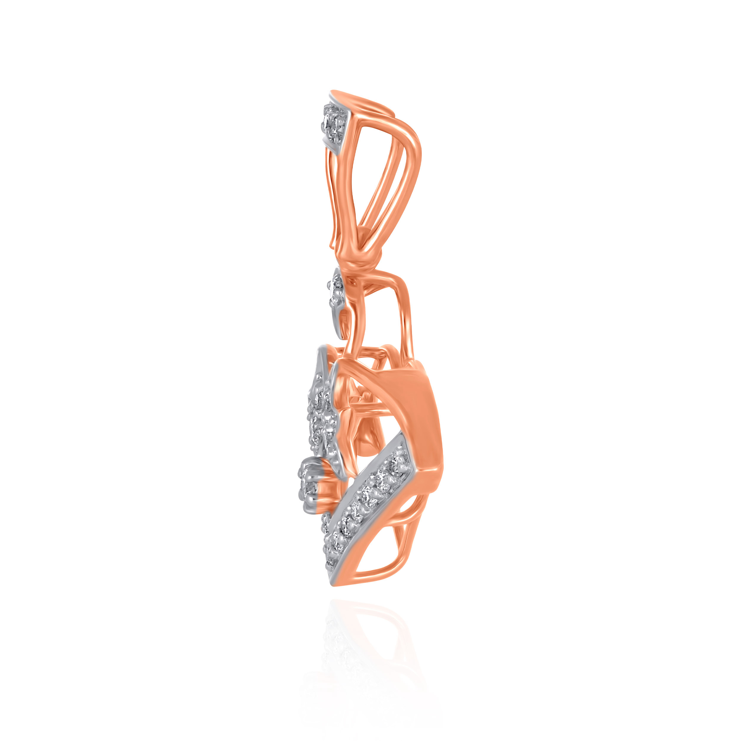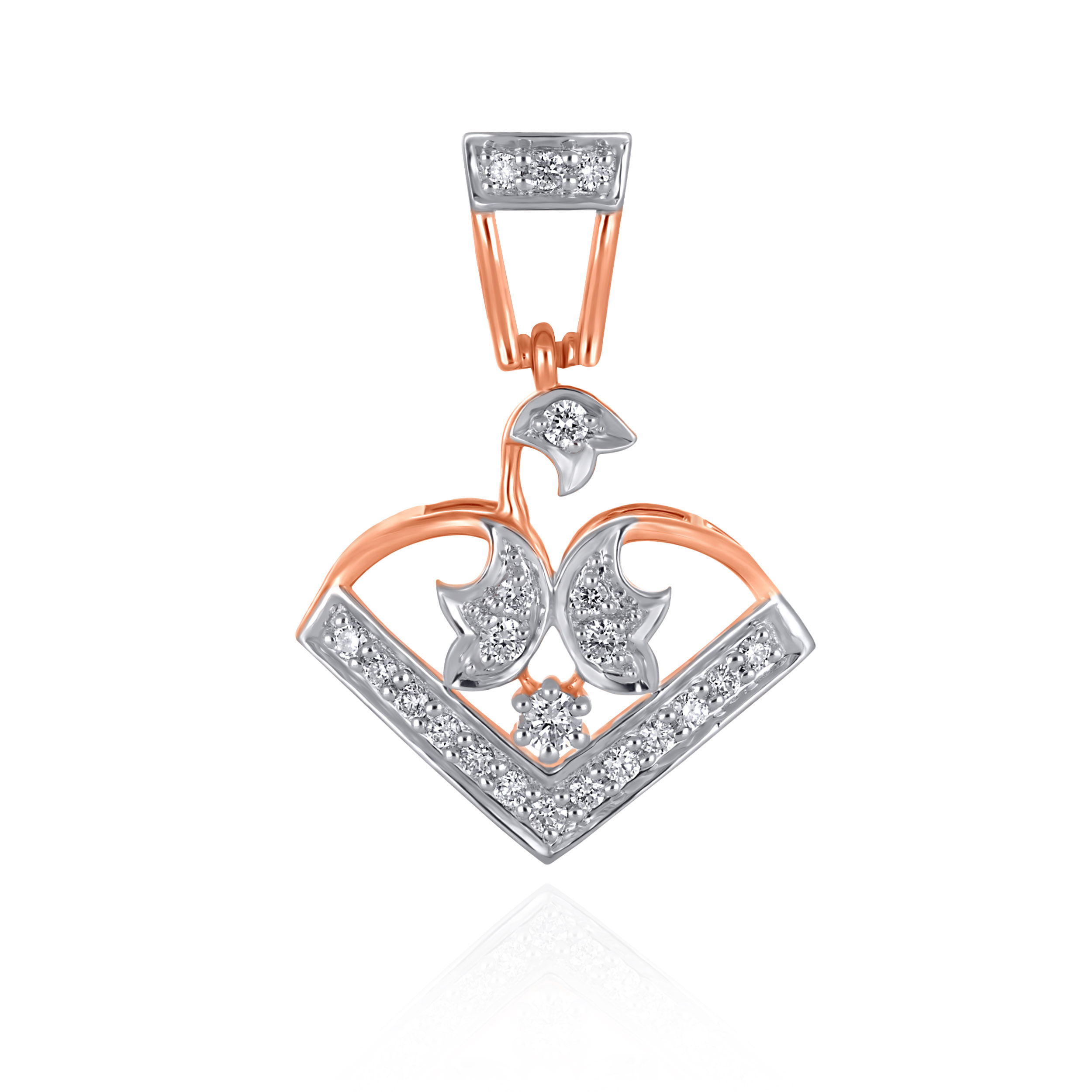 Channelling the geometry of retro Deco aesthetics, this diamond pendant reimagines the classic heart through a mid-century lens. A bold chevron base grounds the design, while swirling, leaf-like motifs inspired by vintage lace soften the form. Crafted in a warm, softly blushed tone of gold, it balances structure with romance in a distinctly timeless expression.