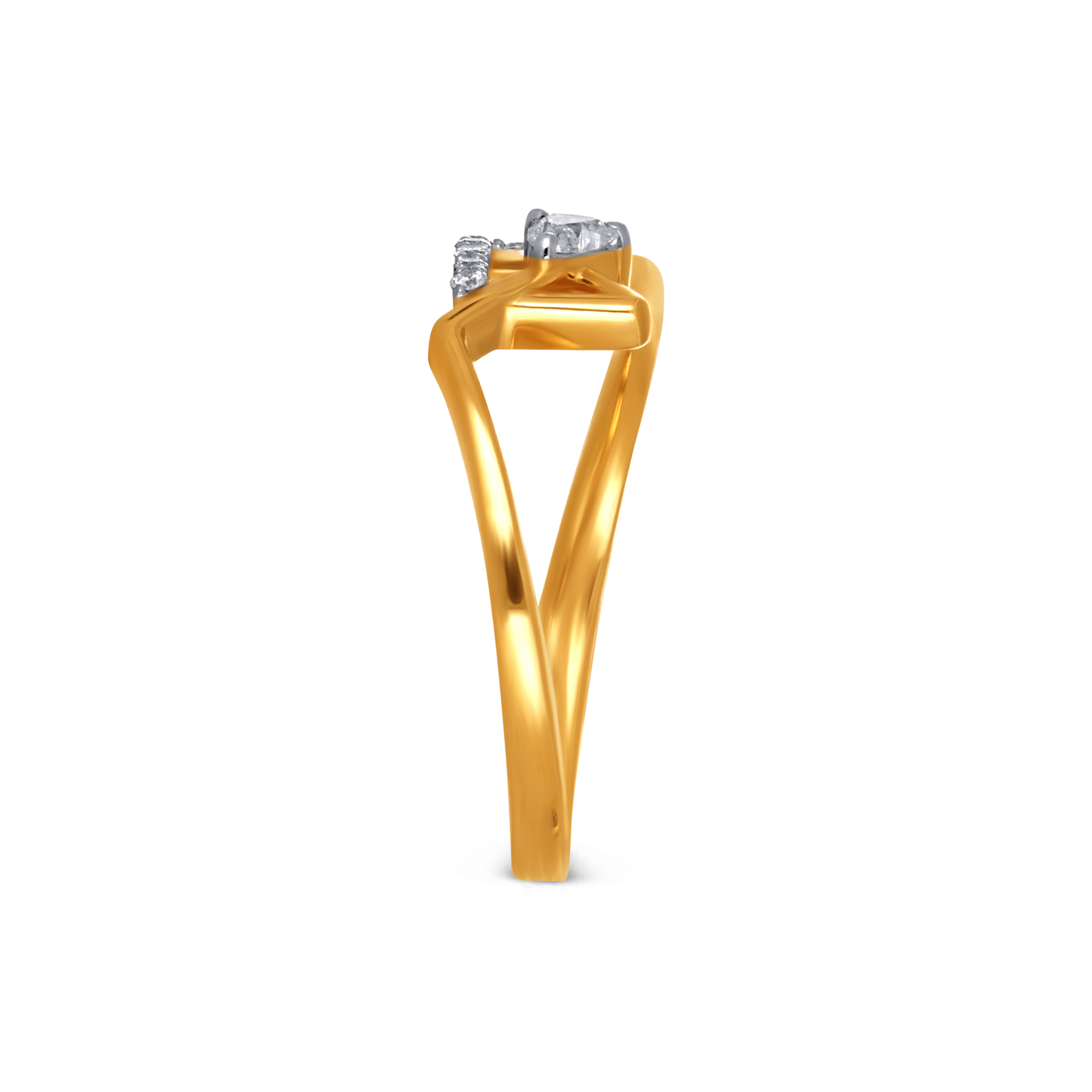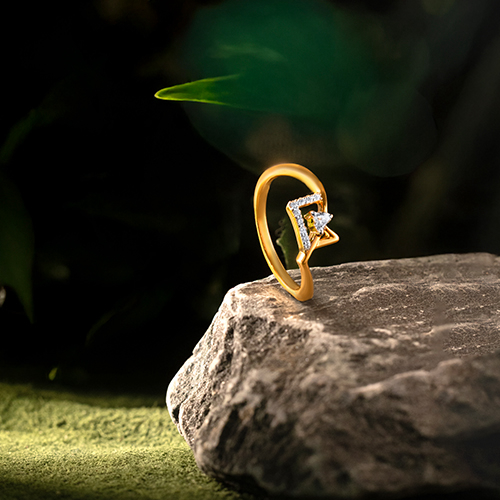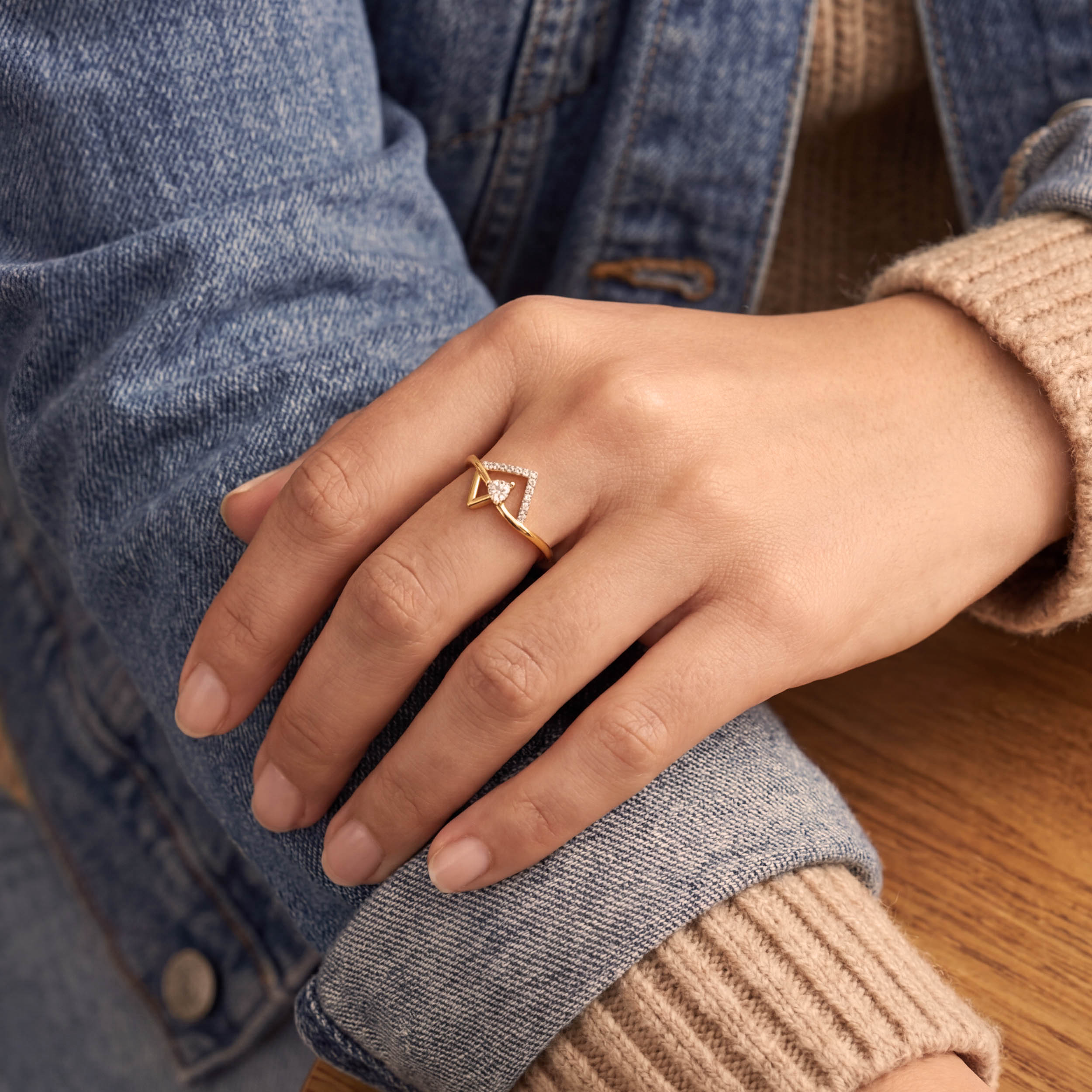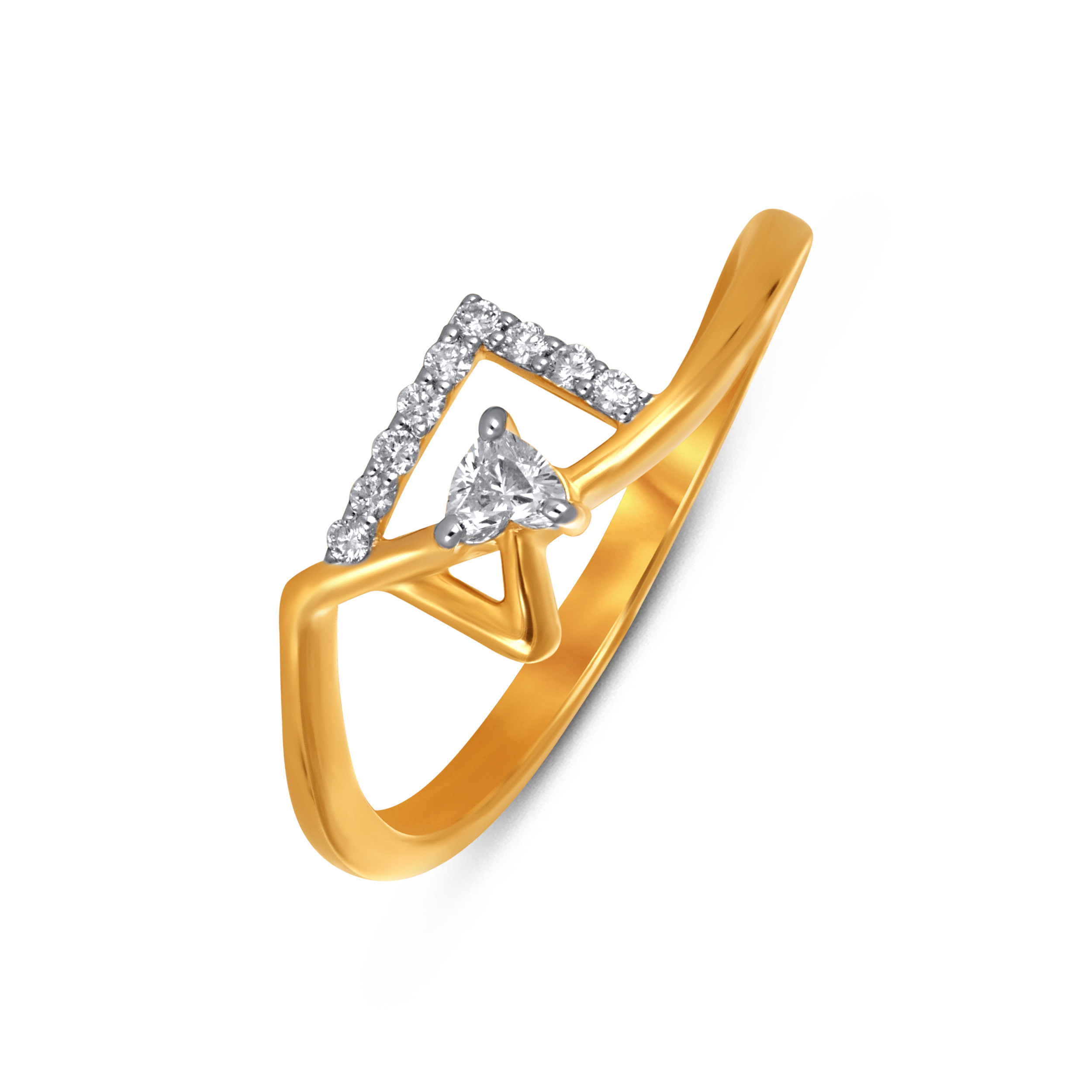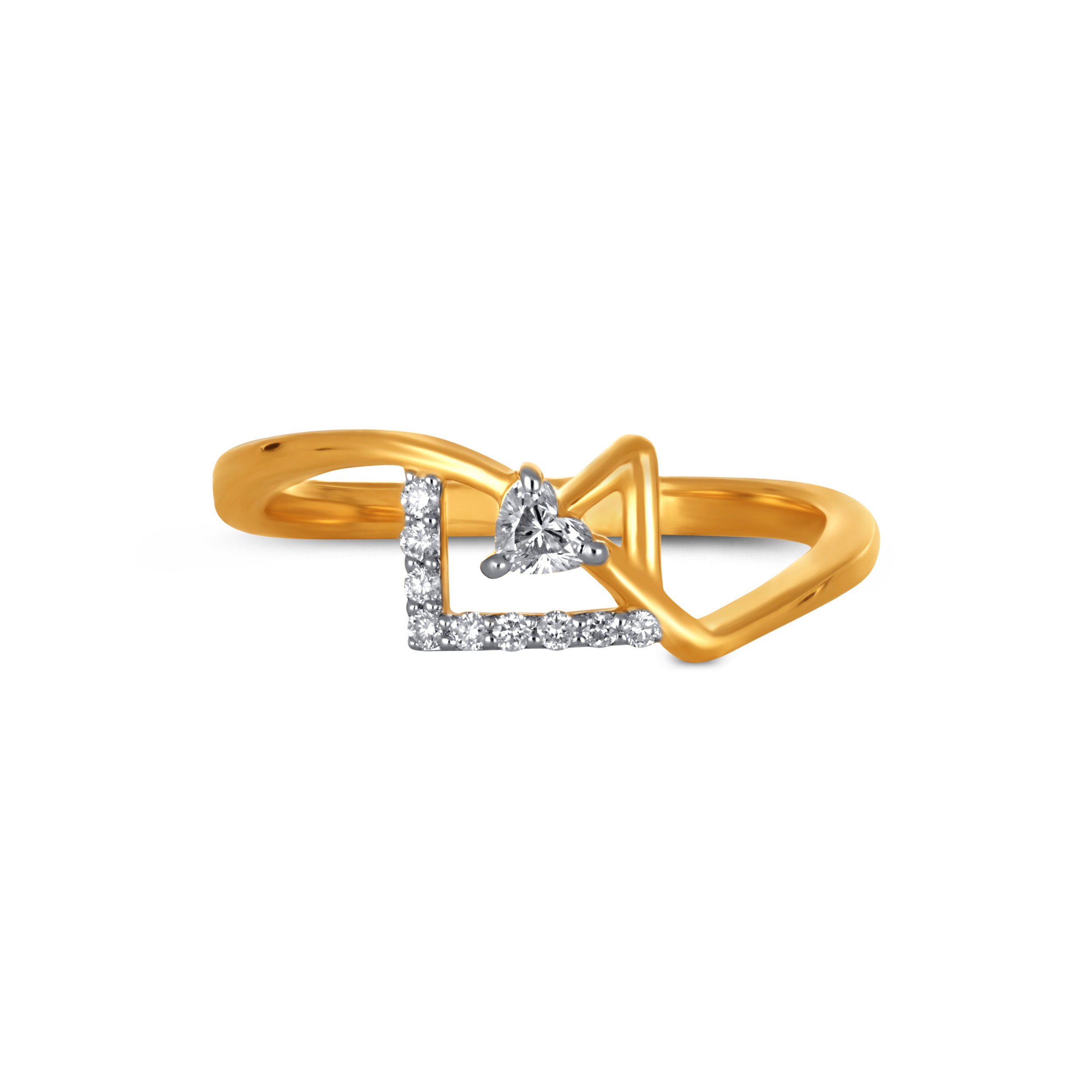 A modern expression of romance, this diamond ring showcases a heart-cut solitaire set within a sleek geometric frame. The fluid gold band and diamond-lined accent balance soft sentiment with clean lines, creating a refined statement that feels contemporary yet timeless, perfect worn solo or styled in a modern stack.