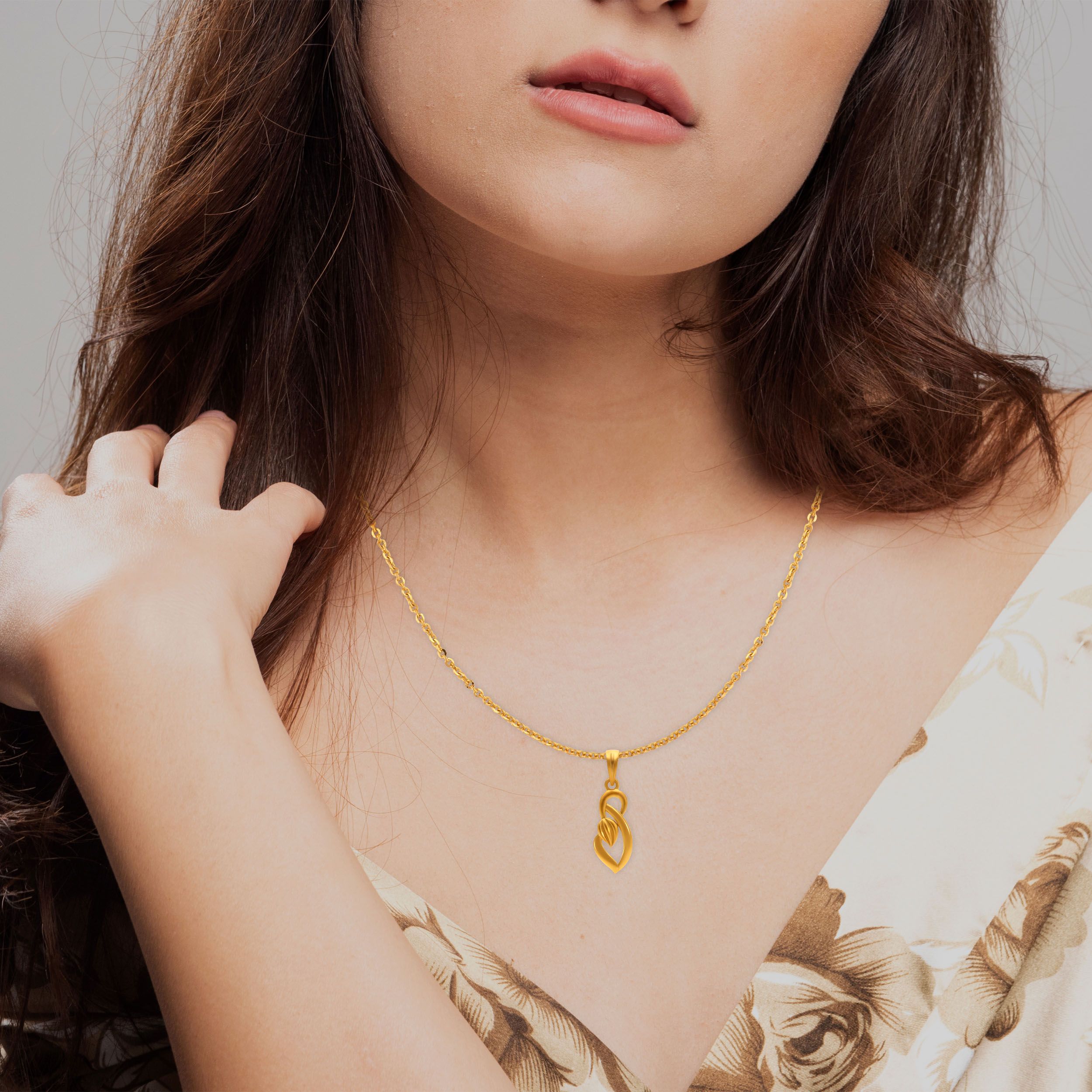 Fluid curves and a sculpted bud come together in this elegant pendant, creating a design that feels both modern and organic. The intertwining loop frames the textured motif, adding depth and gentle movement. Style it with layered chains or a sleek black dress for a contemporary look.