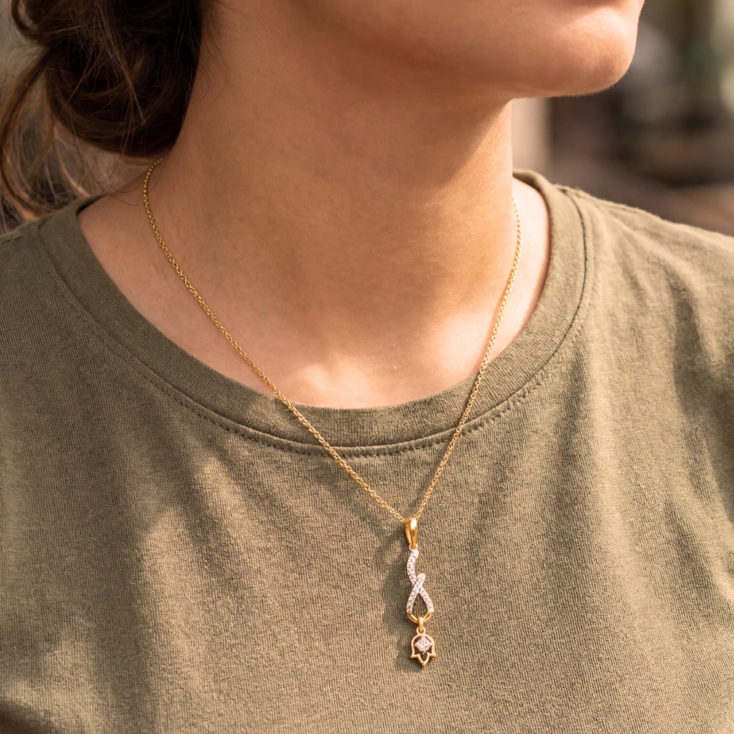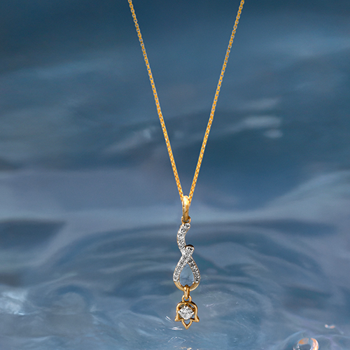Embrace eternal elegance with this dainty diamond pendant. A fluid, infinite-twist form in radiant gold is traced with diamonds and finished with a single sparkling accent. Graceful and expressive, it’s designed to move with you, lending quiet radiance to every moment.
