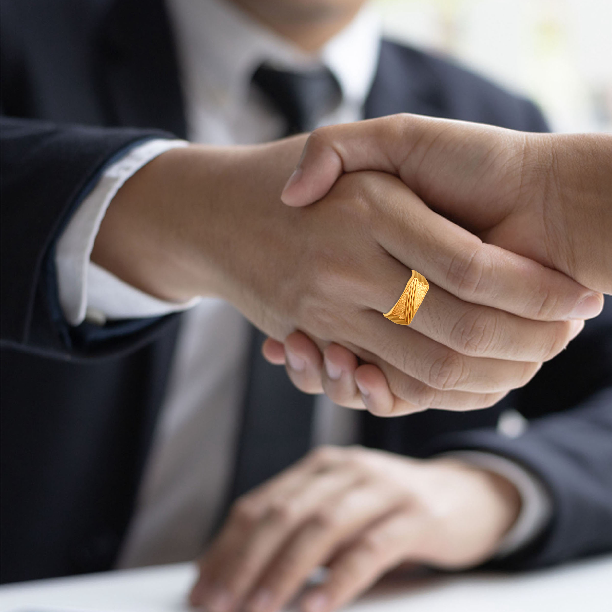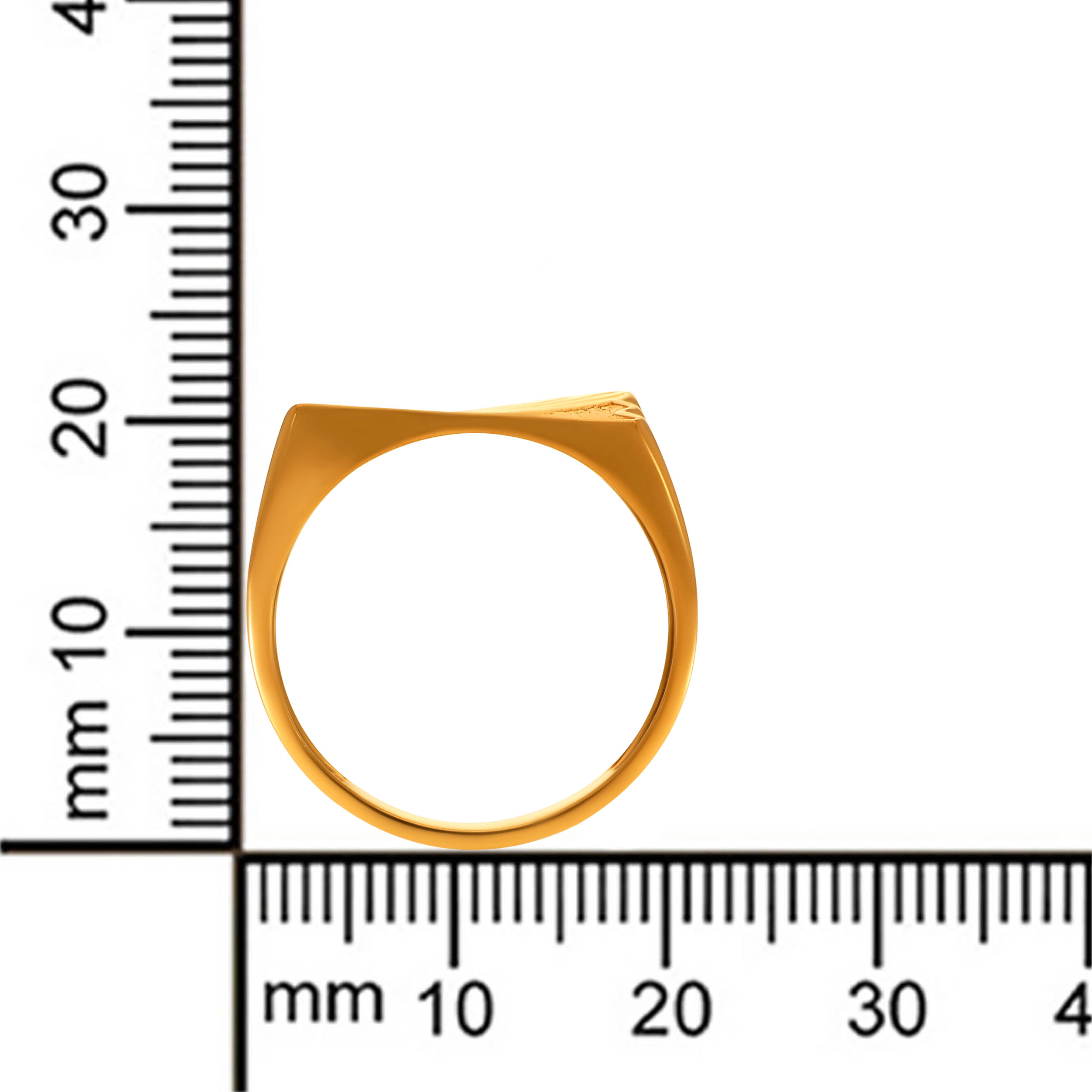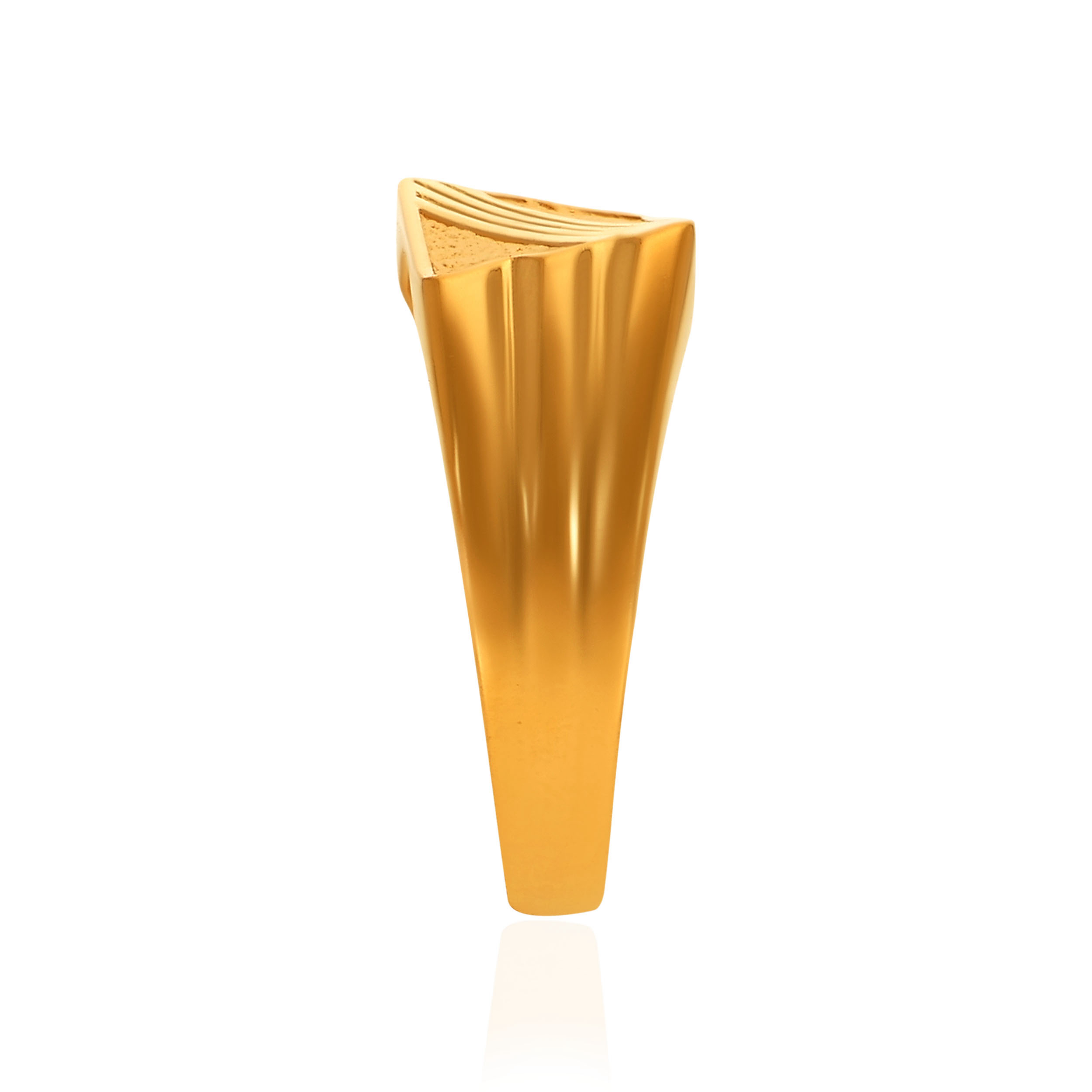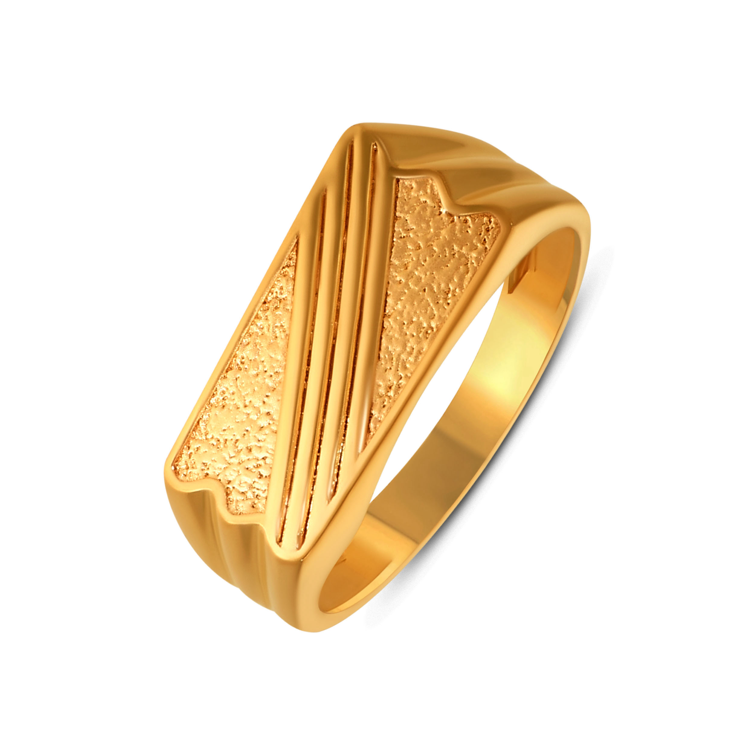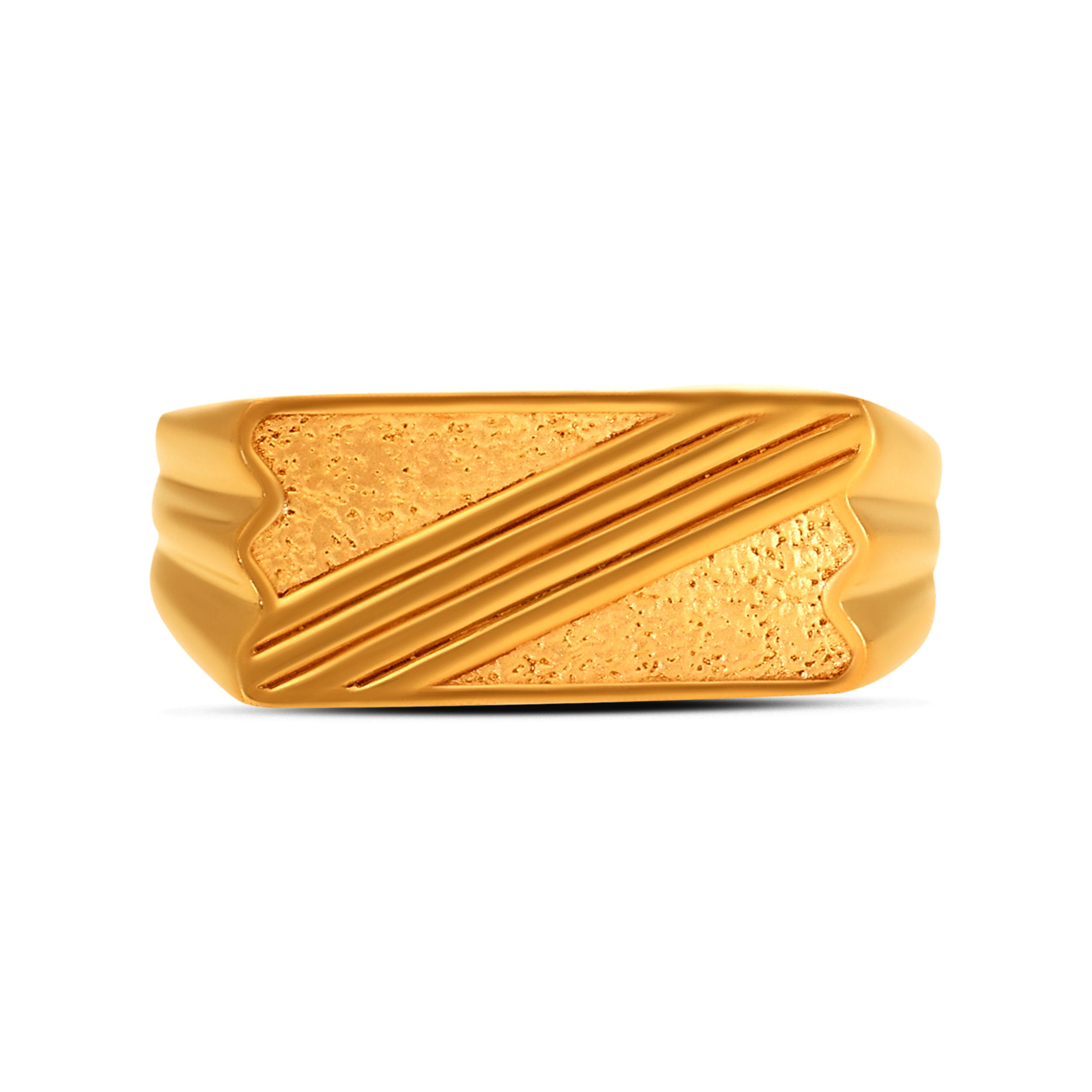 Mark your presence with clean precision. Defined by sharp facets and structured lines, this gold ring brings architectural strength to the forefront. Textured detailing meets polished edges for a look that’s controlled, confident, and deliberately bold. Style it with tailored shirts, dark denim, and leather boots for a sharp, modern edge.