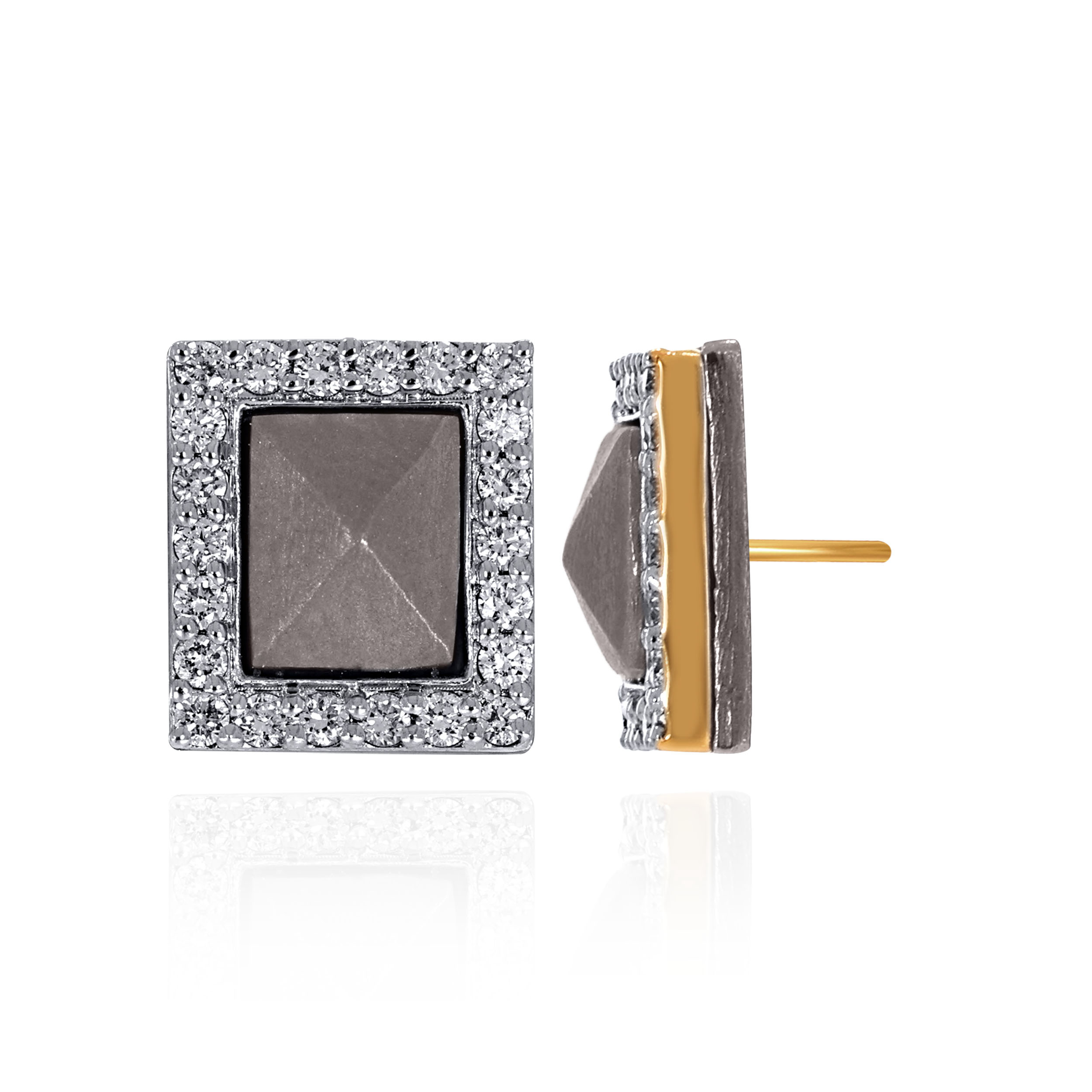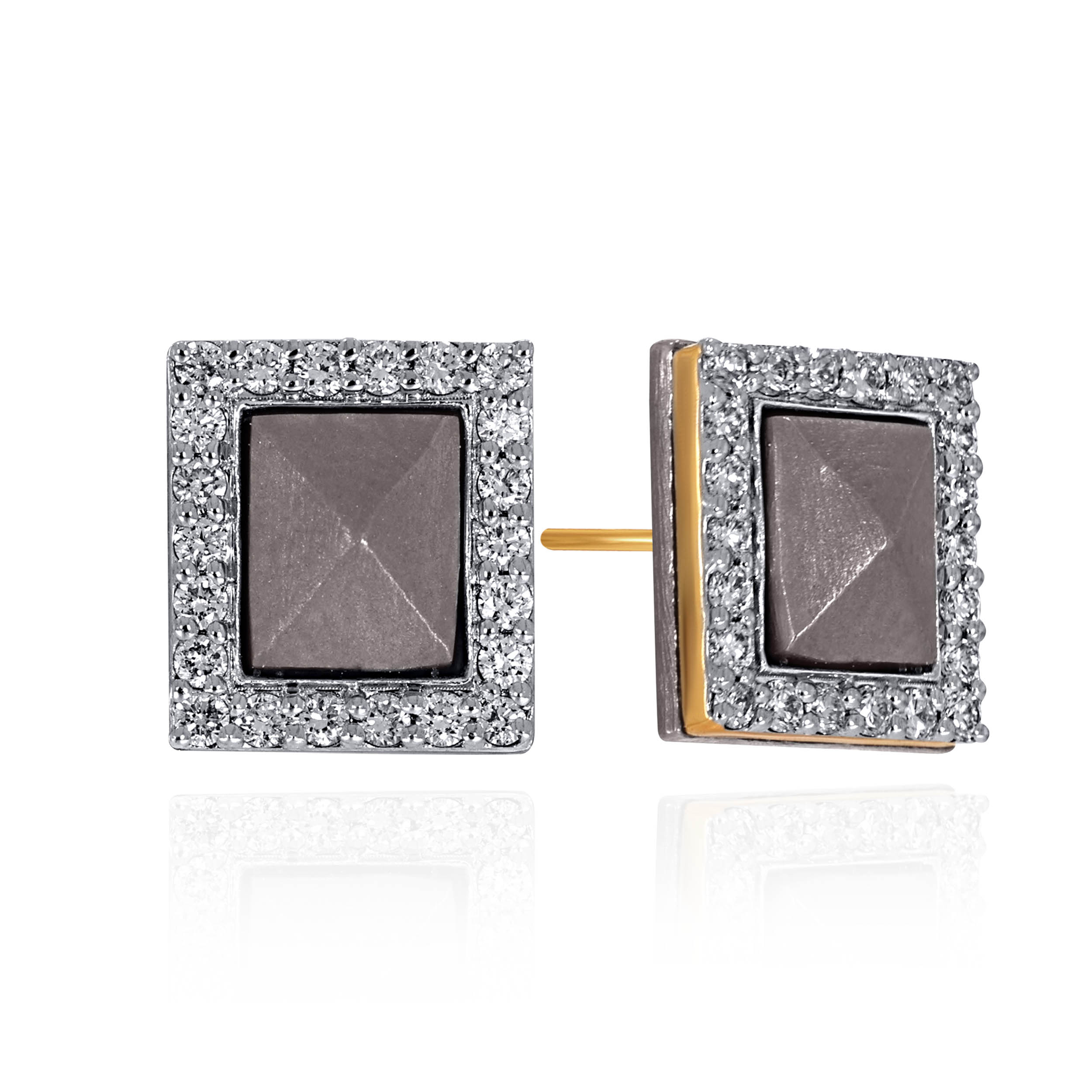 Crafted for men with a sharp sense of style, these square titanium studs combine clean geometry with controlled brilliance. A diamond-set frame surrounds a sculpted titanium core, creating contrast without excess. Strong lines and a structured finish make them ideal for polished, contemporary dressing. Designed to elevate your modern masculinity.