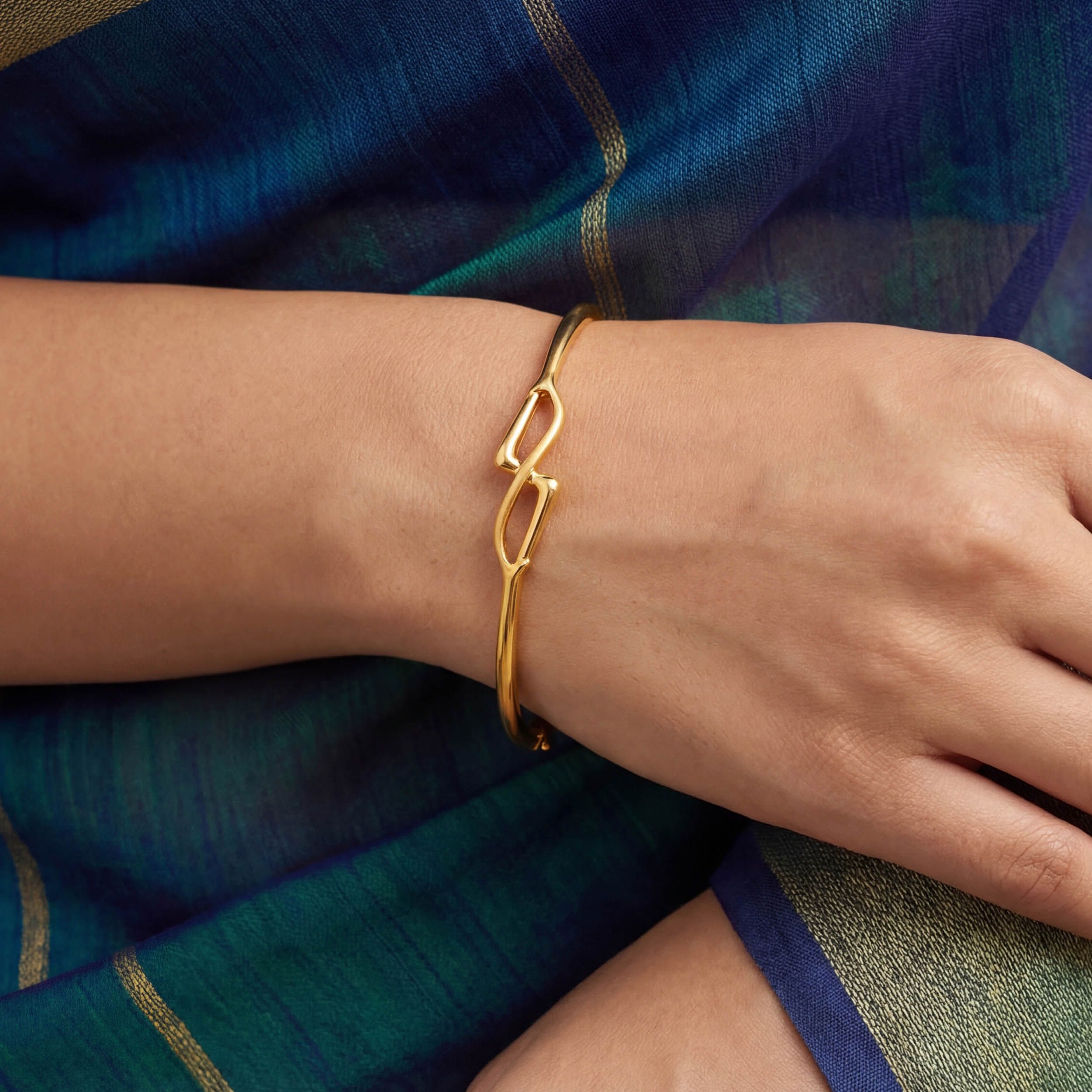 Bring elegance to your outfit with this refined gold chur, defined by a fluid twist at its centre. The sculpted detail adds subtle interest, while the slender form keeps the look clean and effortless. Style it with shirts, co-ords, or sarees for a polished, well-defined look.