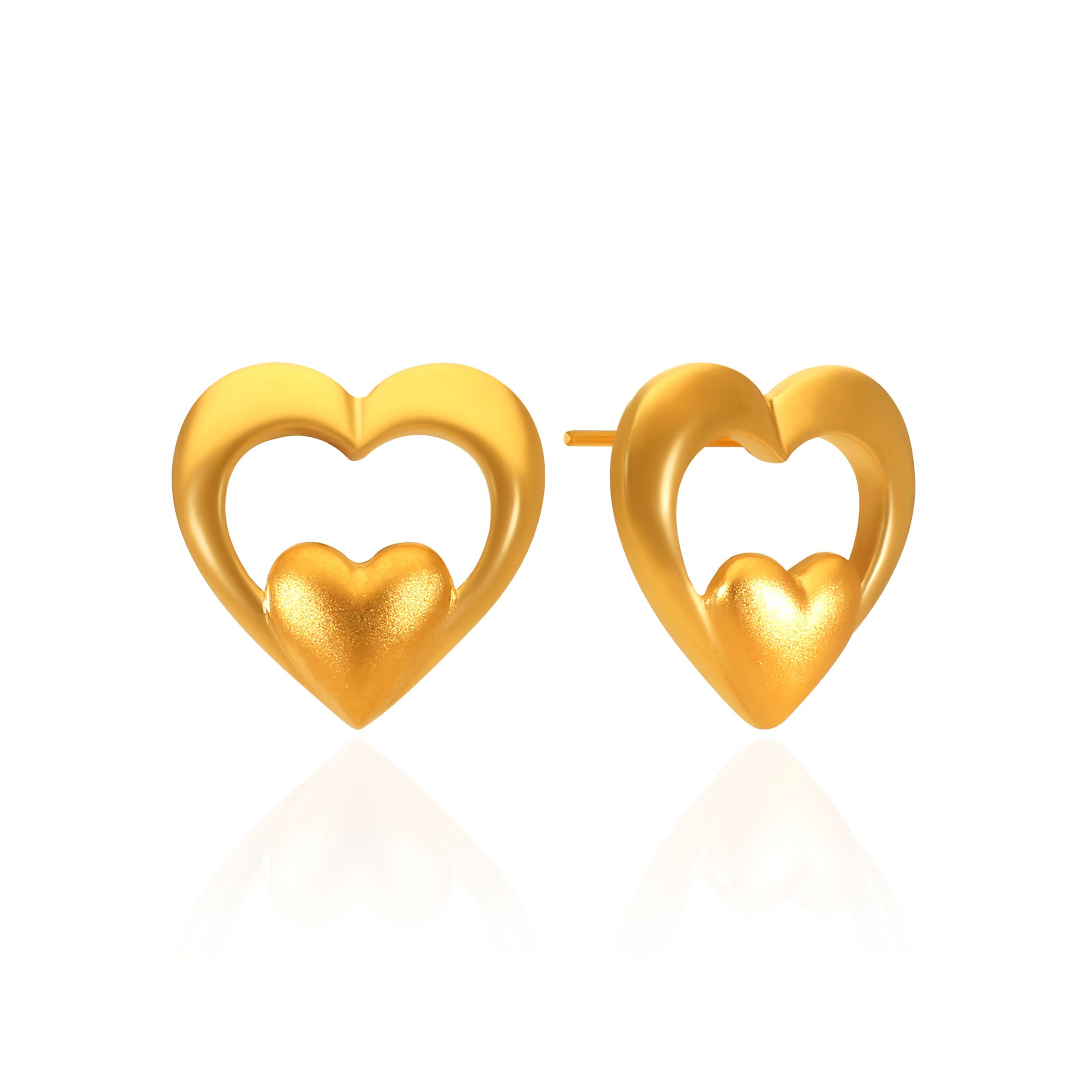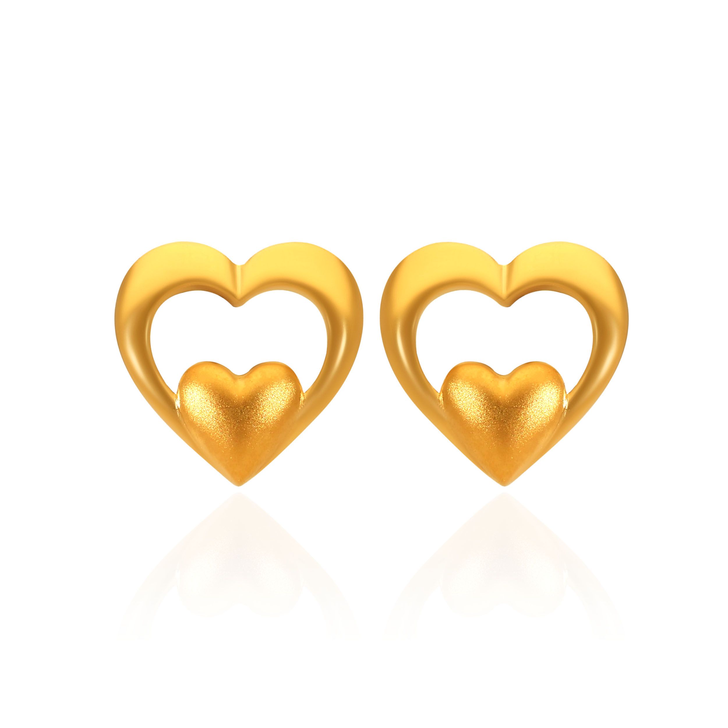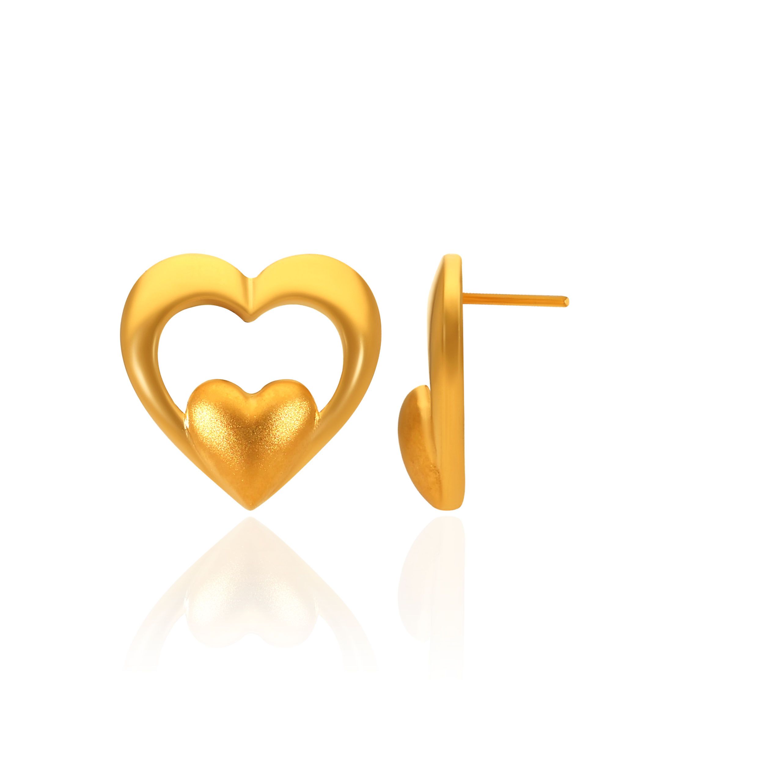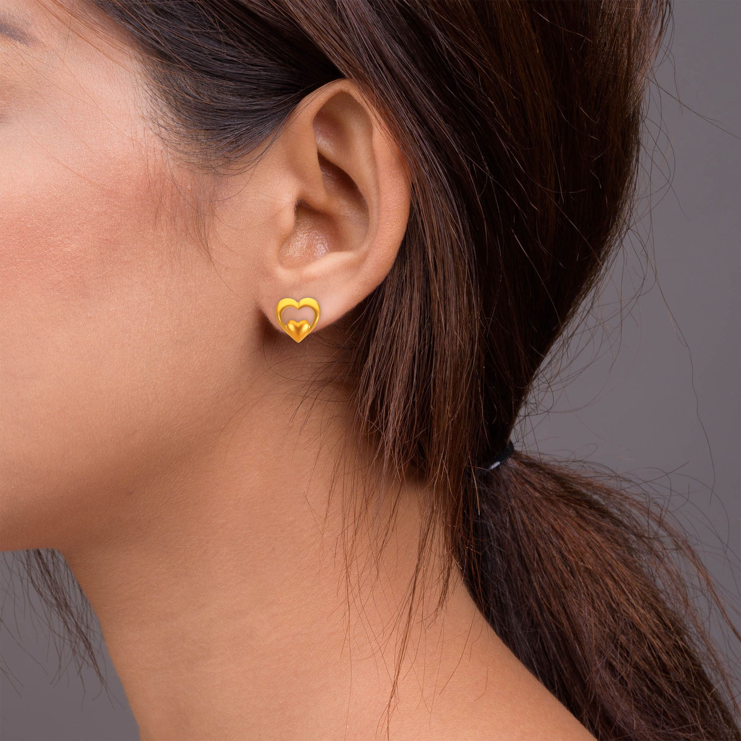 Delicate yet expressive, these gold studs feature a sculpted heart nestled within a fluid open frame. A minimal yet charming accent, perfect for adding a romantic touch to everyday styling. Pair them with crisp shirts or soft ethnic silhouettes for an effortless finish.