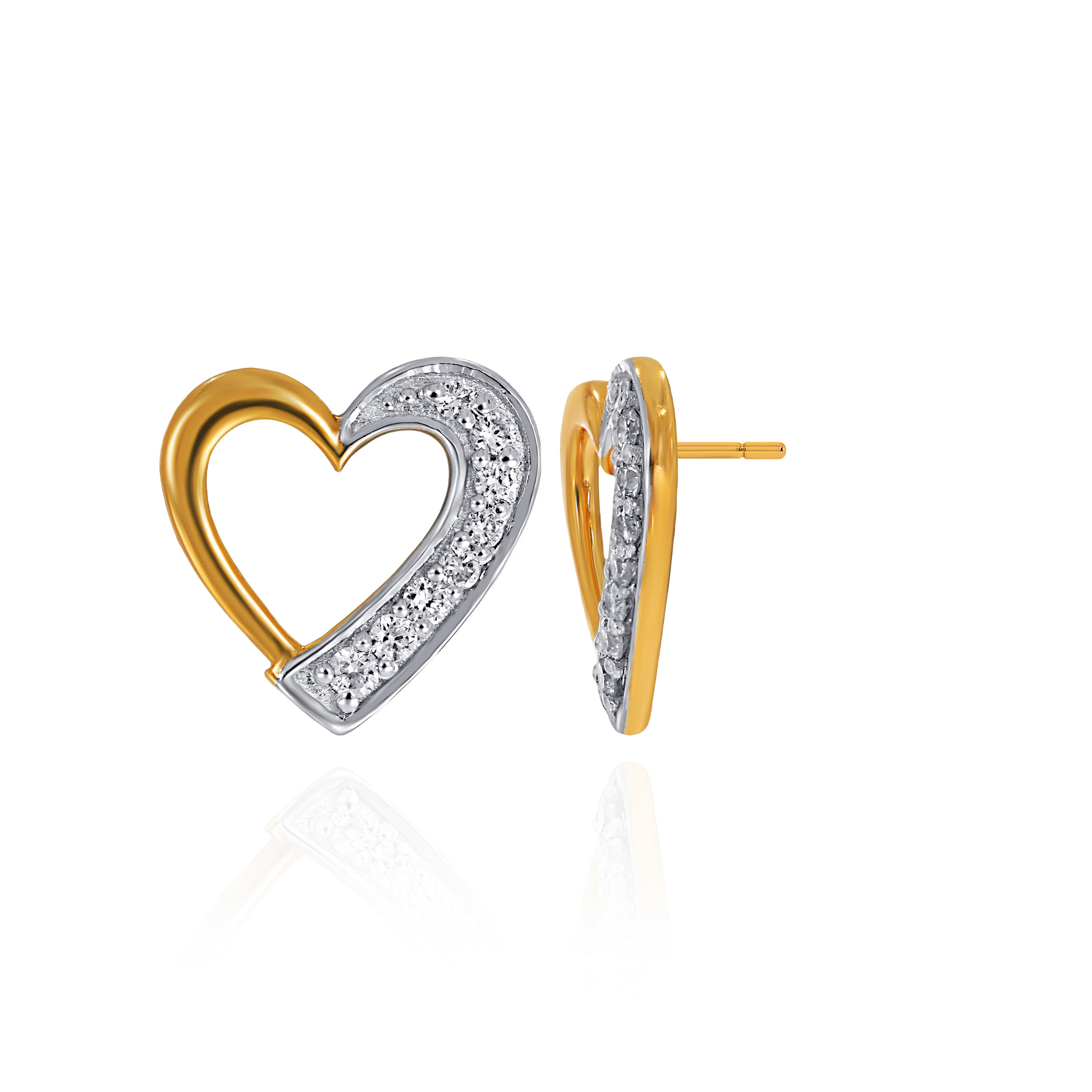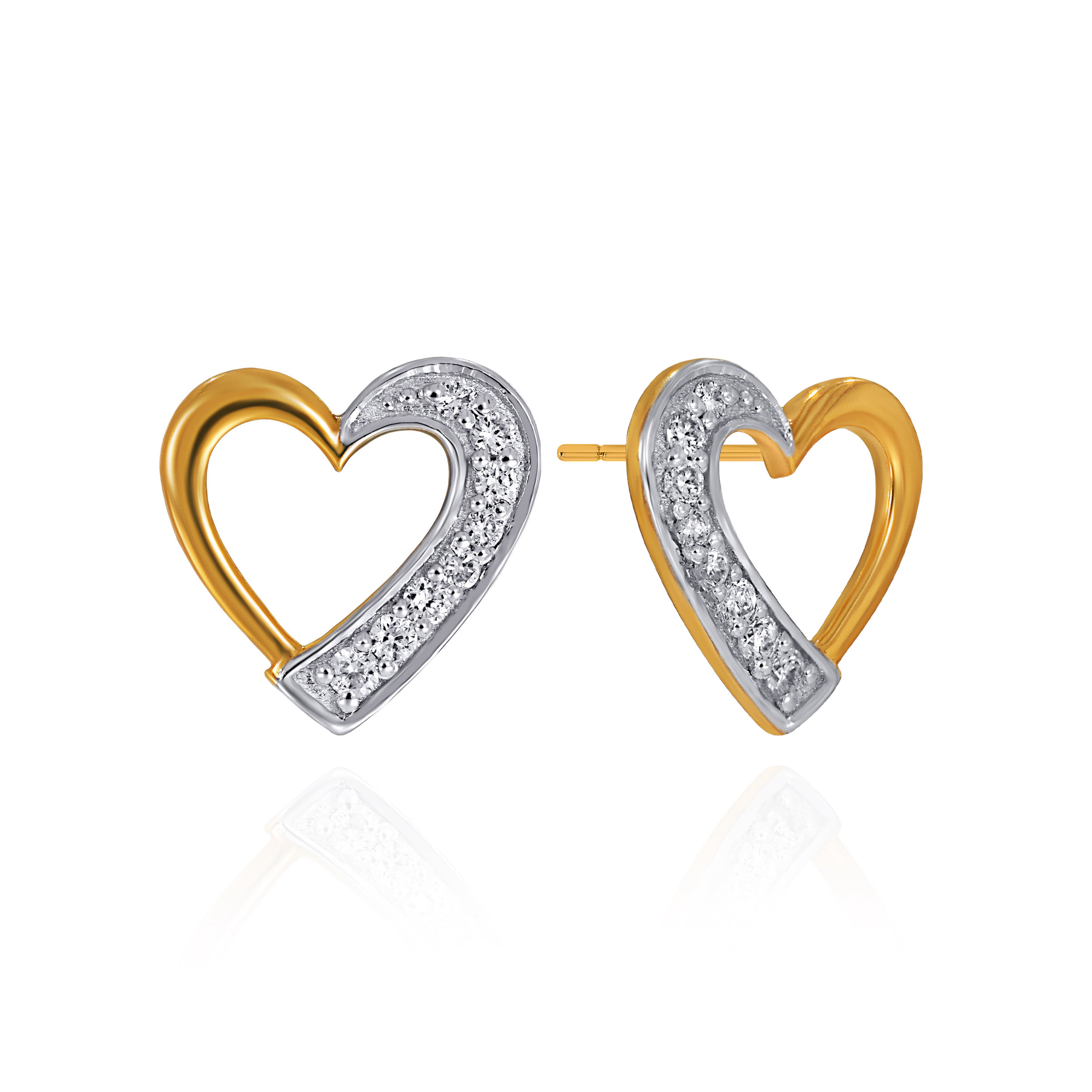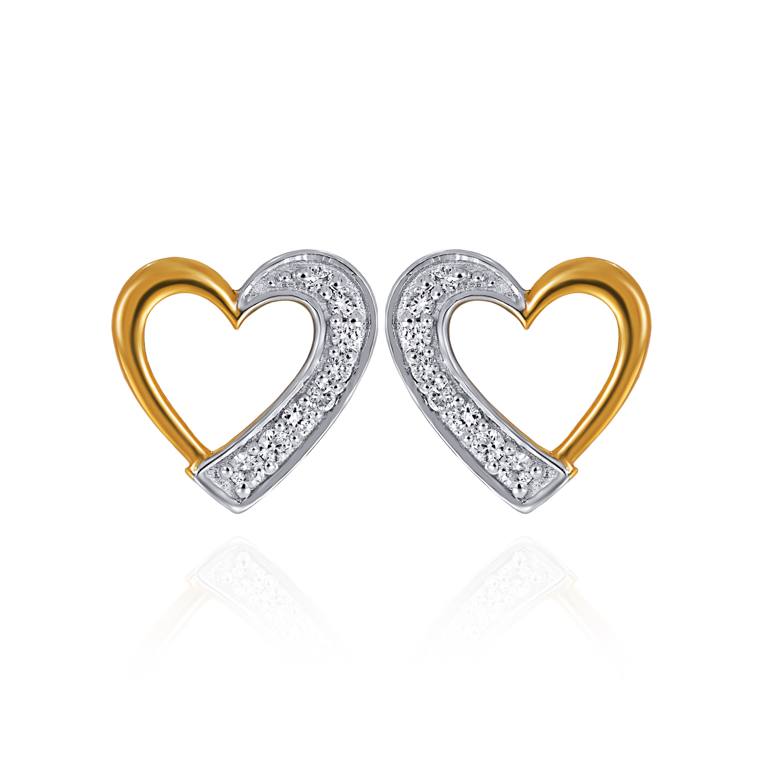 Wear your heart with effortless elegance in these dual-toned studs. The open-heart silhouette pairs polished gold with shimmering diamonds set in cool rhodium, creating striking contrast and soft radiance. A classic symbol reimagined with contemporary refinement, perfect for everyday romance and meaningful moments alike.