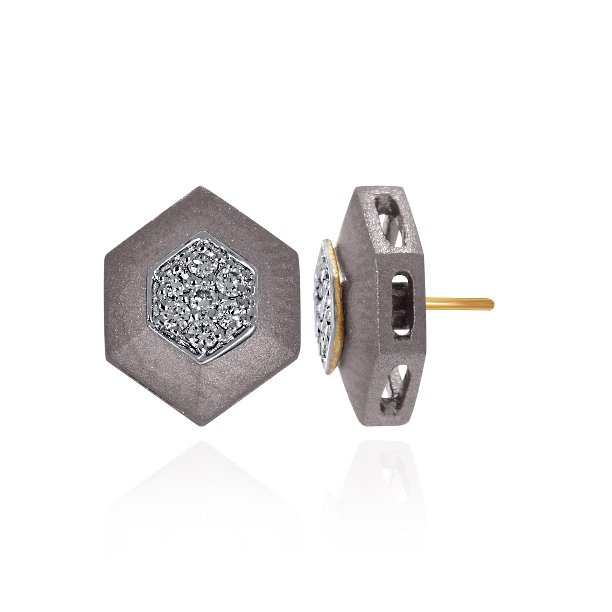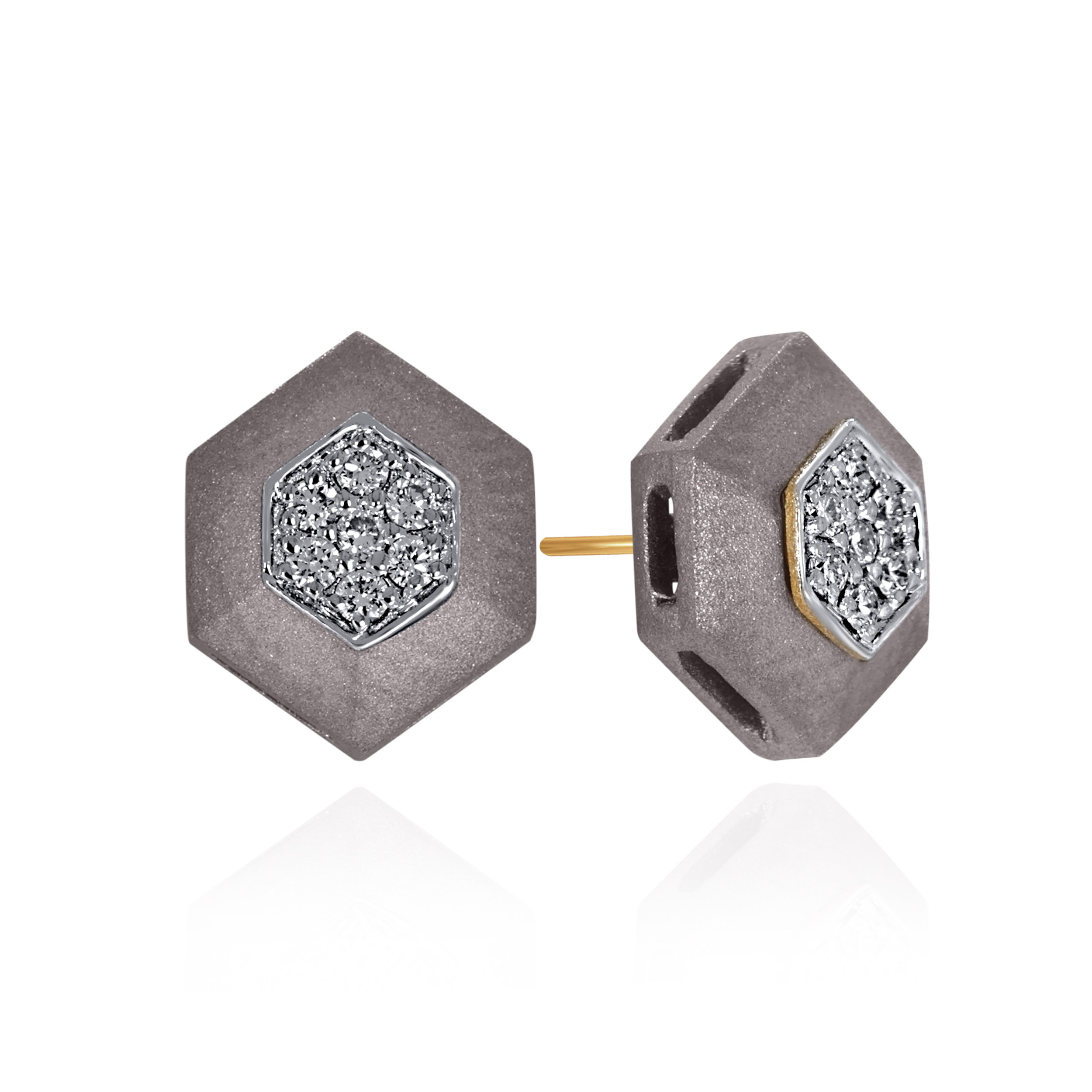 Inspired by strength in symmetry, these hexagonal titanium diamond studs are designed for men who value bold form with restraint. The clean, minimal design keeps the look grounded and unmistakably masculine. Distinctive yet controlled, they reflect structure, balance, and quiet confidence. Style them with tailored shirts, dark tees, or structured jackets for a sharp, modern finish.