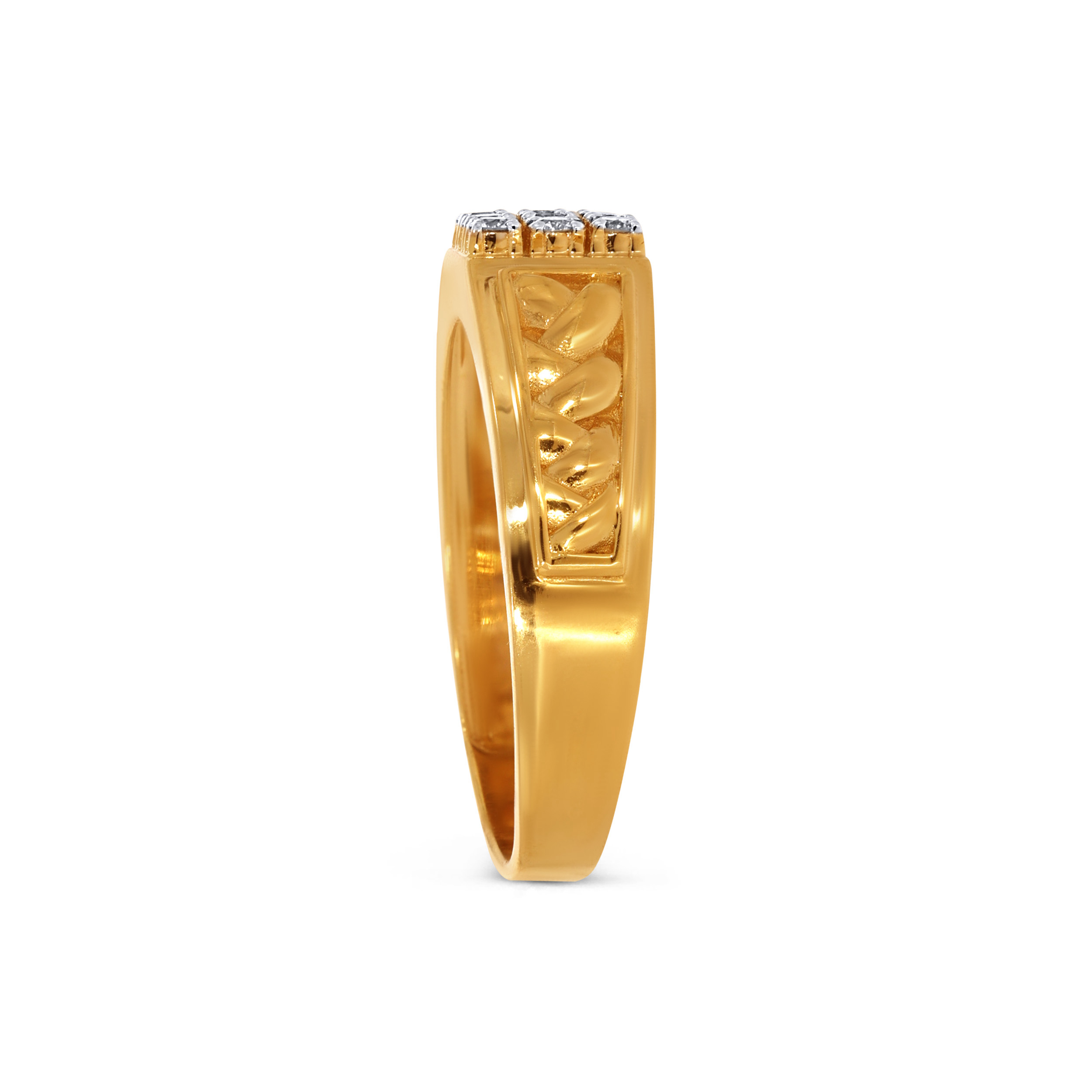 Defined by its ornate pattern and neatly arranged sparkling centre, this ring offers a timeless, elevated appeal. A strong accent that works across casual and formal styles. Pair it with structured shirts or minimal outfits for a sharp, cohesive look.