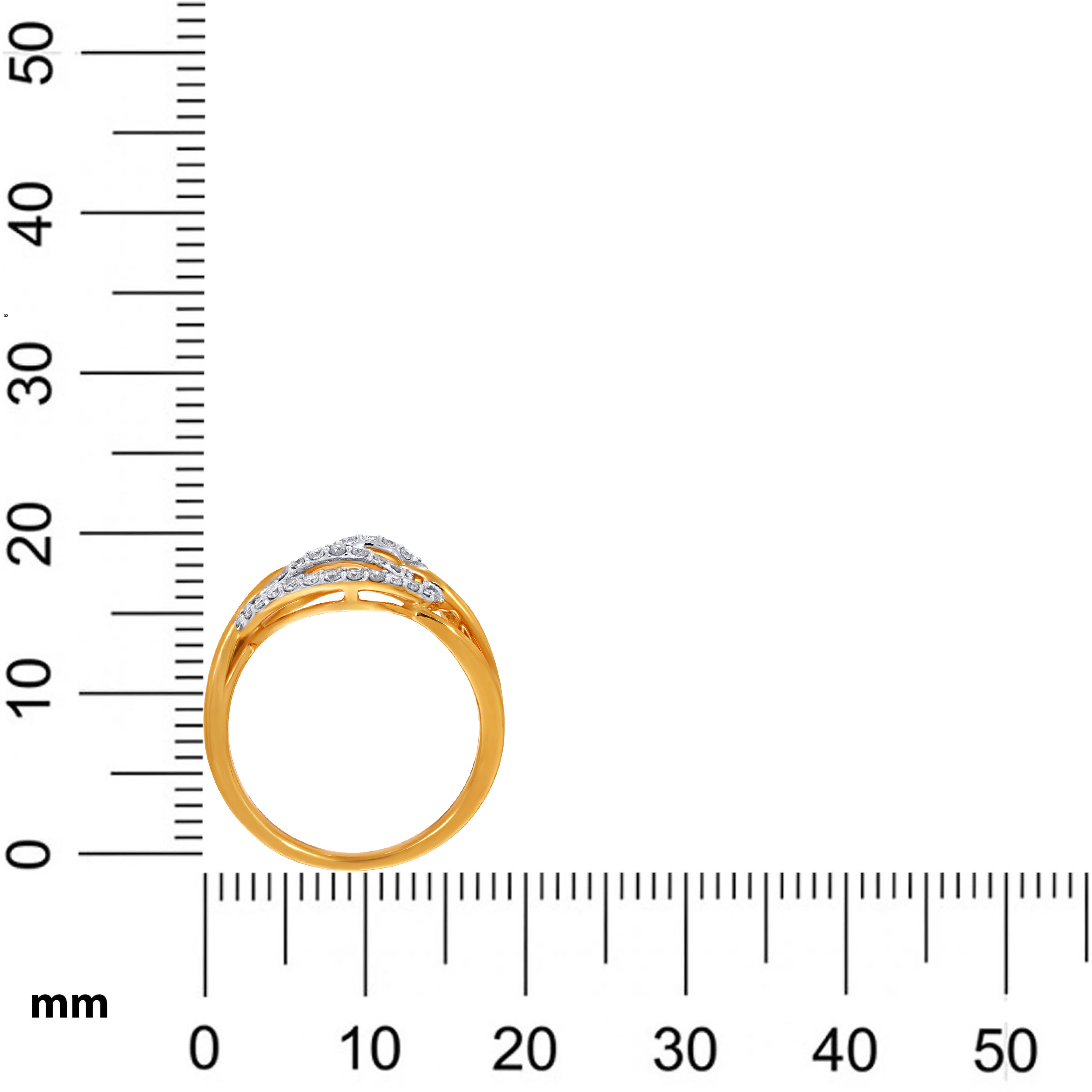 Crafted to dazzle, this elegant gold ring features a twin swirl design lined with brilliant-cut diamonds. The fluid curves create an illusion of infinite sparkle, blending modern finesse with timeless charm. An exquisite pick for everyday glamour or special soirées.