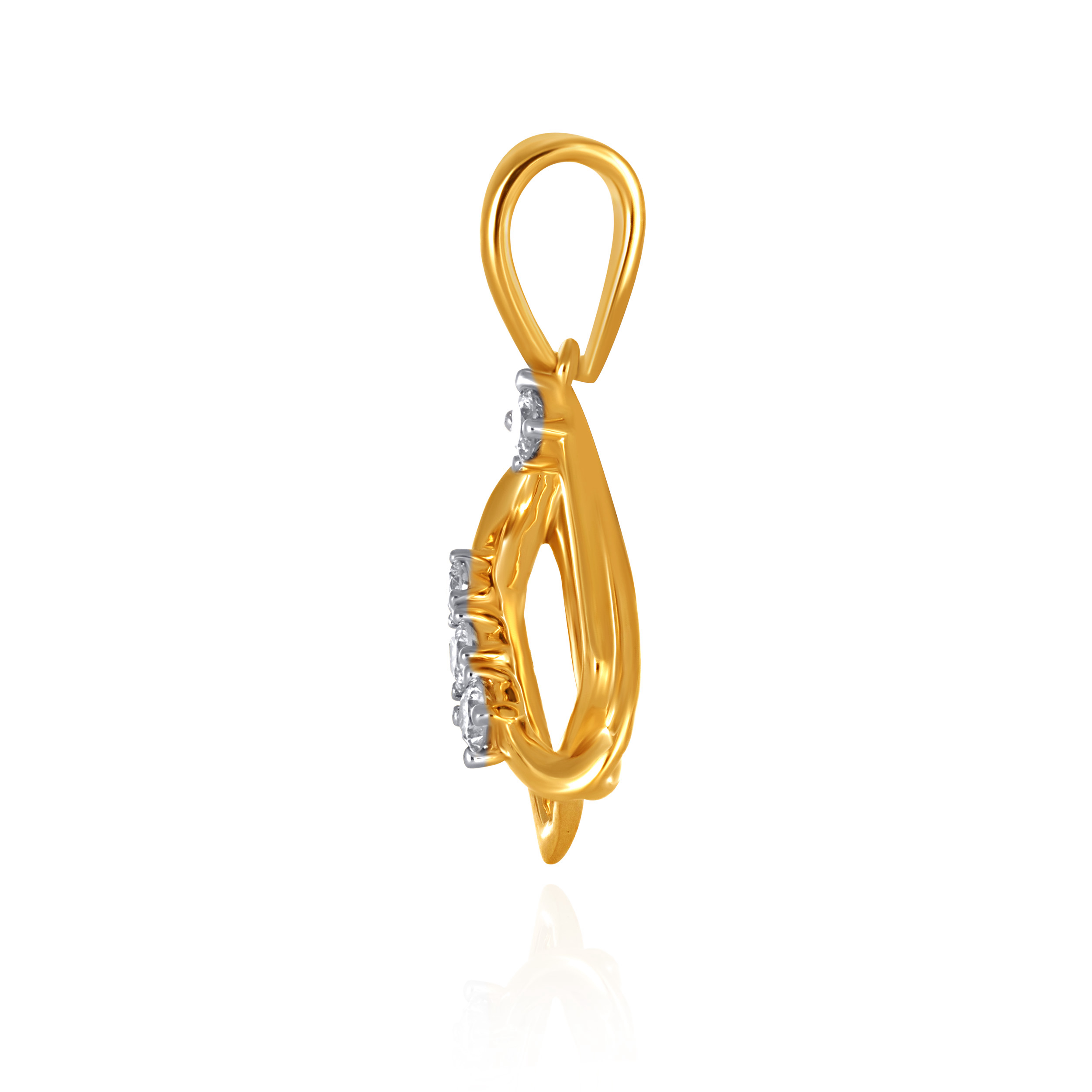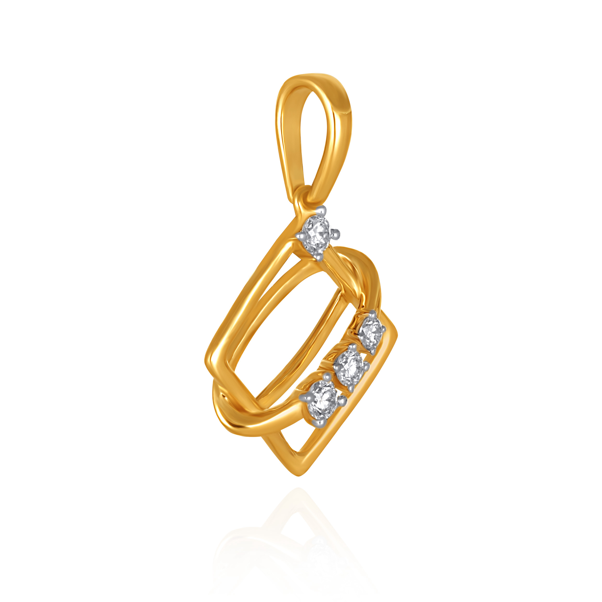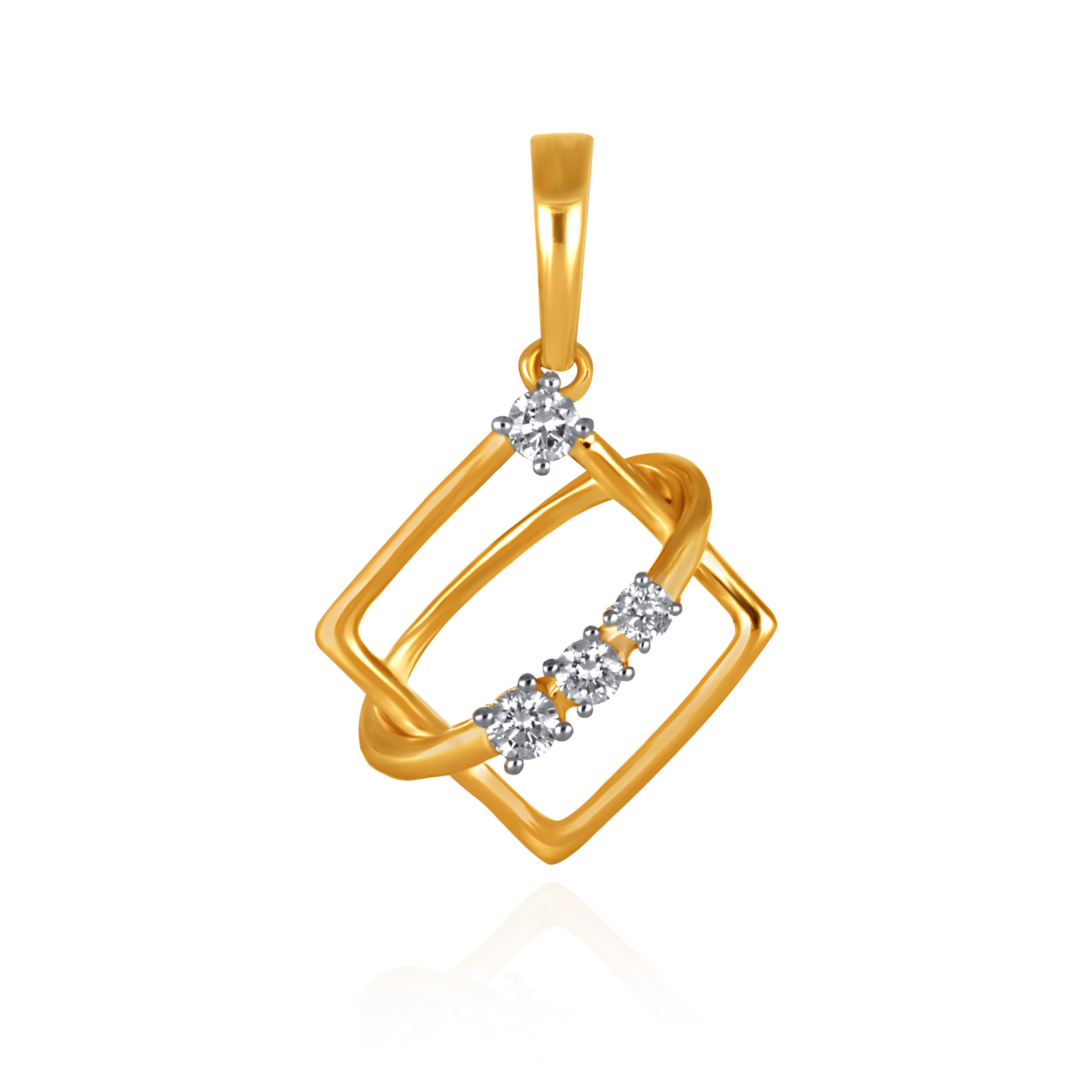 Clean lines meet fluid form in this modern diamond pendant, where interlocking gold frames create a sculptural silhouette accented with a delicate trail of diamonds. Style it with open necklines, tailored shirts, or layered chains to add a polished finish that moves effortlessly from workdays to evenings out.