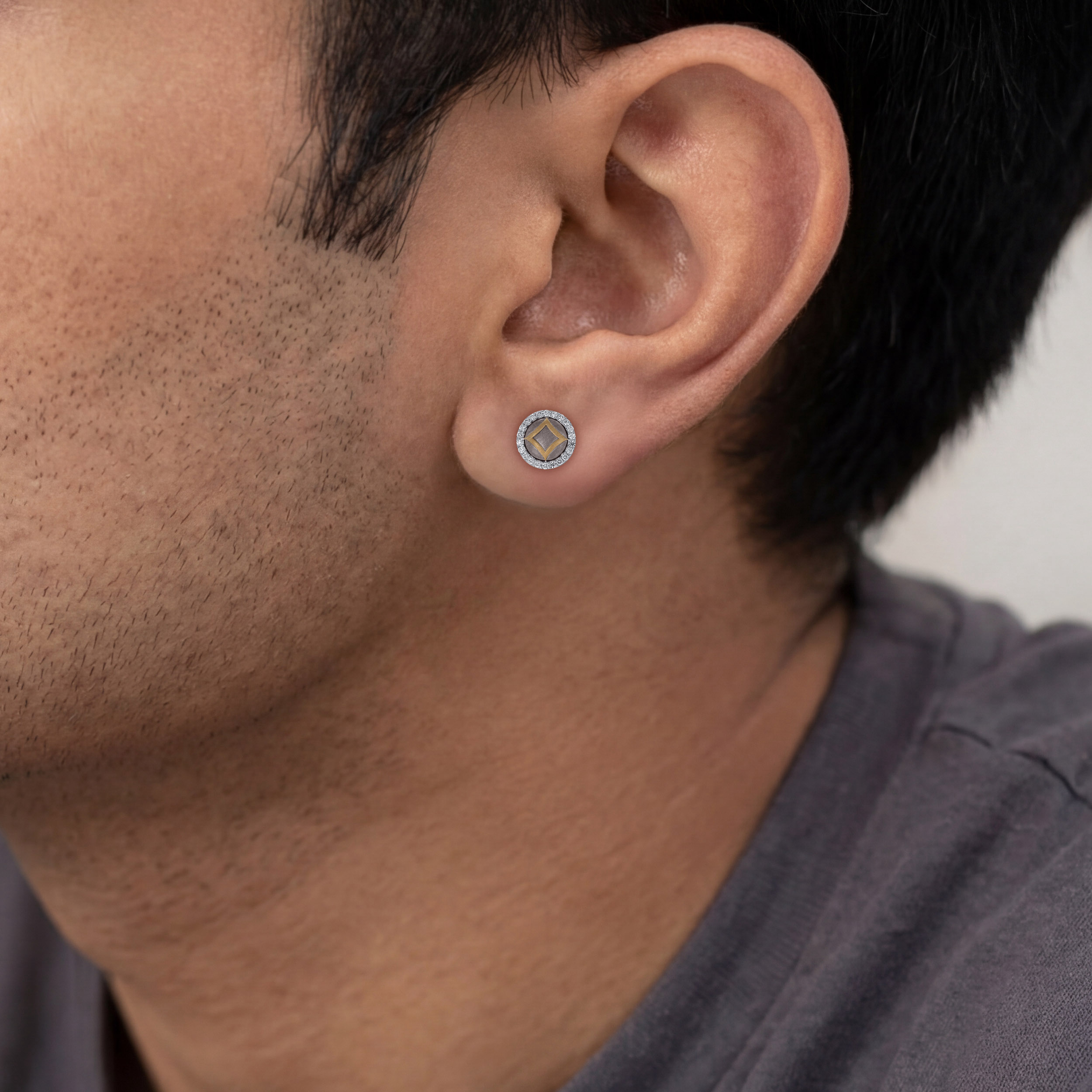 Crafted from high-performance matte titanium, these diamond studs deliver a modern, architectural update to a classic essential. The deep grey metal creates a strong masculine contrast against the brilliance of the diamonds, balancing rugged character with refined detail. Designed to sit close to the ear, they offer a low-profile statement for men who value durability, precision, and quiet luxury.