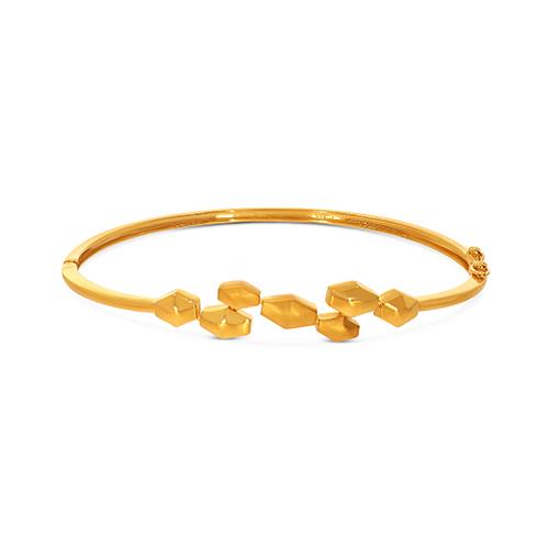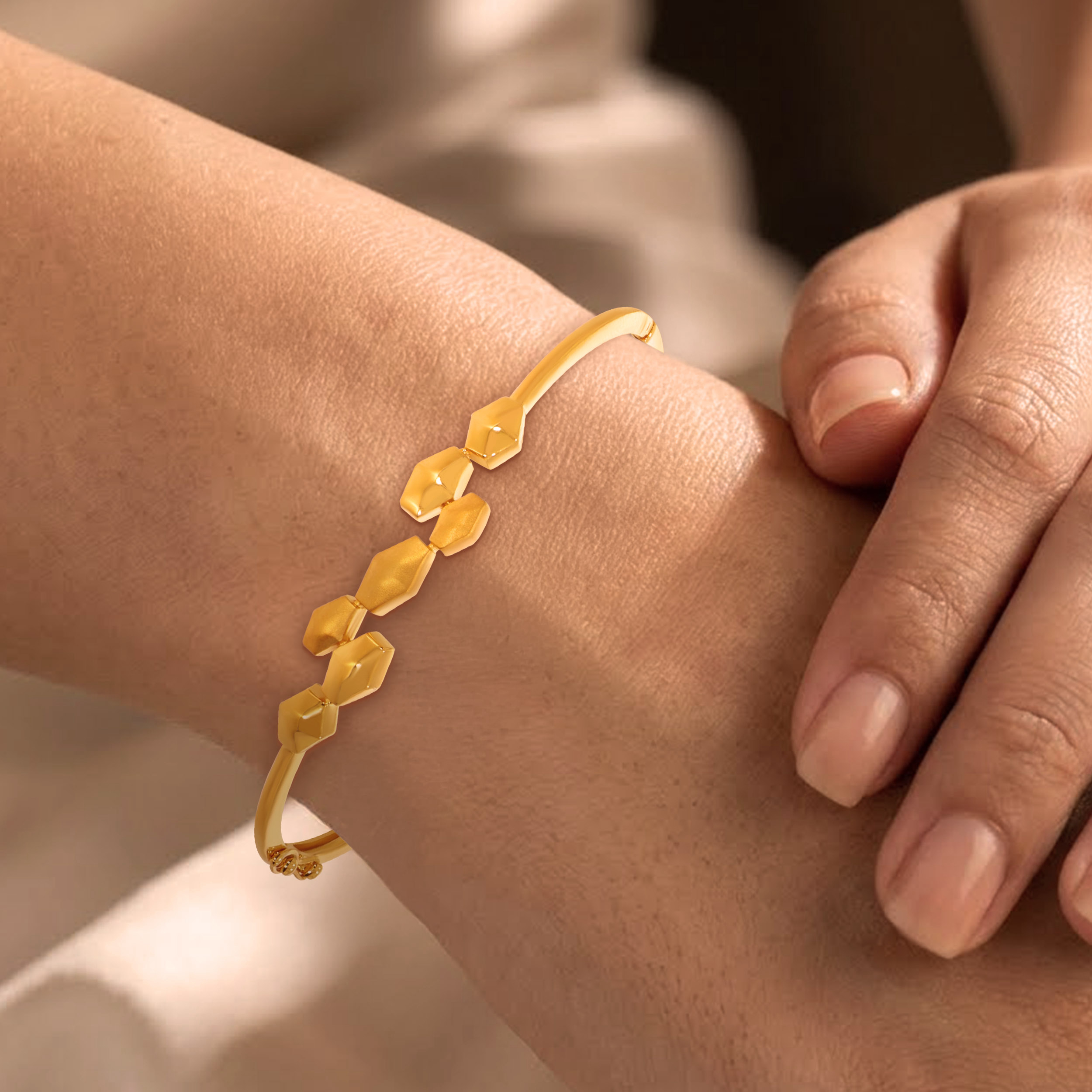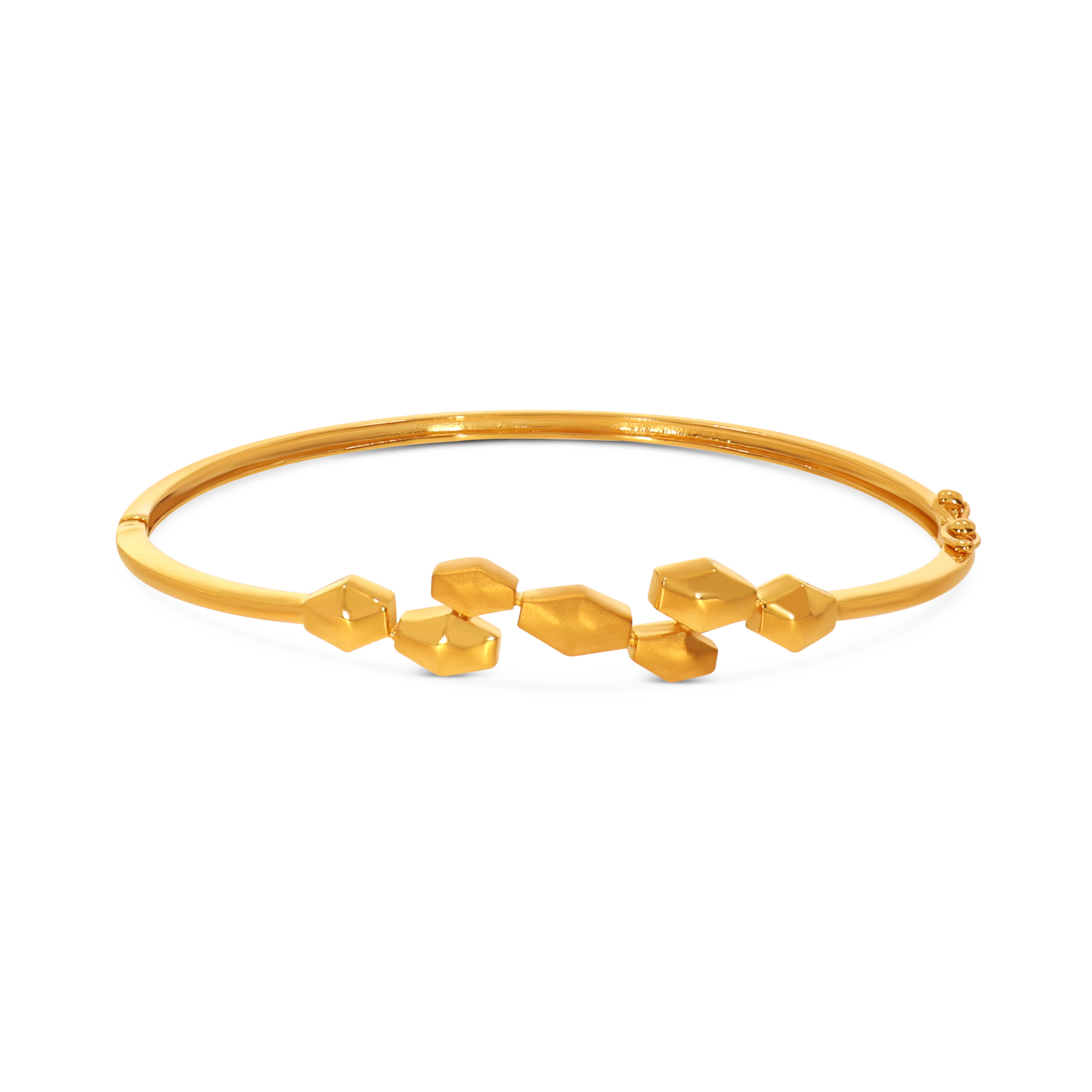 Add a refined finish to your ensemble with this minimalist gold chur, featuring sculpted geometric accents set along a sleek, minimal frame. Modern yet understated, it pairs effortlessly with everyday looks and polished festive attire.
