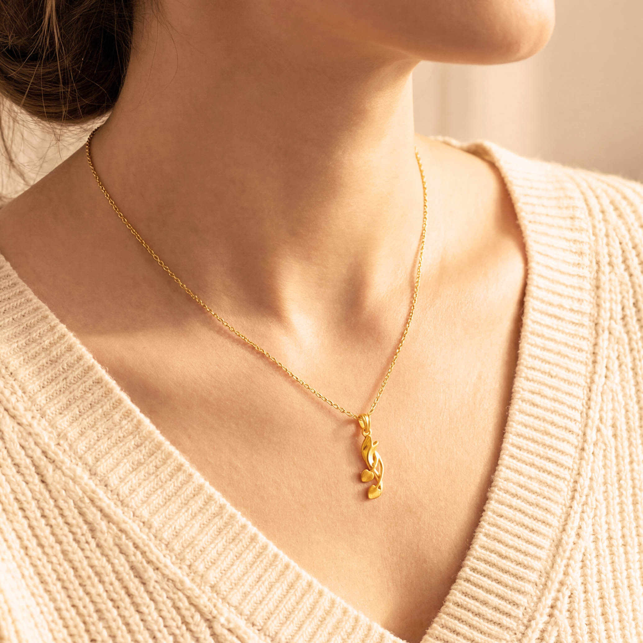 Smooth curves flow into delicate heart motifs, creating a graceful, lightweight design. Minimal yet expressive, this 9K gold pendant is made for easy styling, from day to night.