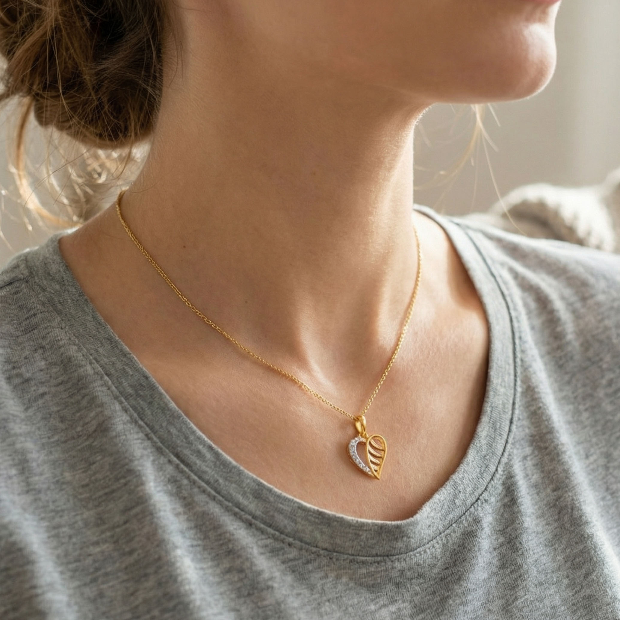 An asymmetrical heart shape gives this diamond pendant a fresh, modern edge, blending sparkling accents with sculpted lines. Lightweight and refined, it captures a sense of movement and organic elegance.