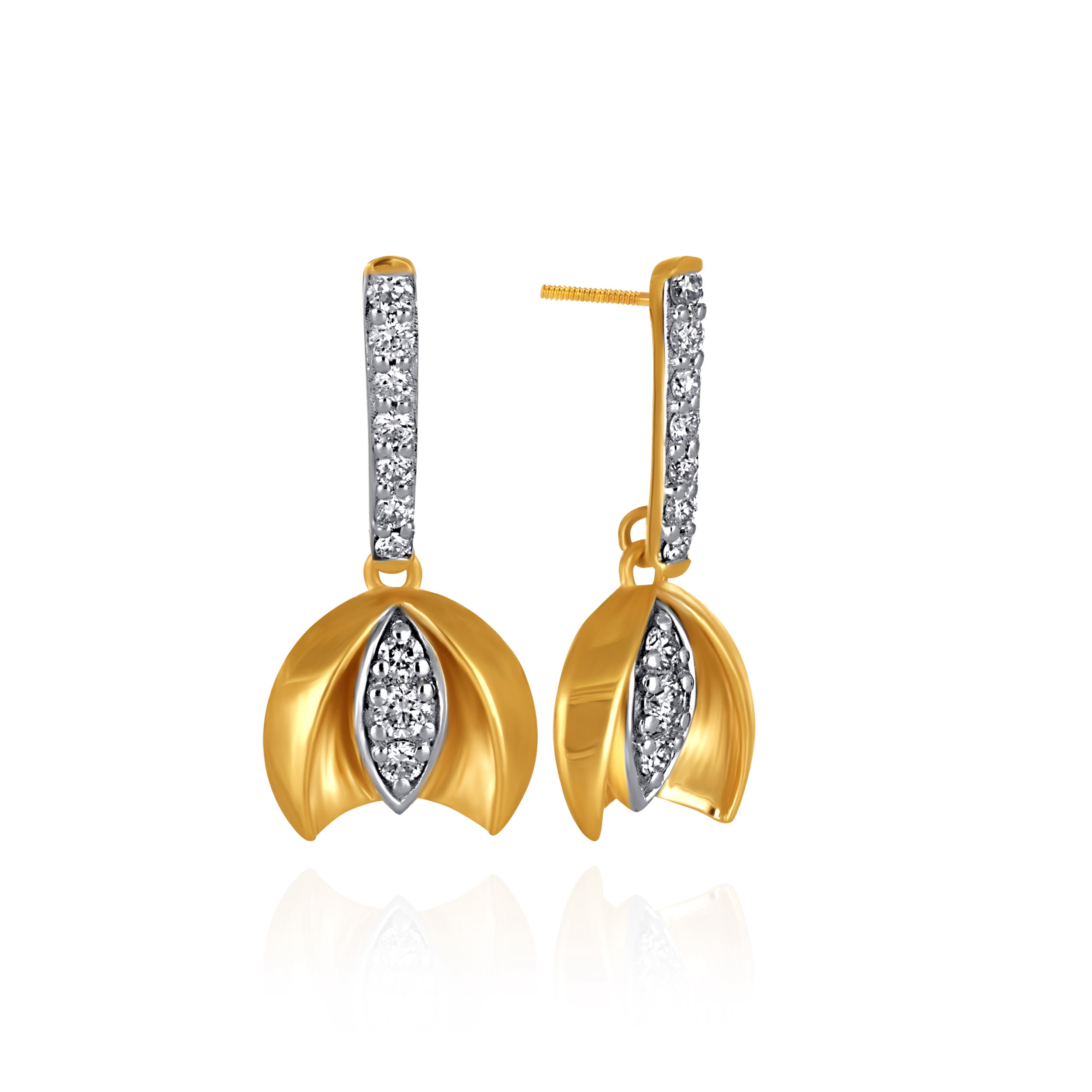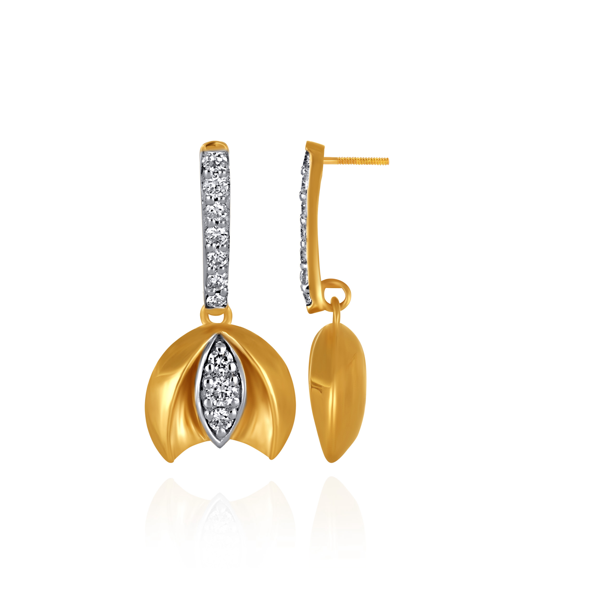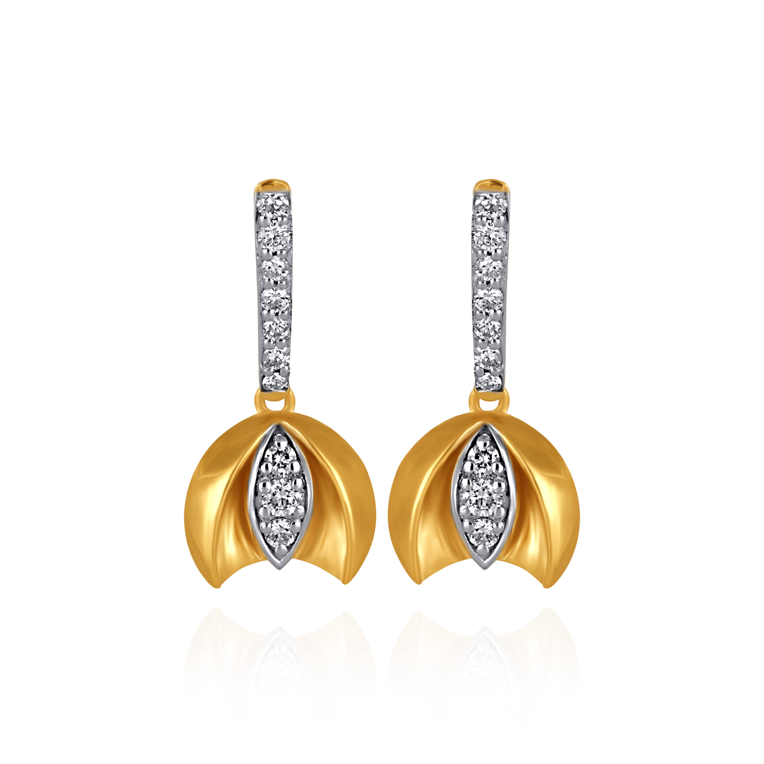 An expression of modern romance, these diamond drop earrings feature petal-like gold forms accented with luminous diamonds. Effortlessly elegant, they are made to accompany promises, milestones, and memories that endure.