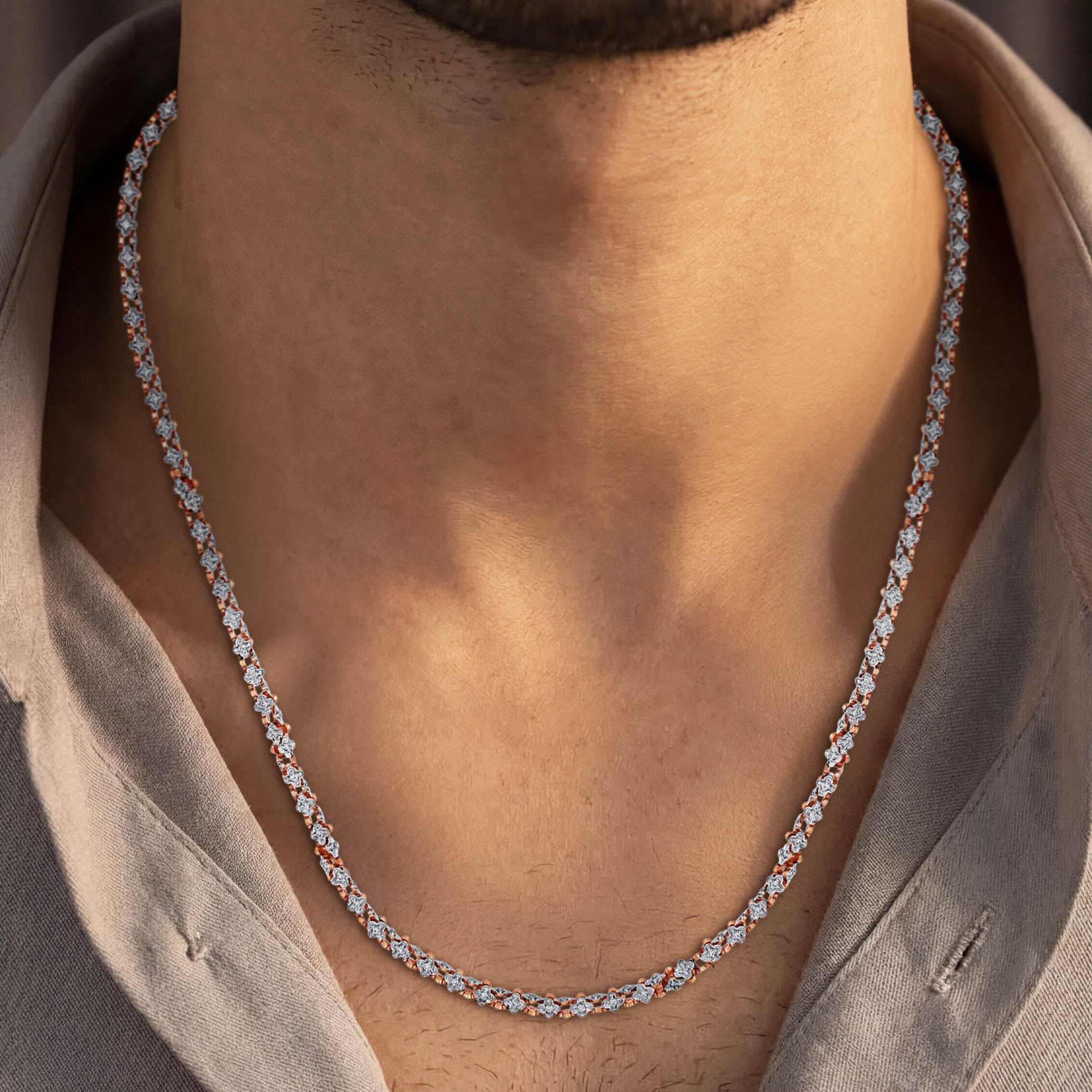 Understated brilliance meets timeless design in this luxurious diamond chain for men, crafted in gold. Adorned with a continuous line of meticulously set diamonds, it is designed for quiet sophistication. The seamless balance of sparkle and simplicity gives this piece enduring appeal, transcending trends and occasions.
