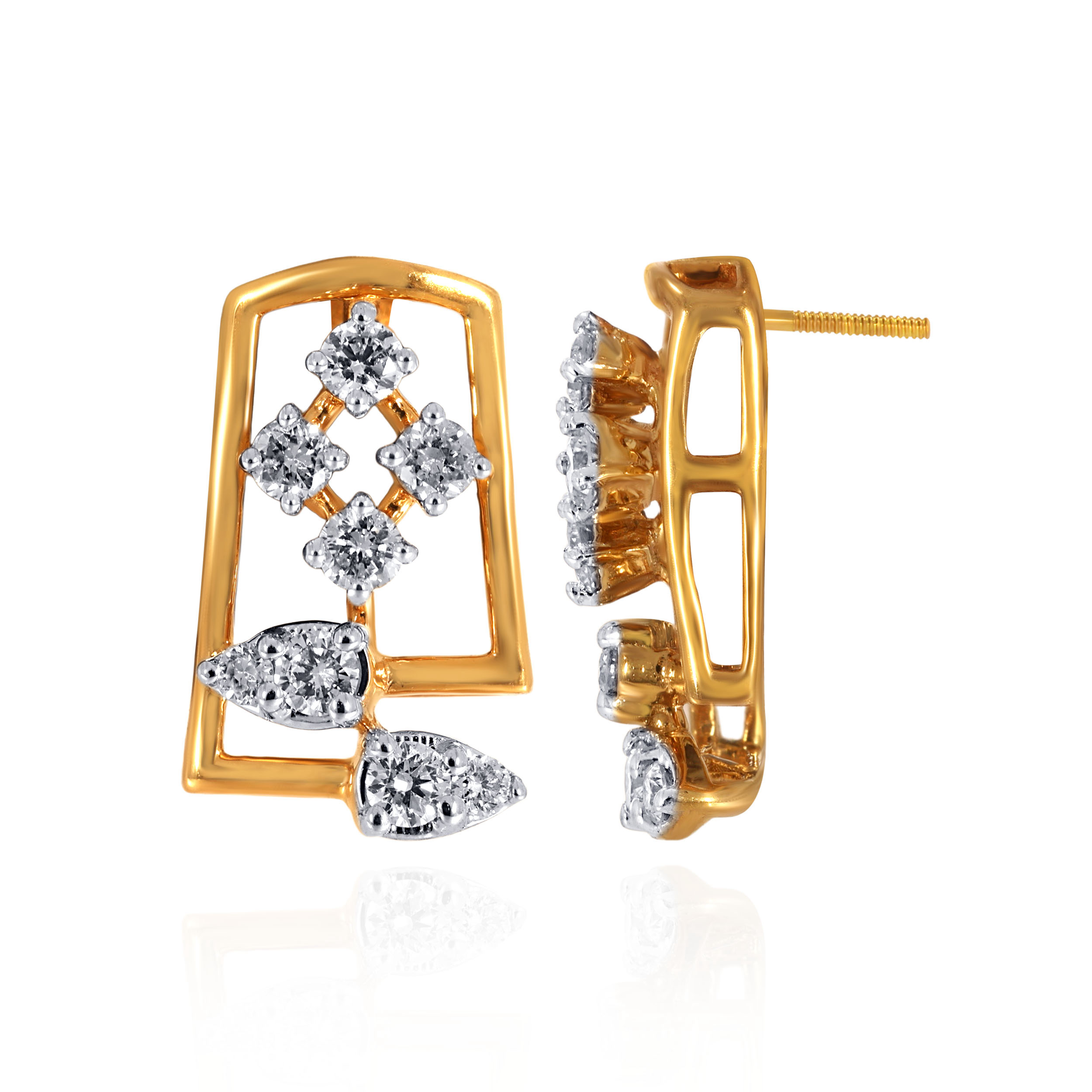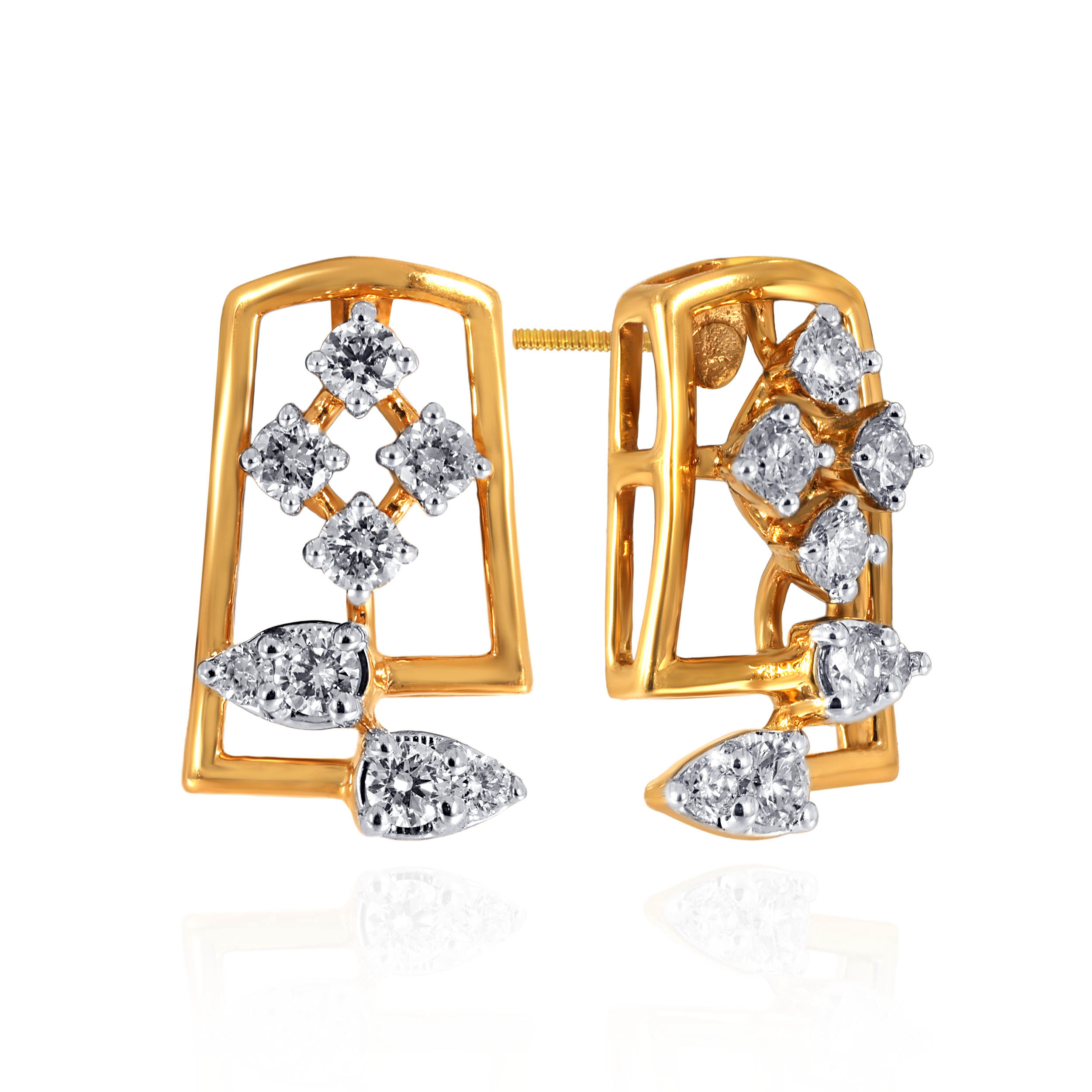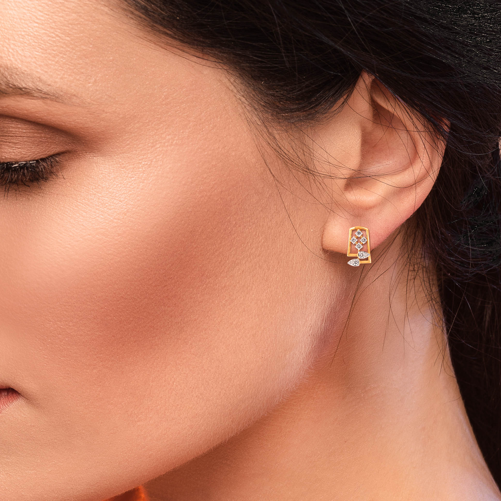 Add depth and dimension to your silhouette with these architectural diamond studs. The open-frame design creates a sense of lightness, while artfully placed diamond accents bring structure and sparkle in perfect balance. A distinctive pair that elevates modern looks with confident ease.