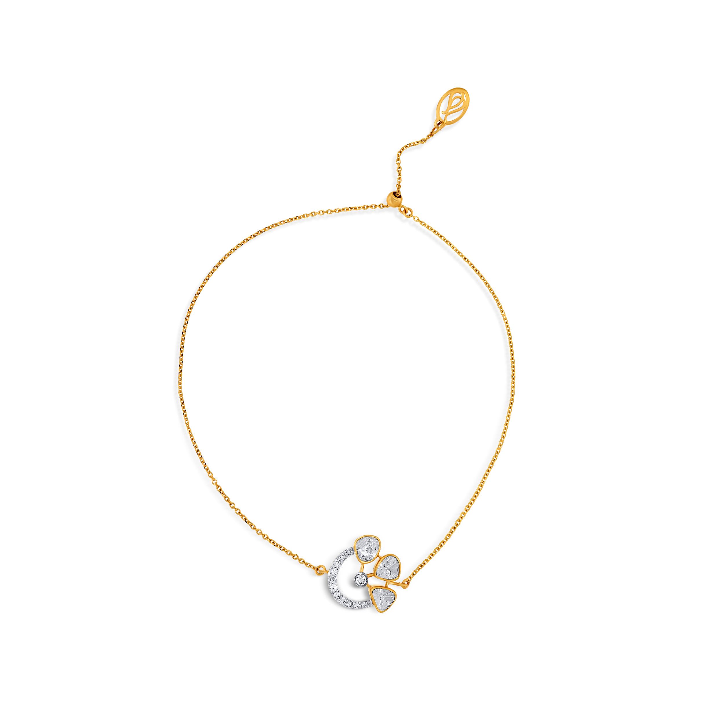 Redefine daily luxury with a touch of the extraordinary. This sleek, adjustable bracelet is embellished with the organic charm of raw, uncut Polki stones and the precision of radiant diamonds. Thoughtfully balanced and effortlessly versatile, it feels refined yet easy to wear, lending a subtle glow to both everyday looks and understated occasions.
