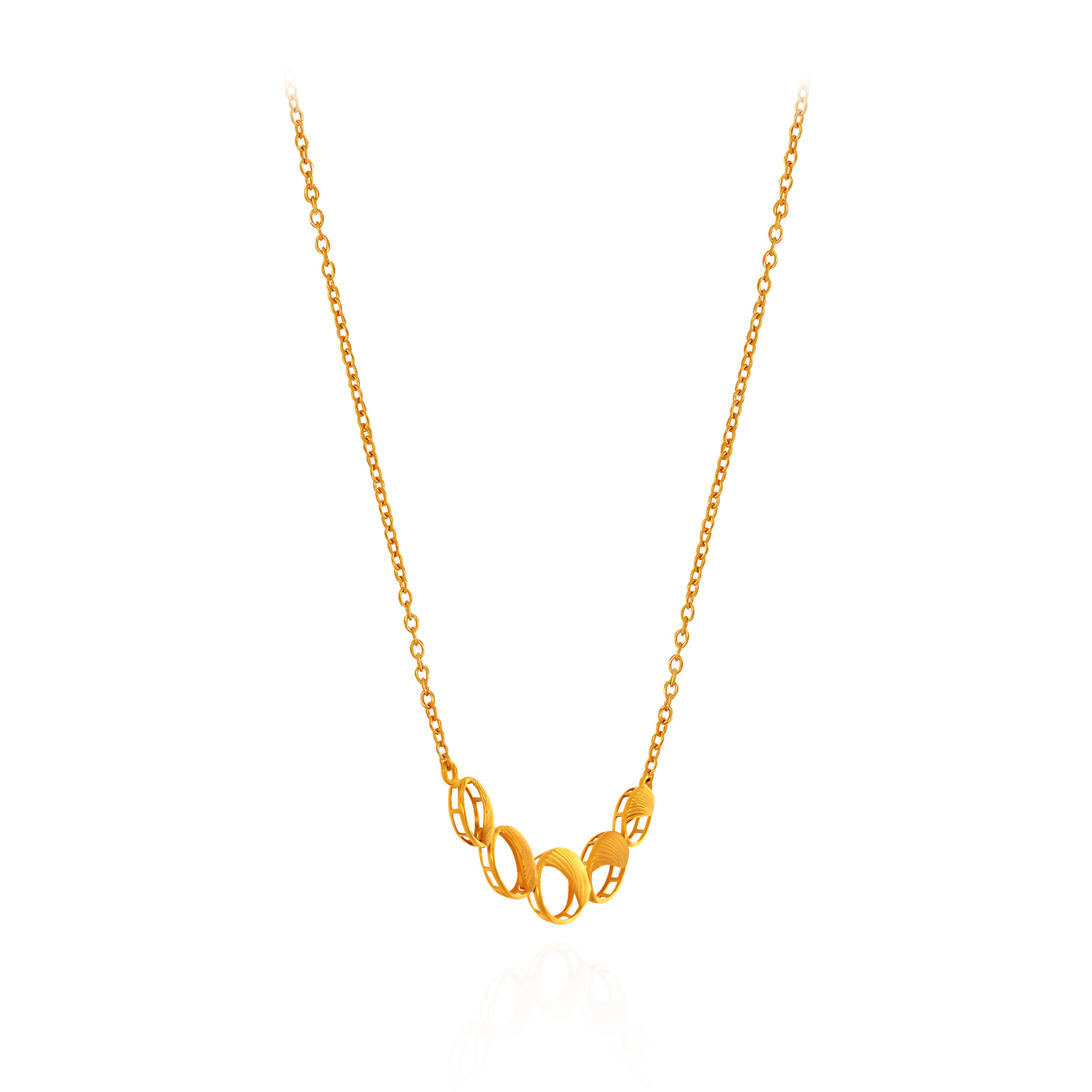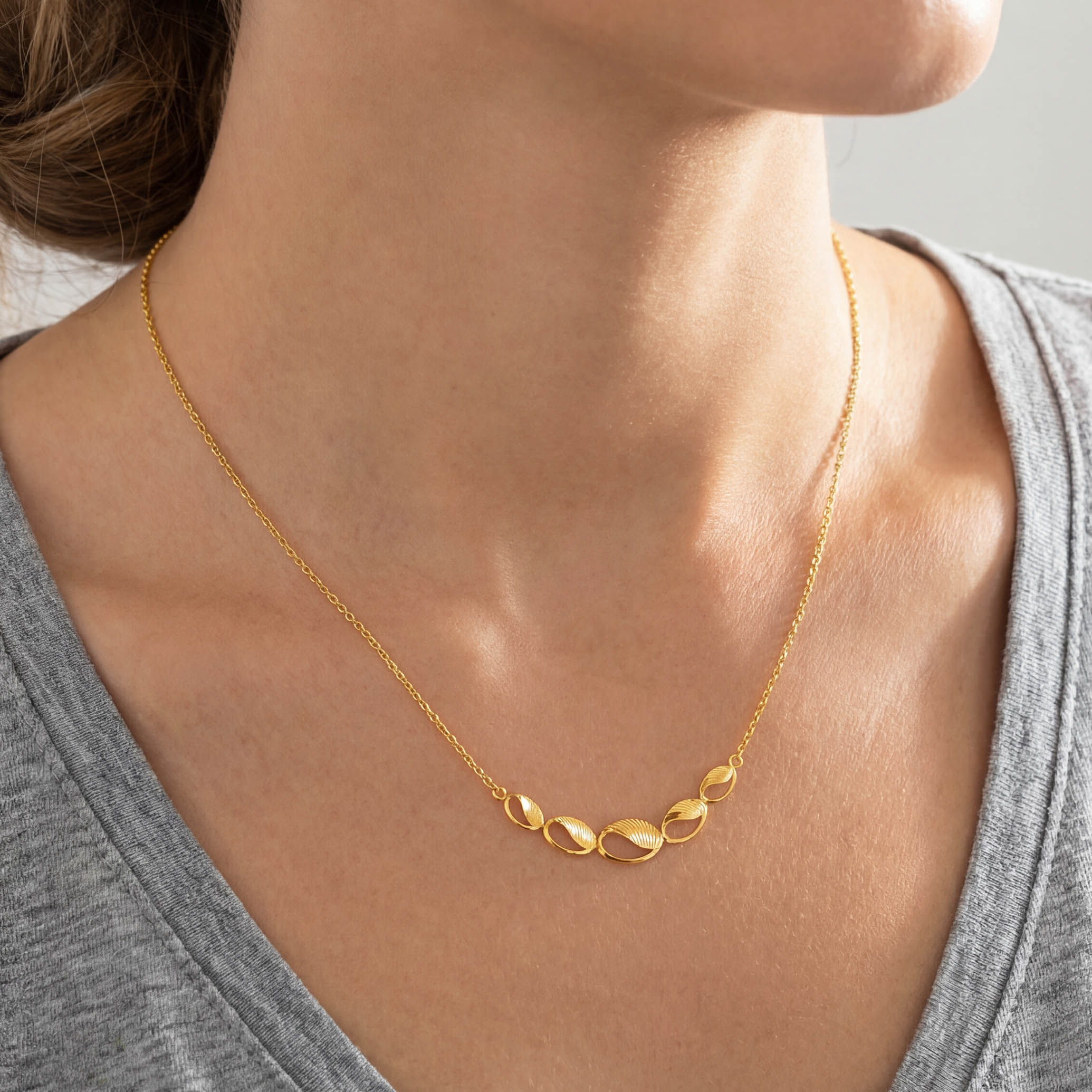 Elevate everyday dressing with this 9K sculpted gold pendant with chain, crafted in a sequence of fluid motifs. The balanced design brings understated sophistication, transitioning seamlessly from casual daytime wear to polished evening looks.