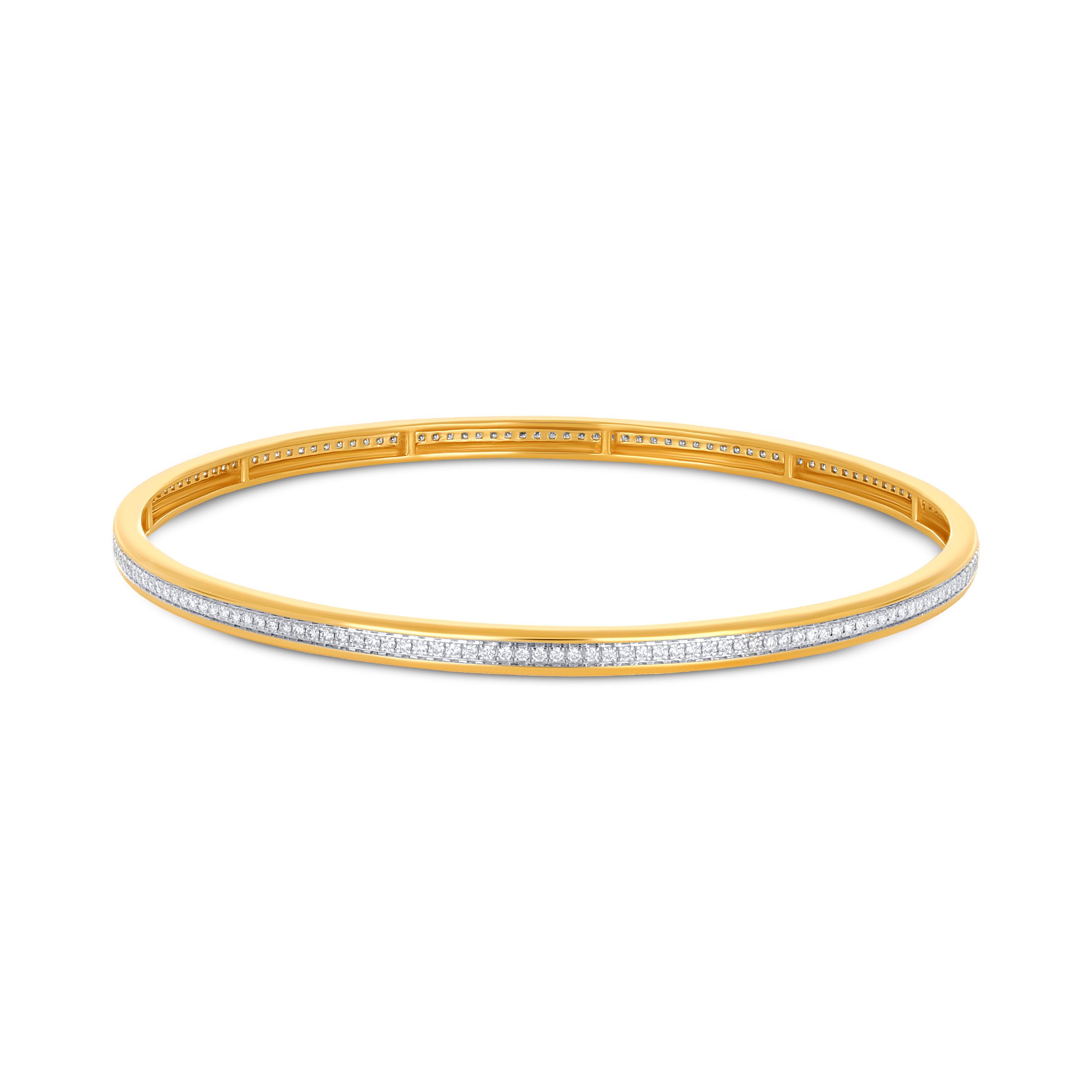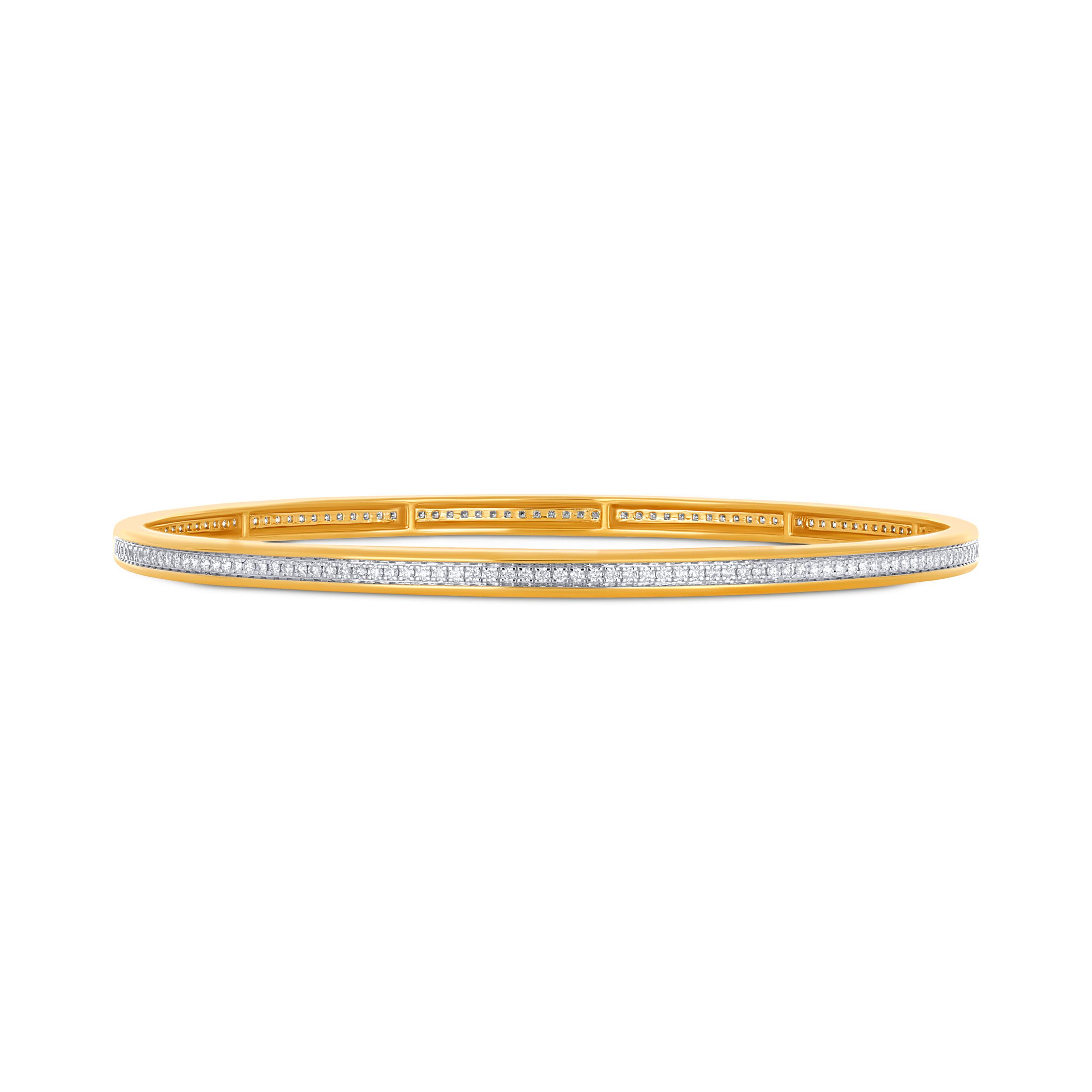 Minimalist, yet unmistakably regal, this churi features a seamless row of diamonds tracing its slender gold form. Clean and deliberate, it offers a refined play of light that feels poised and enduring. Designed for the woman of today, it transitions effortlessly from daytime to evening with quiet confidence.