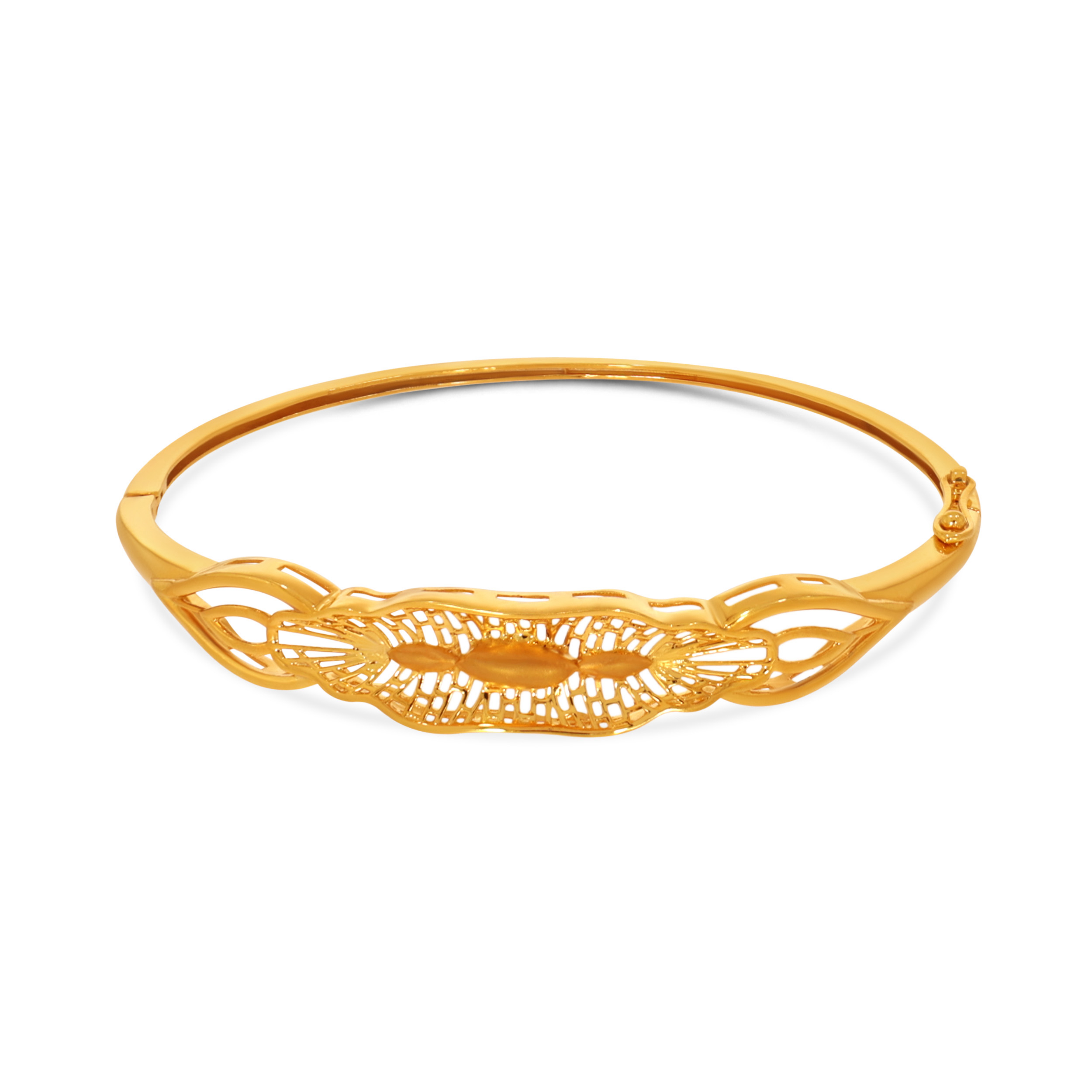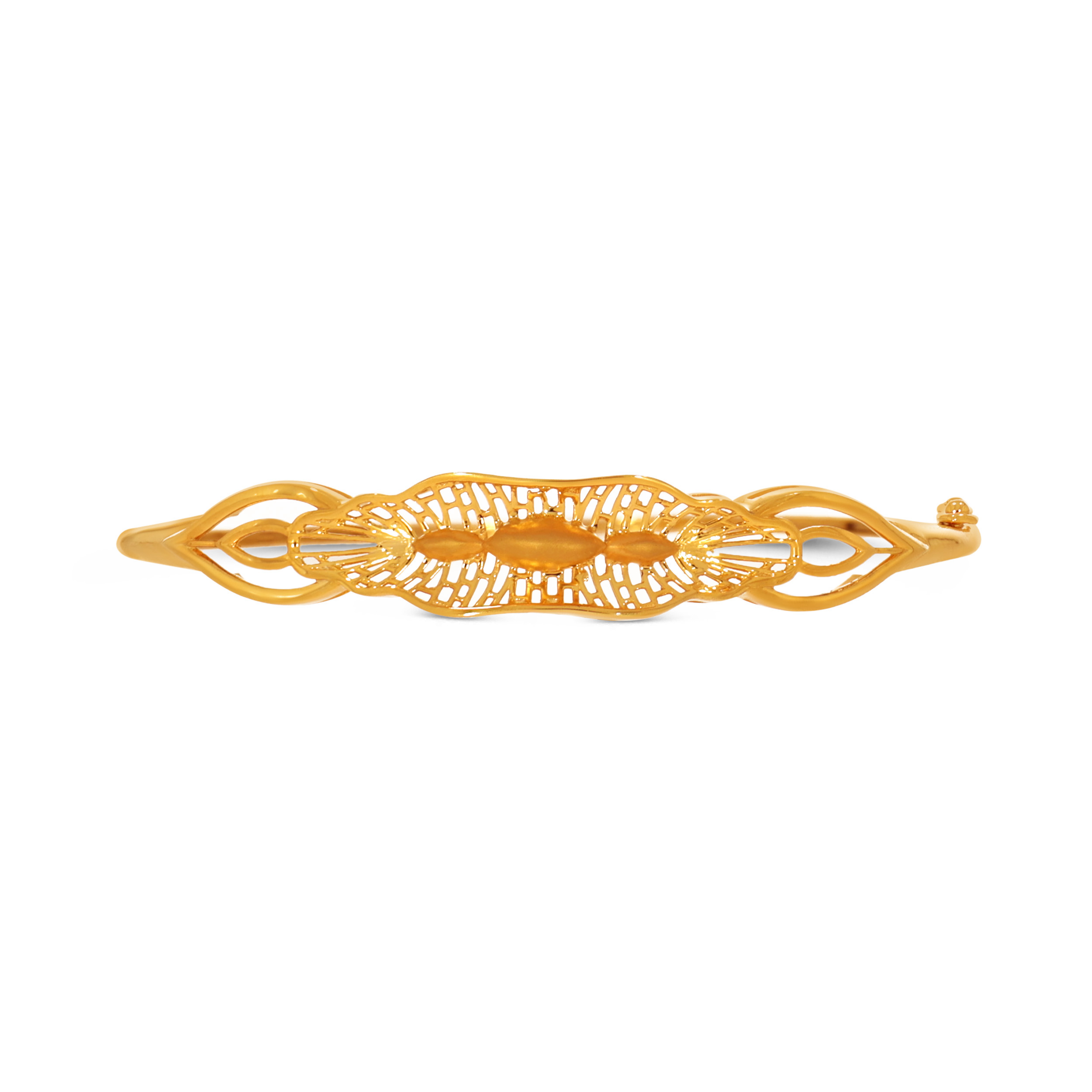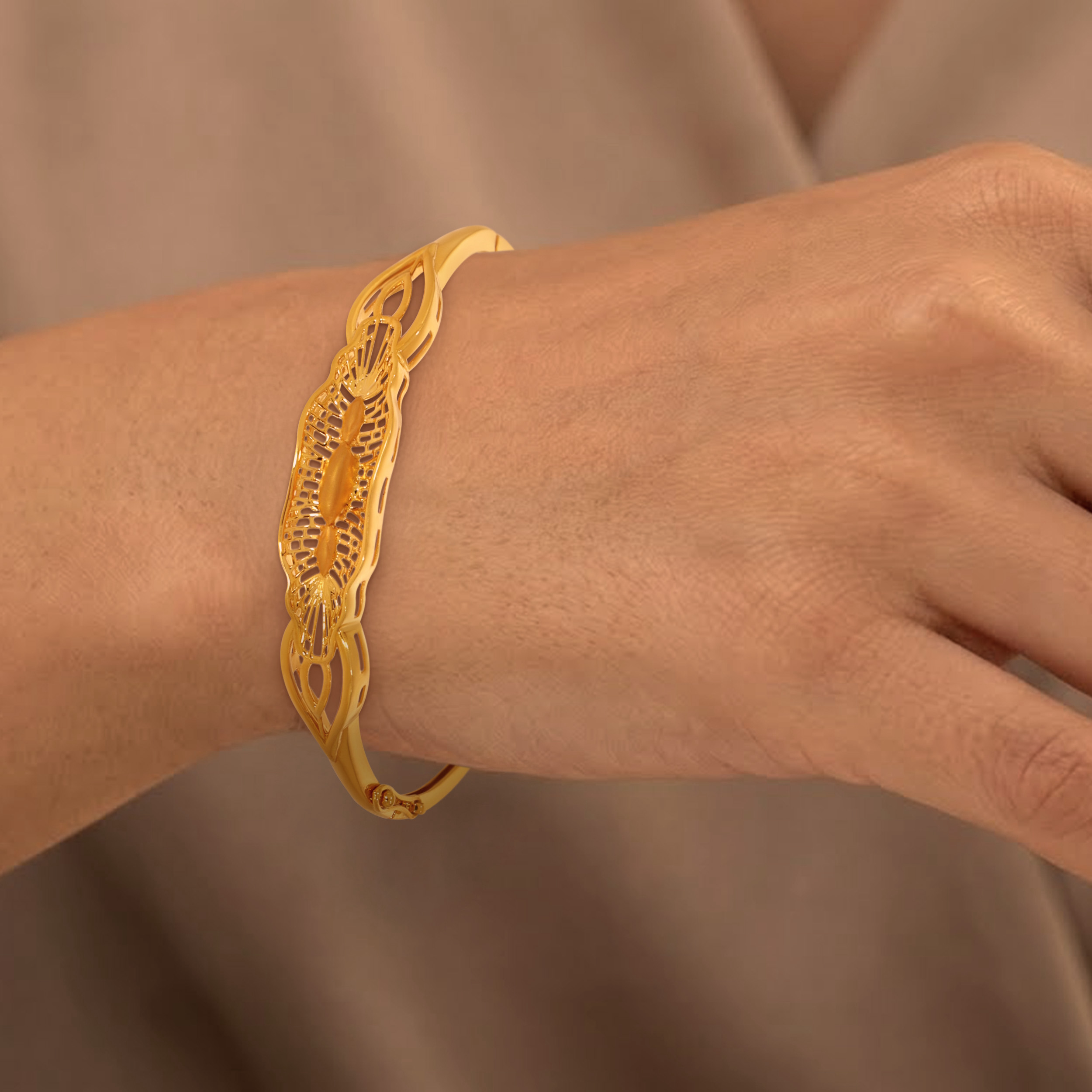 Add a regal glow to your festive wardrobe with this sculptural gold chur designed to reflect light beautifully. Its airy, ornate silhouette and fluid curves balance grandeur with refinement. Complement this with your traditional silks and contemporary evening wear alike.