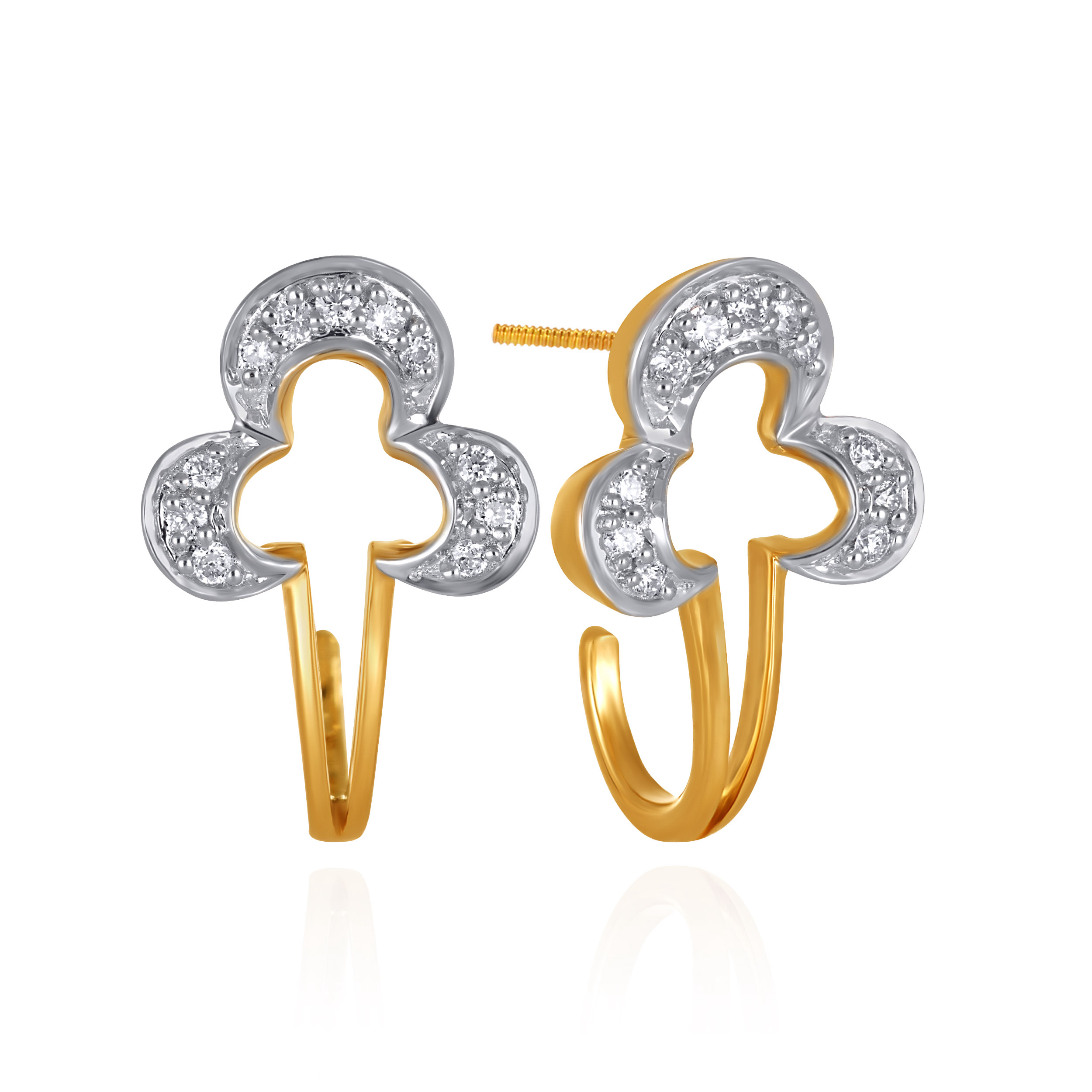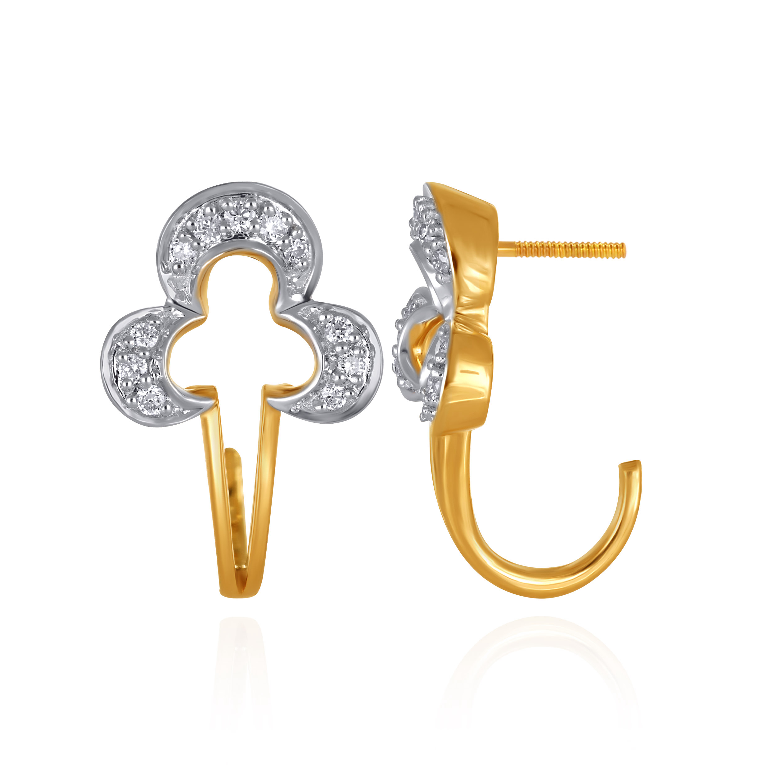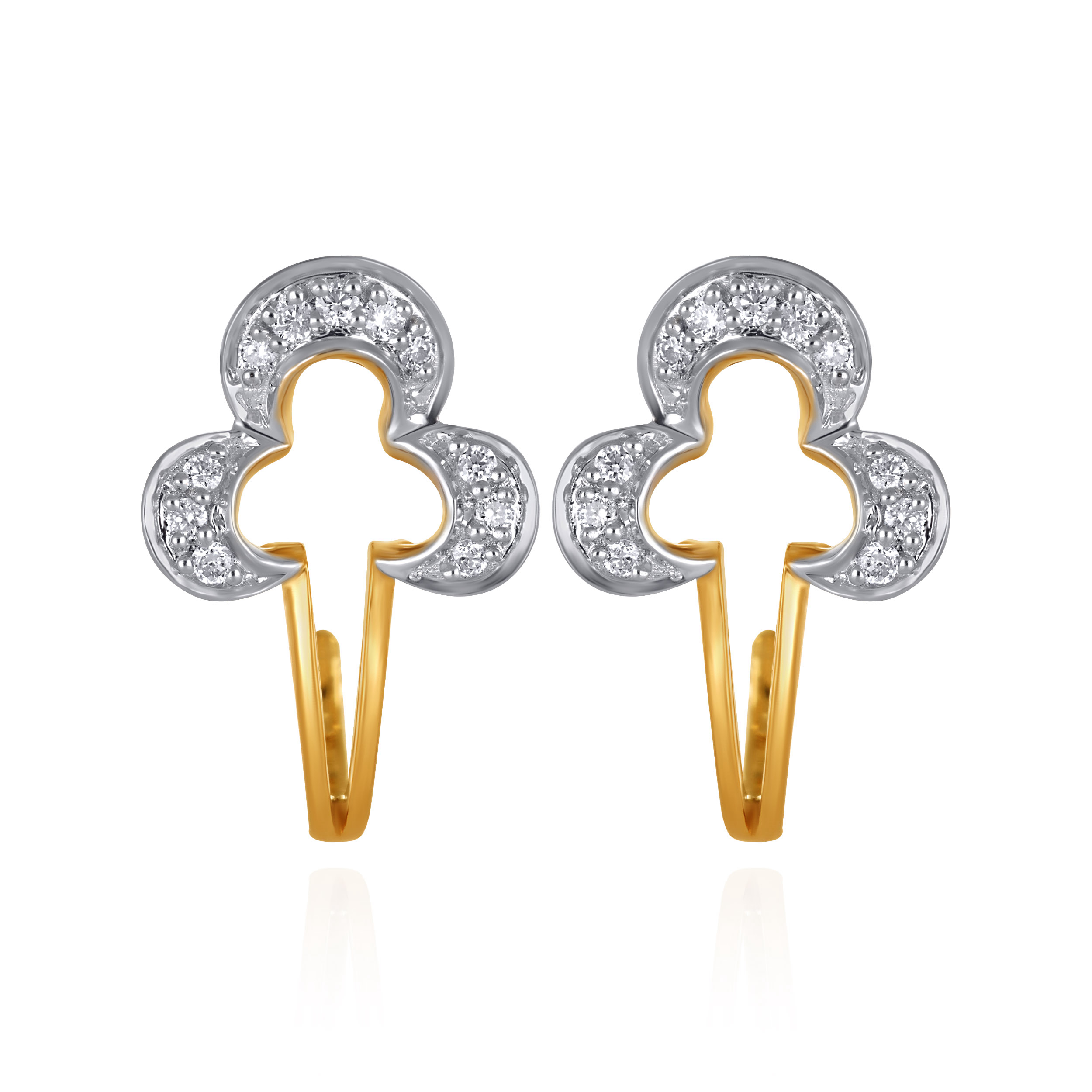 Rediscover vintage allure with these uniquely shaped diamond trefoil studs, reminiscent of clover leaves. Evoking heirloom motifs from a bygone era, the design feels classic yet quietly distinctive, perfect for everyday elegance with a nostalgic touch. Style them with crisp cotton saris, tailored kurtas, or minimalist workwear for effortless refinement from day to evening.