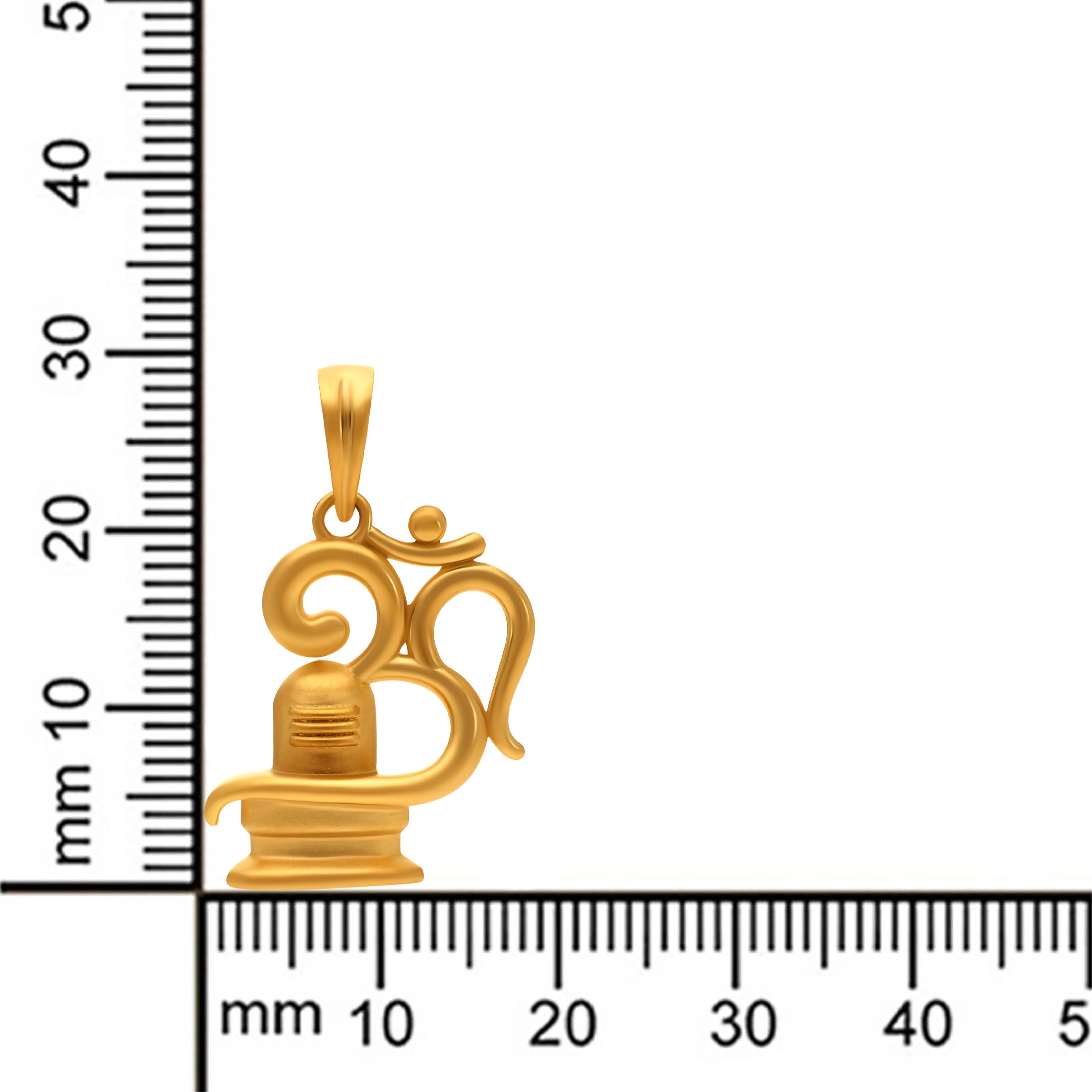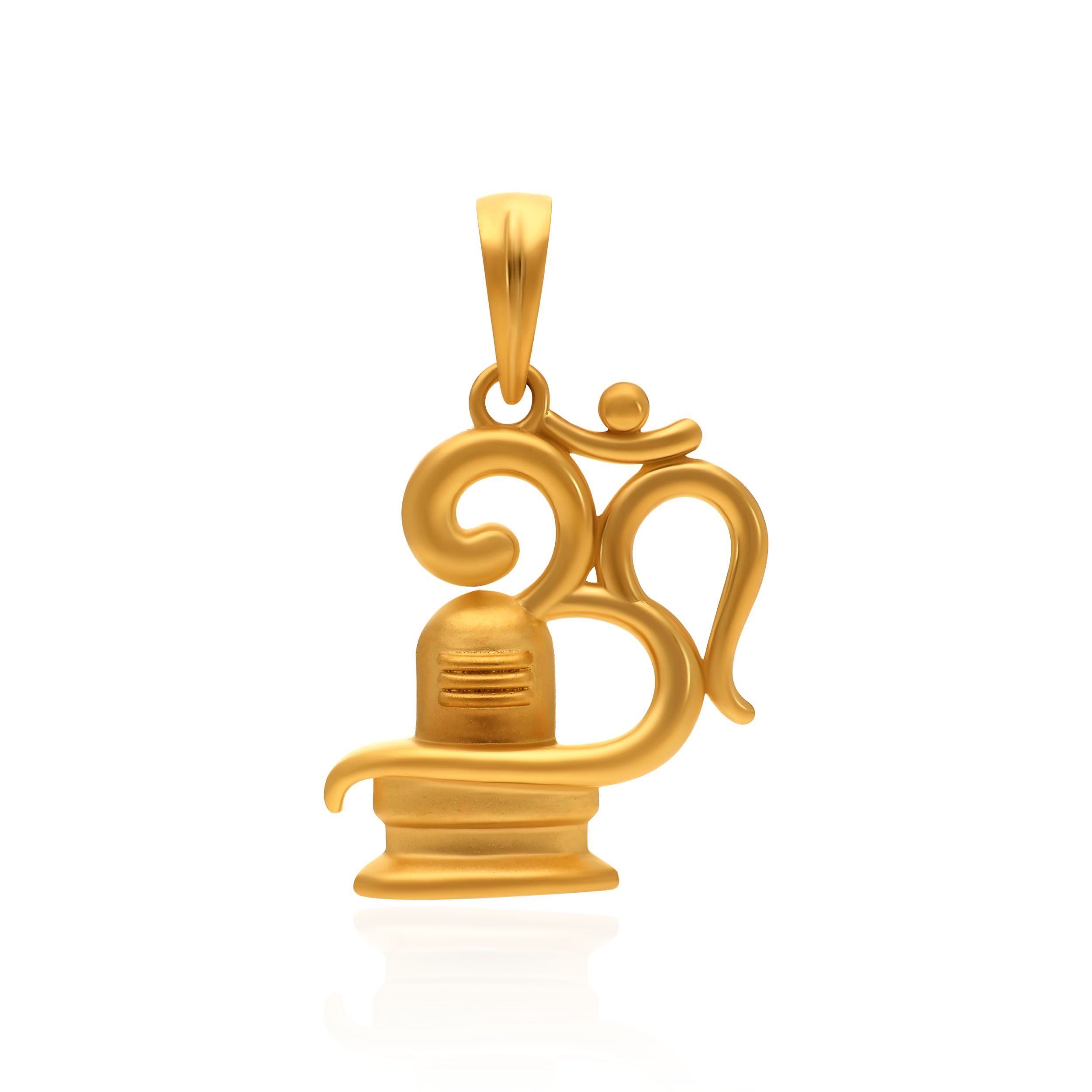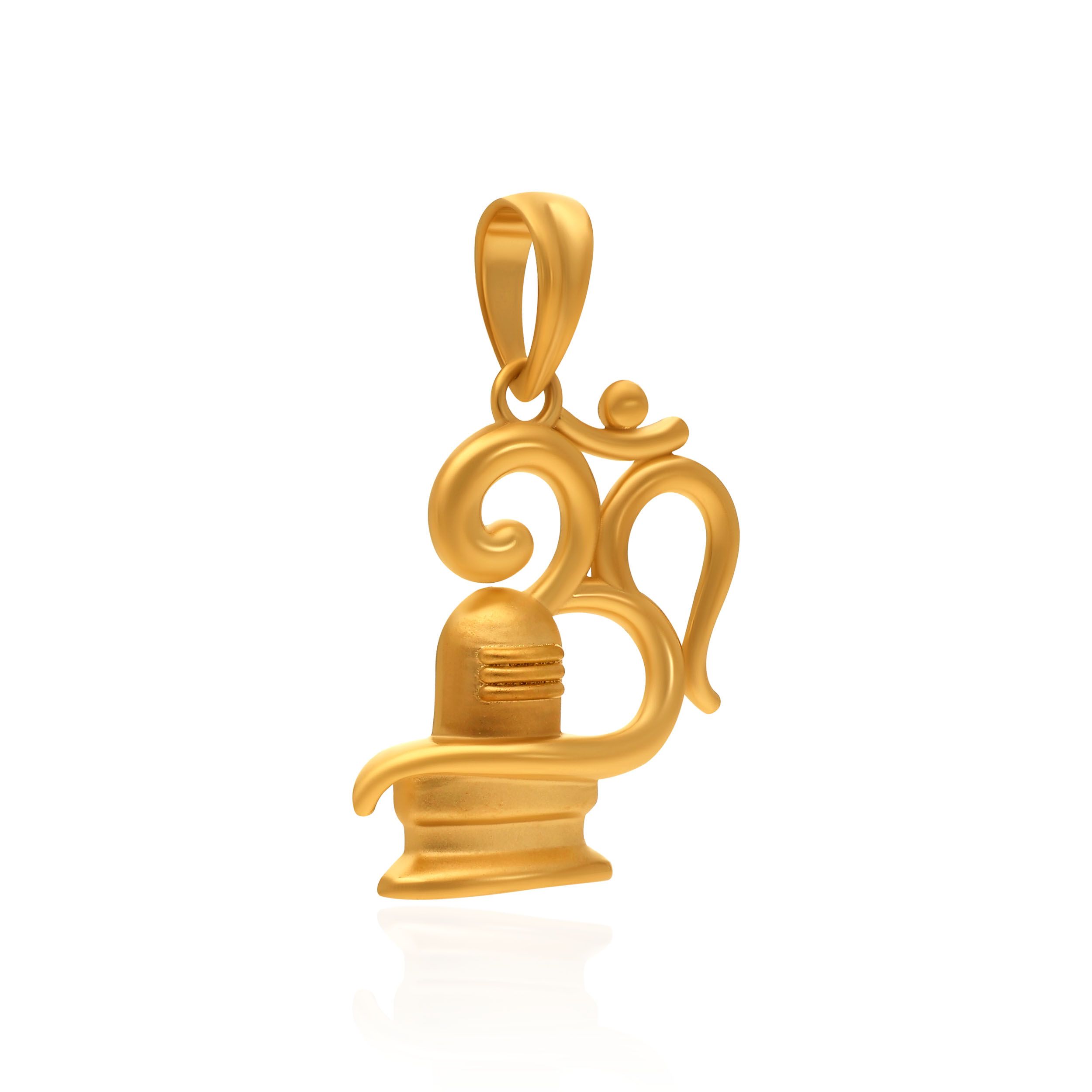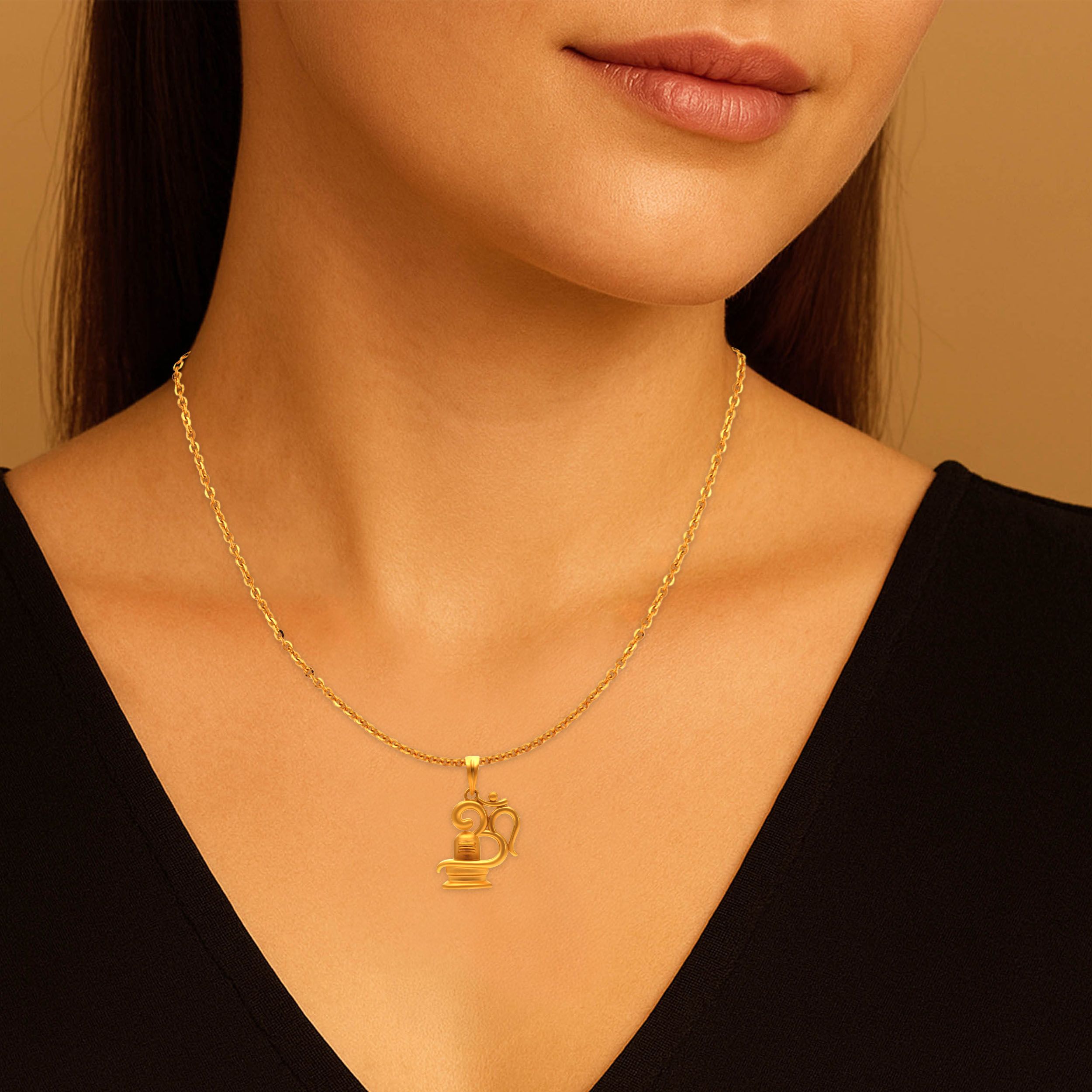 This gold pendant beautifully combines the sacred Om with the Shivling form, symbolising cosmic energy, creation, and spiritual balance. Smooth curves and subtle detailing lend the design a calm yet powerful presence. Pair it with a simple gold chain and a traditional kurta or saree to add a divine touch to your look.