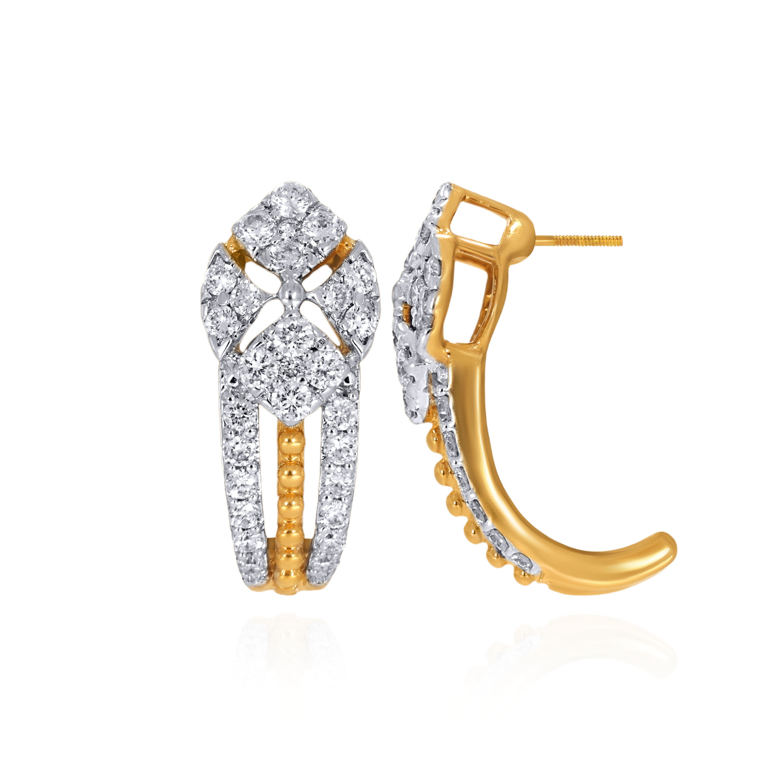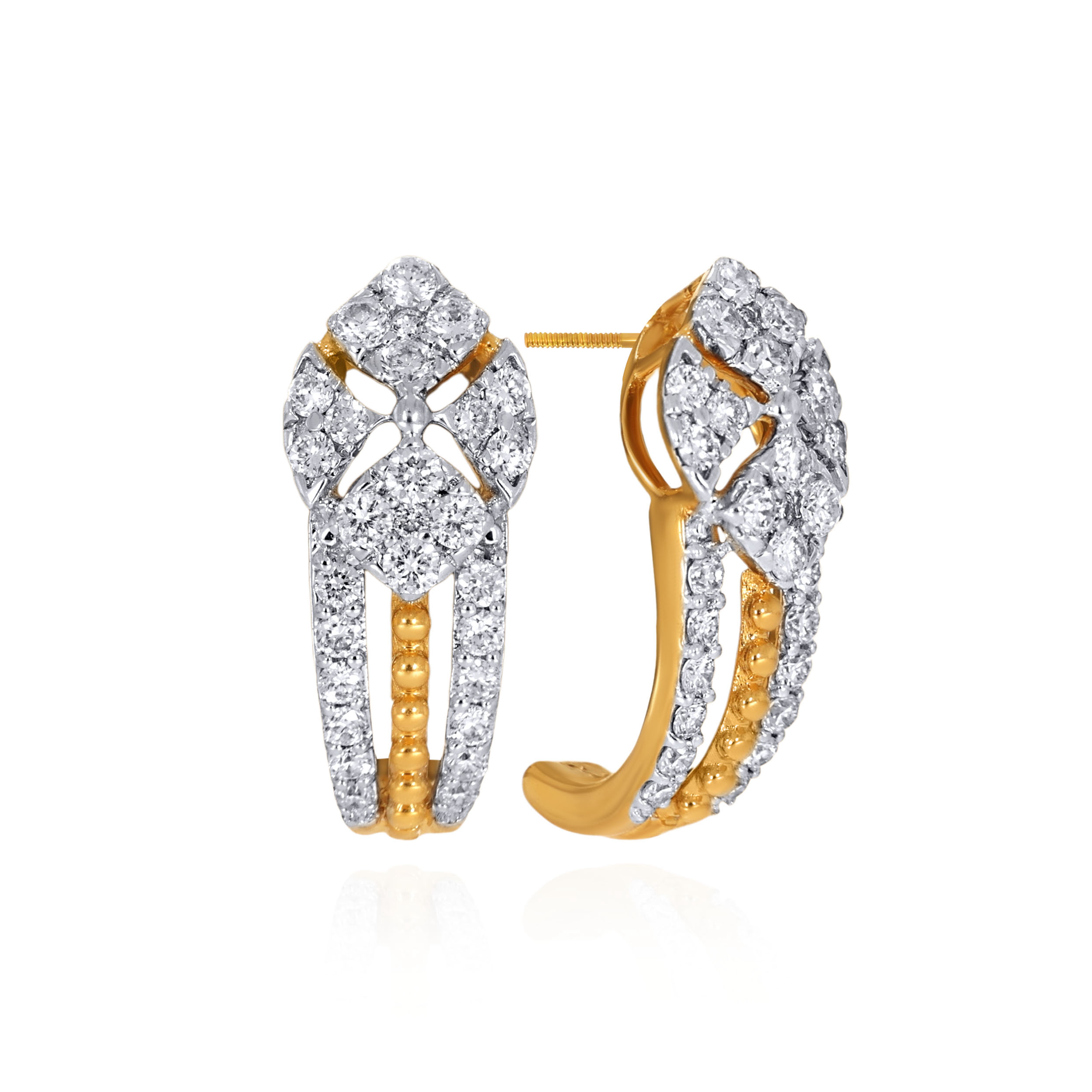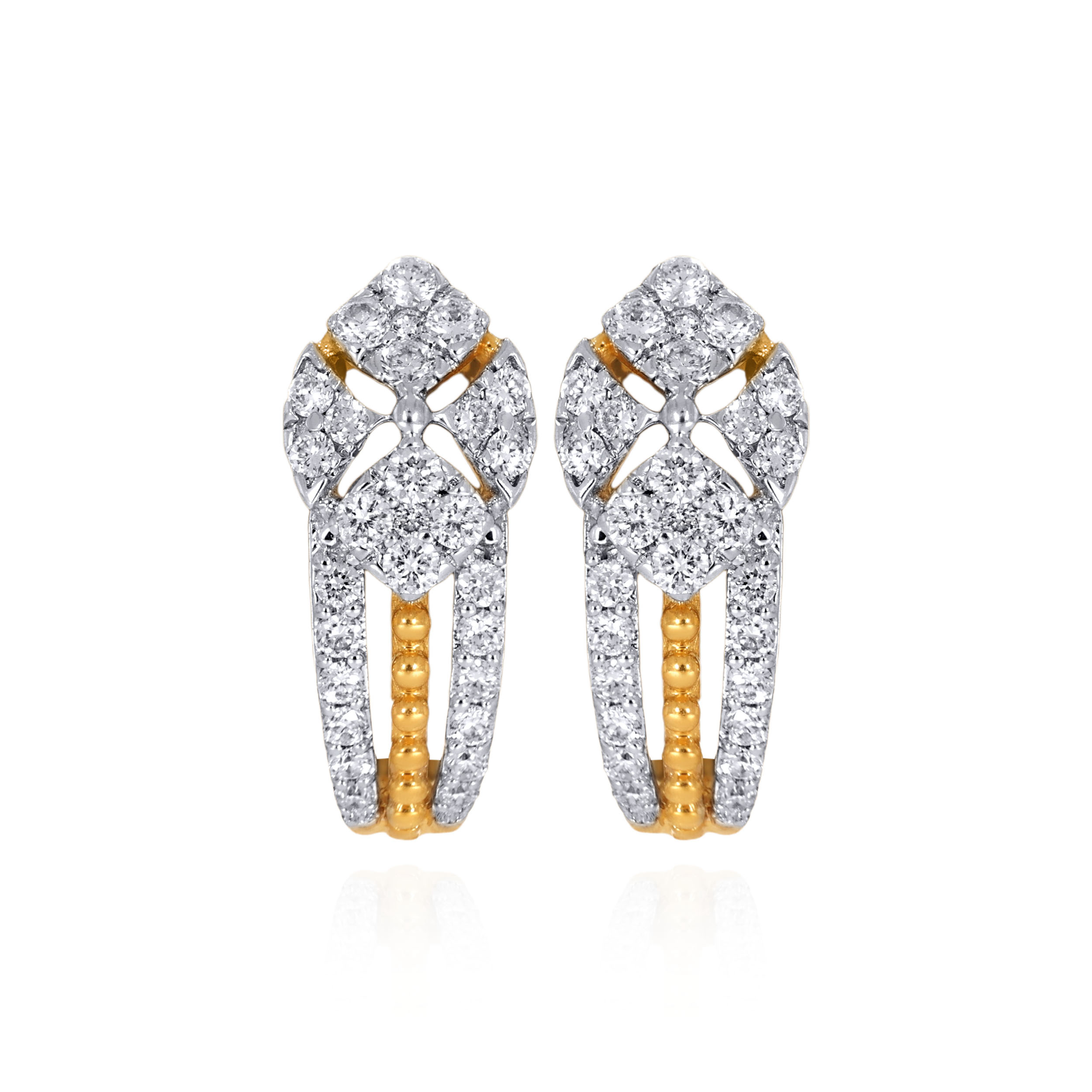 Redefine contemporary luxury with these exquisite dual-tone diamond earrings. A meticulously crafted geometric cluster flows into a graceful triple-strand drop, designed to move effortlessly from office hours to evening plans, bringing understated sophistication to your look.