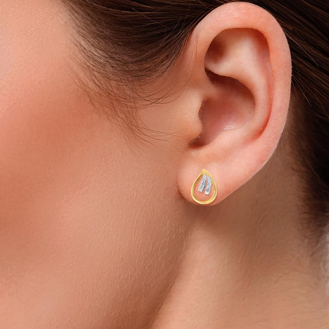 Make your every day extra special by flaunting these stylish diamond studs inspired by water droplet motifs and encrusted with 0.13 carat diamonds in 18K gold. They are given a modern update in highly polished gold and a myriad of diamonds by our skilled karigars.