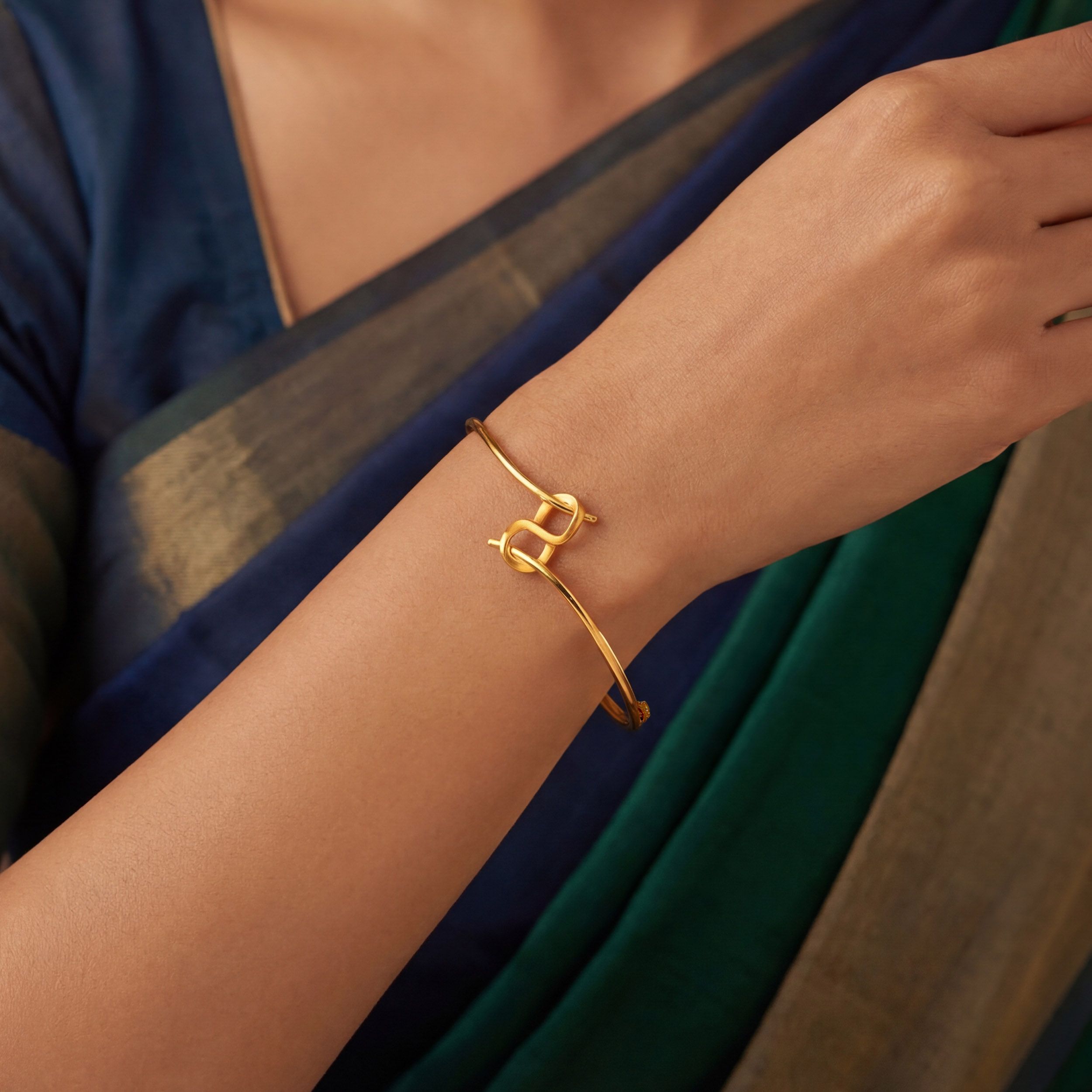 Evoking the movement of a silk ribbon, this bangle showcases a central bypass twist that adds a touch of artistic flair to your wrist. Its unique silhouette makes it an excellent conversation piece that remains understated enough for every day.