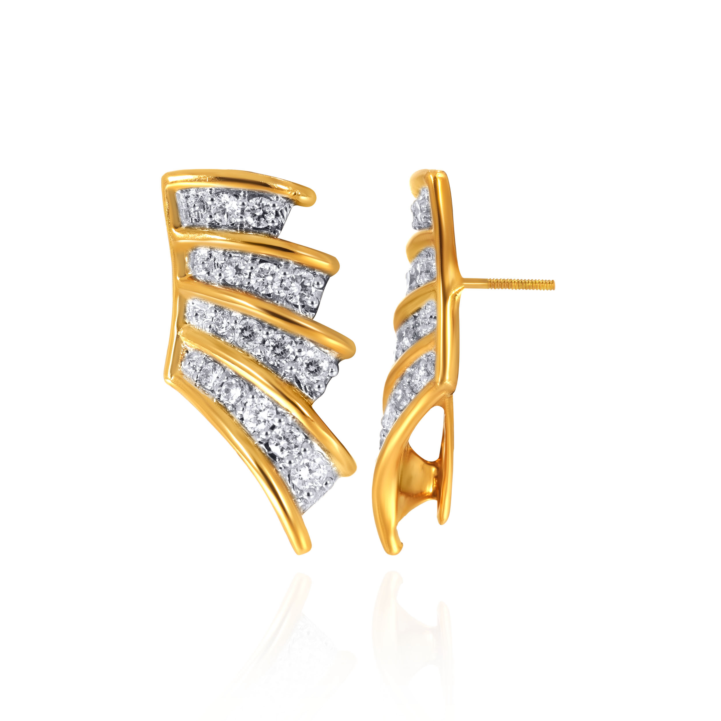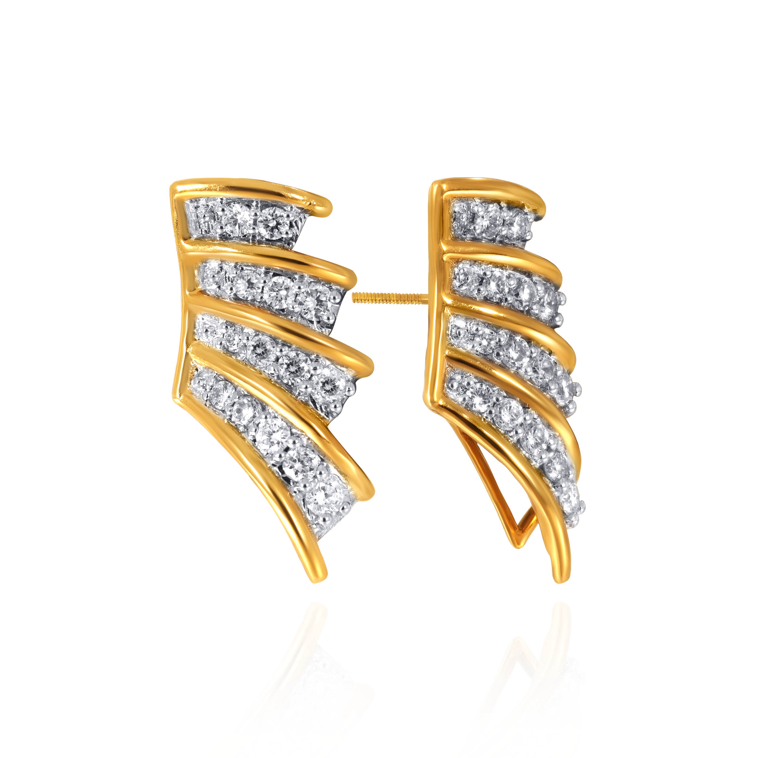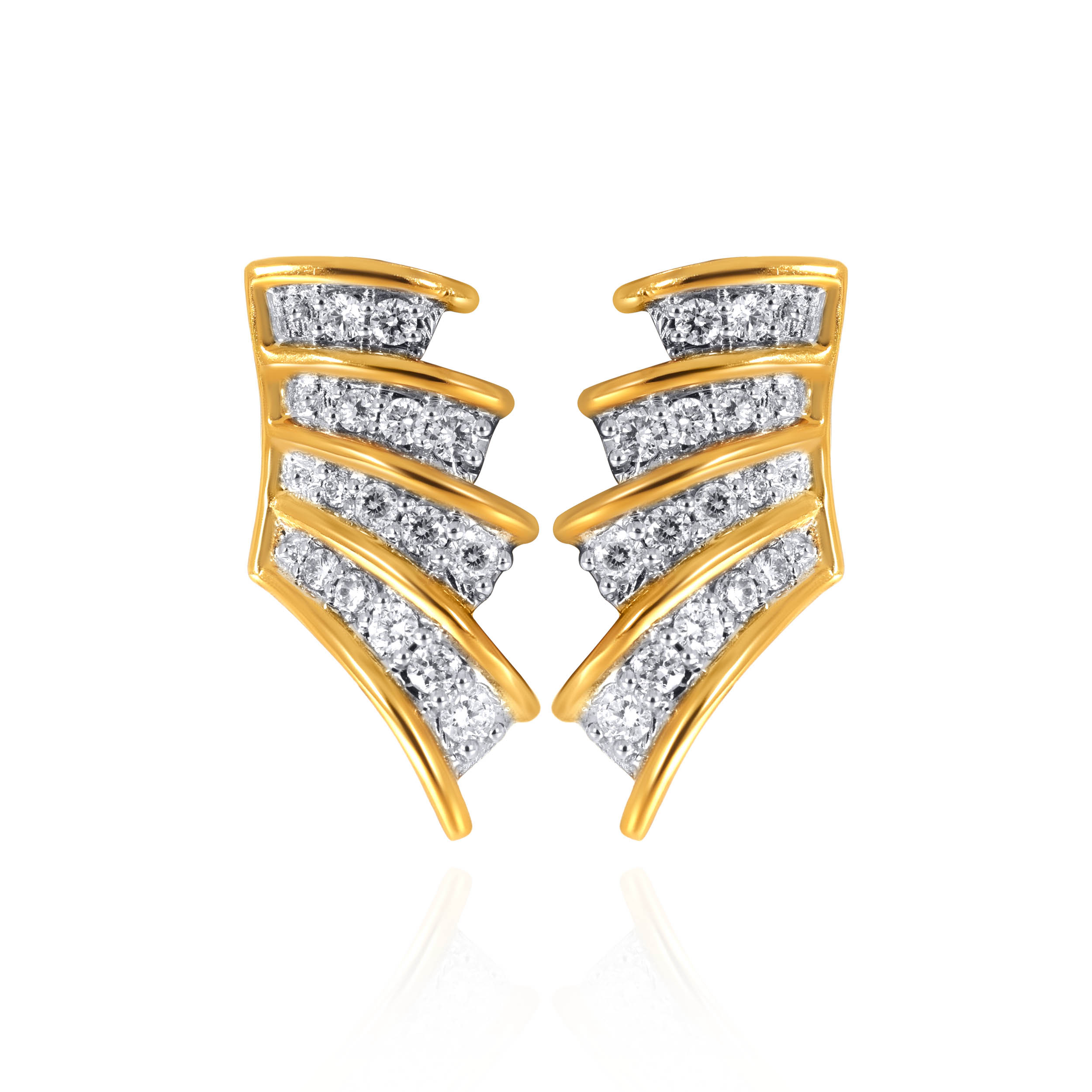 Make a bold statement with these architecturally inspired diamond studs. Crafted in polished gold, this pair features a striking tiered fan design that mimics the graceful curve of a wing. The unique sweeping silhouette is designed to sharply define your face.
