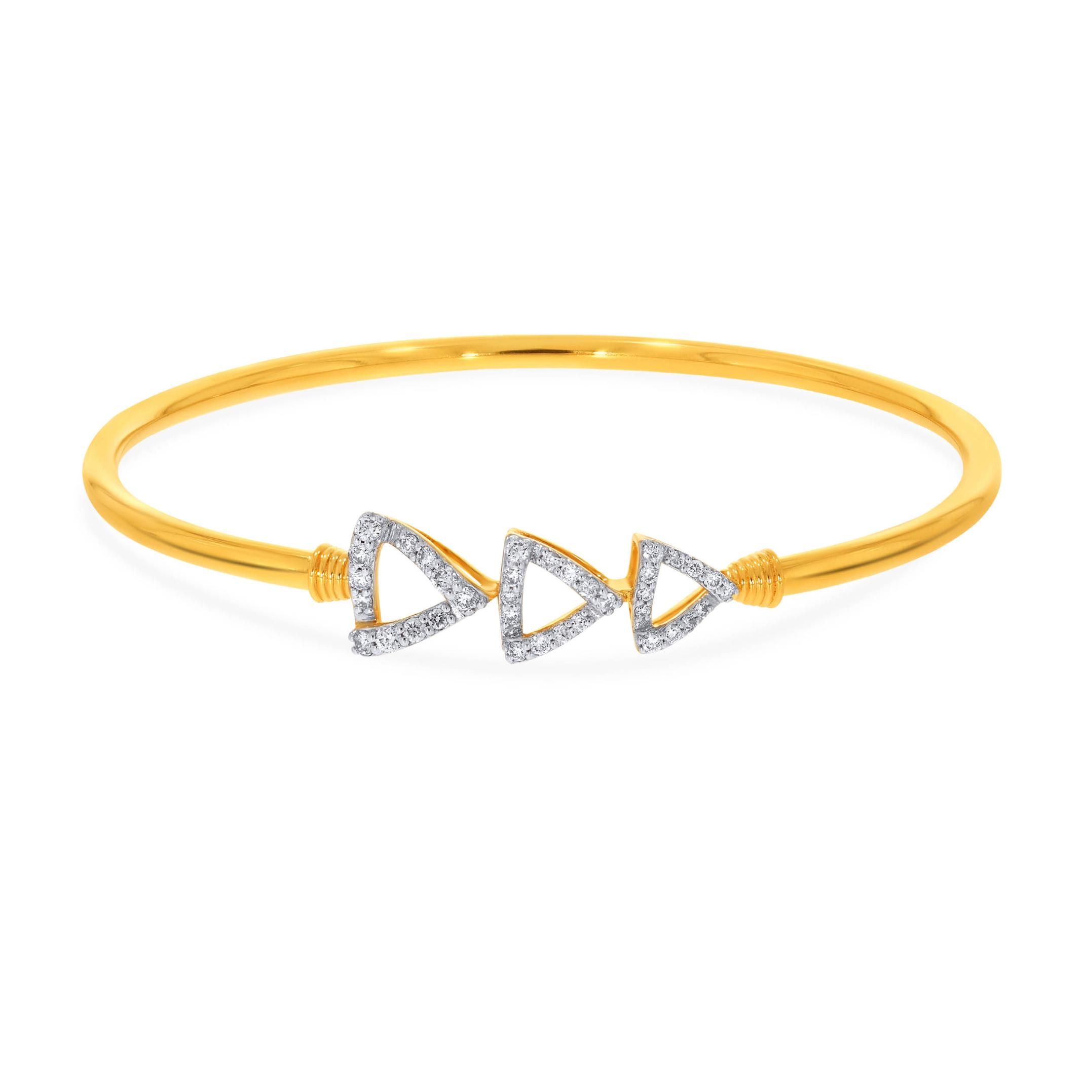 Simple yet beautiful, this 0.43 carat diamond noa bangle is designed with three triangular patterns in 18K gold. The lightweight design will let you wear it comfortably throughout the day and flaunt your marital status in style.