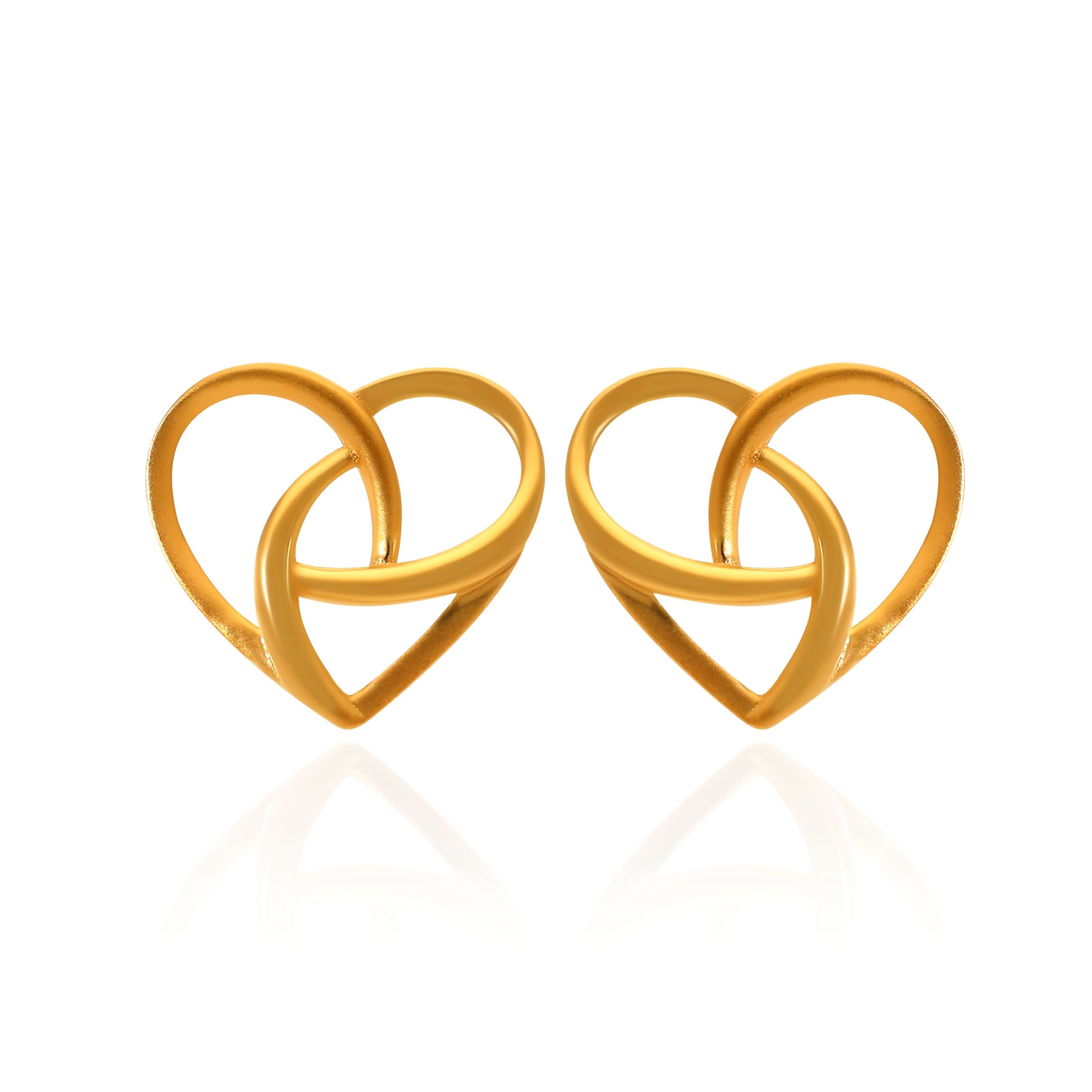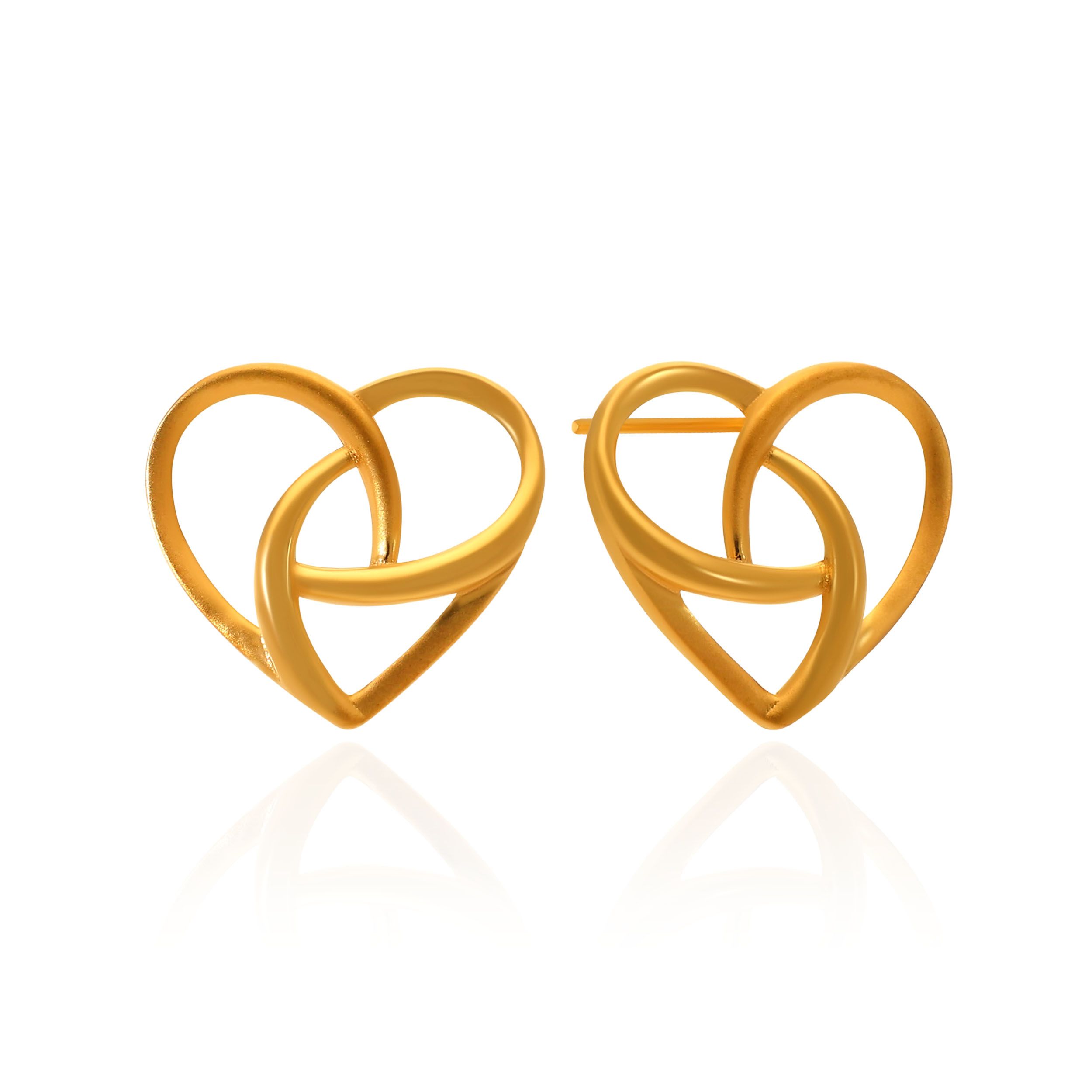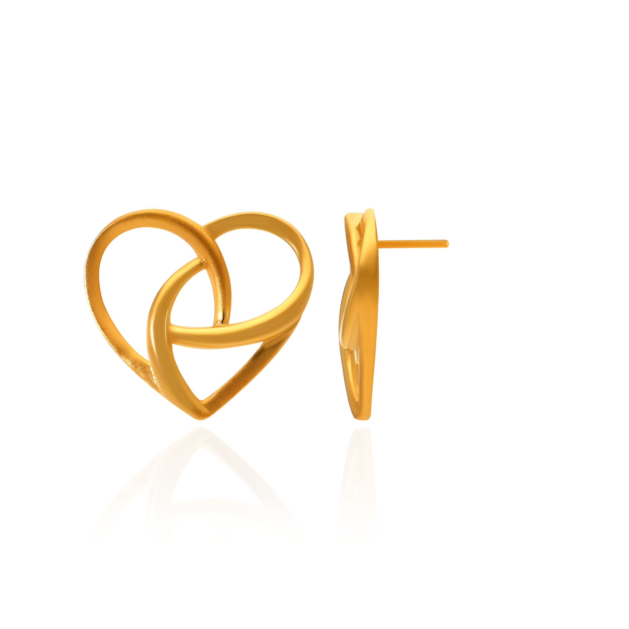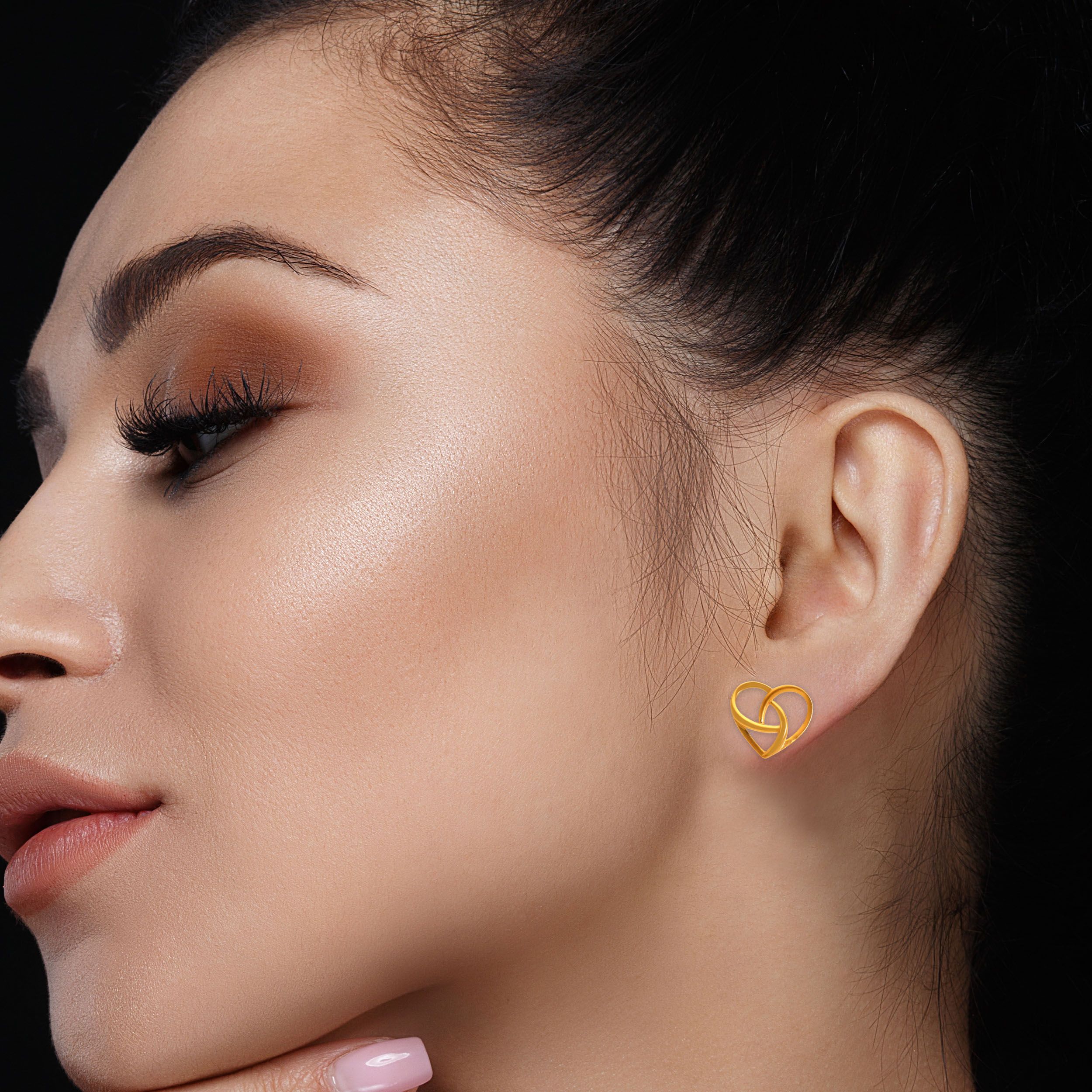 Fluid and contemporary, these gold studs feature intertwined heart shapes that create a striking yet effortless silhouette. The sculpted curves lend a soft sense of movement, making them a versatile addition to both casual and dressed up ensembles. Style them with a satin dress, or a relaxed kurta set for an easy polished look.