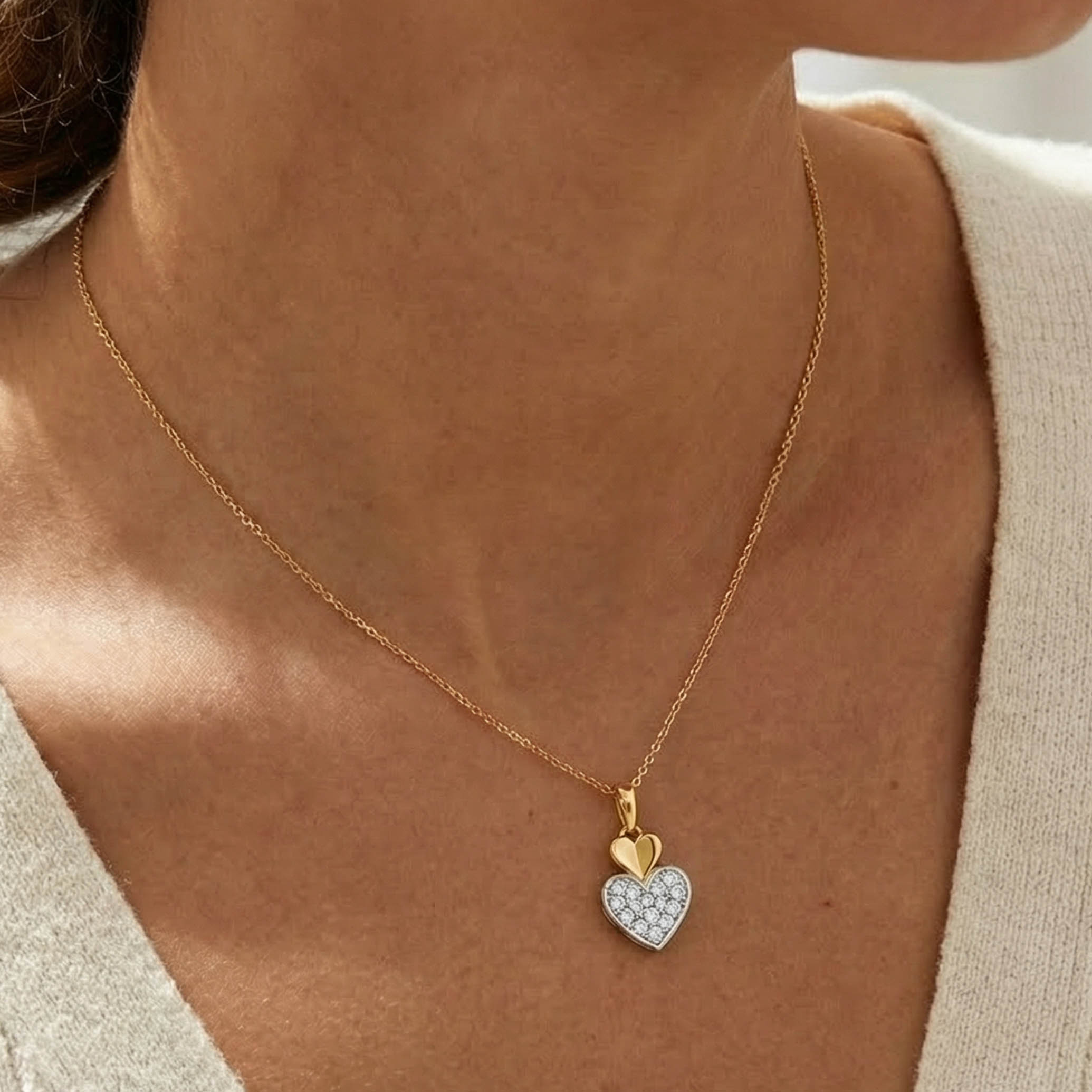Celebrate love in its many forms with this diamond pendant, designed with a layered heart silhouette that adds gentle dimension and depth. Light on the skin and easy to wear, it carries a quiet sentiment of connection and affection.