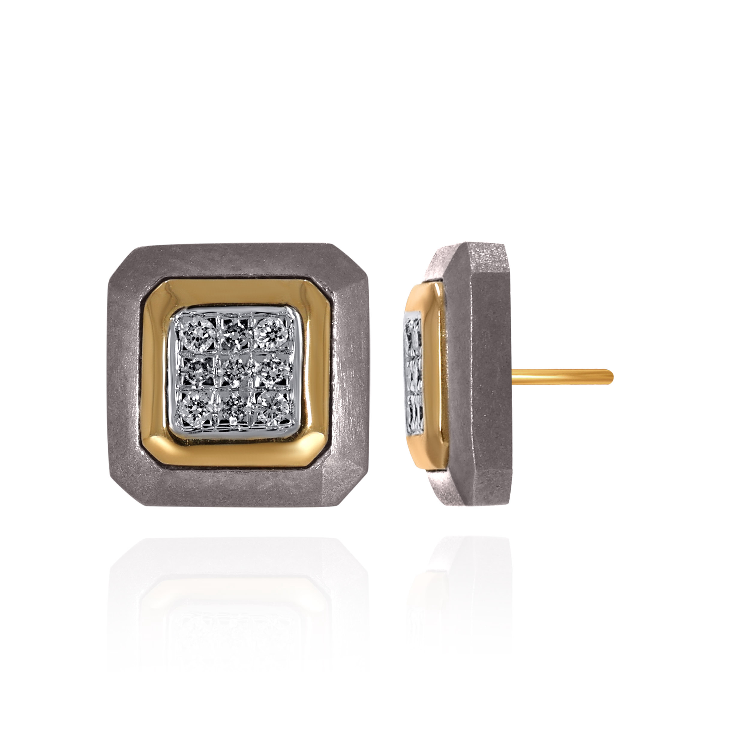 Built for modern life, these titanium diamond studs balance strength with precision. The matte gunmetal finish creates a restrained, masculine backdrop that lets the diamonds catch the light without overpowering the design. Lightweight yet exceptionally strong, they are made for everyday wear, defined by durability, clarity, and a sharp architectural edge.